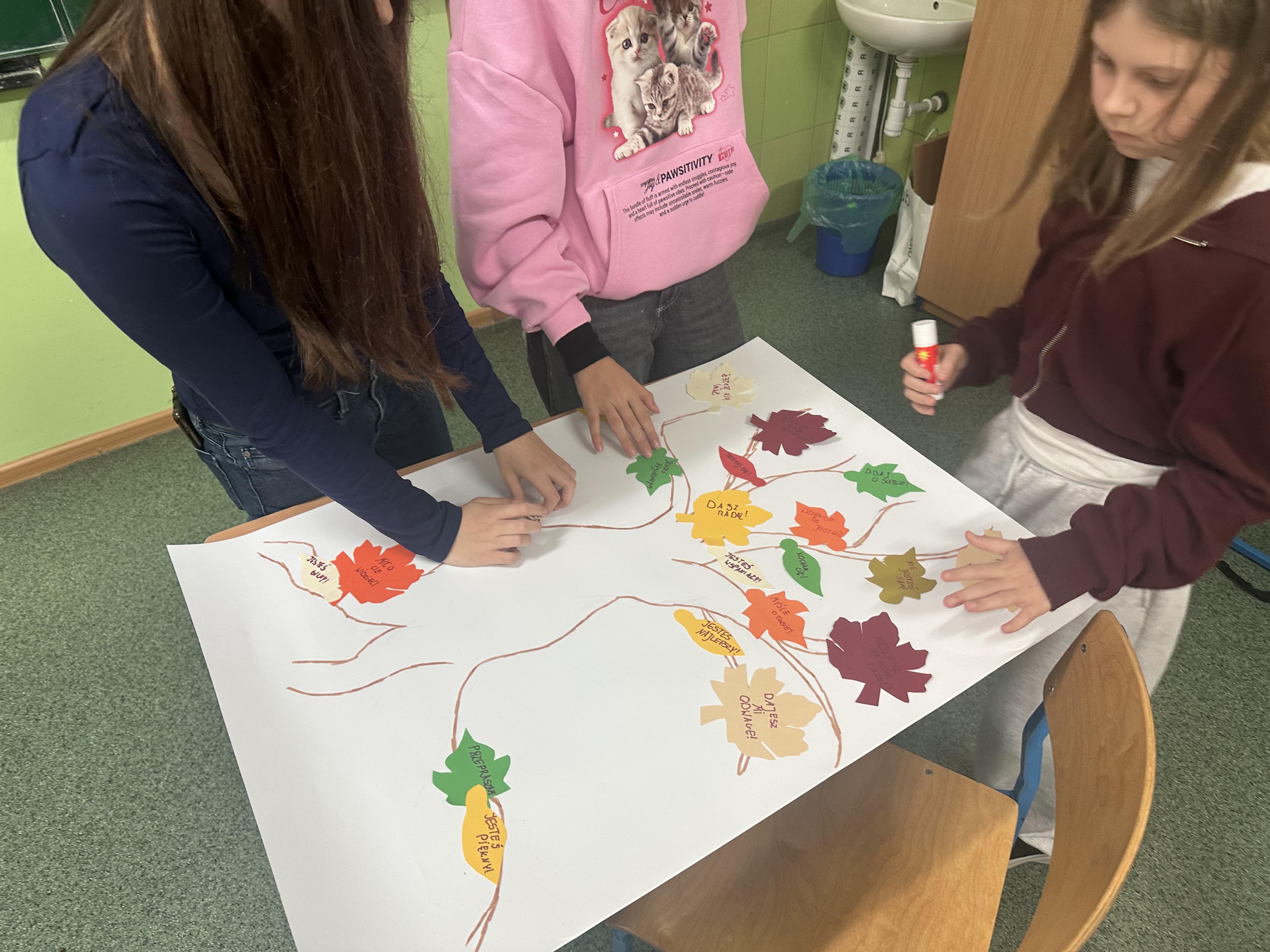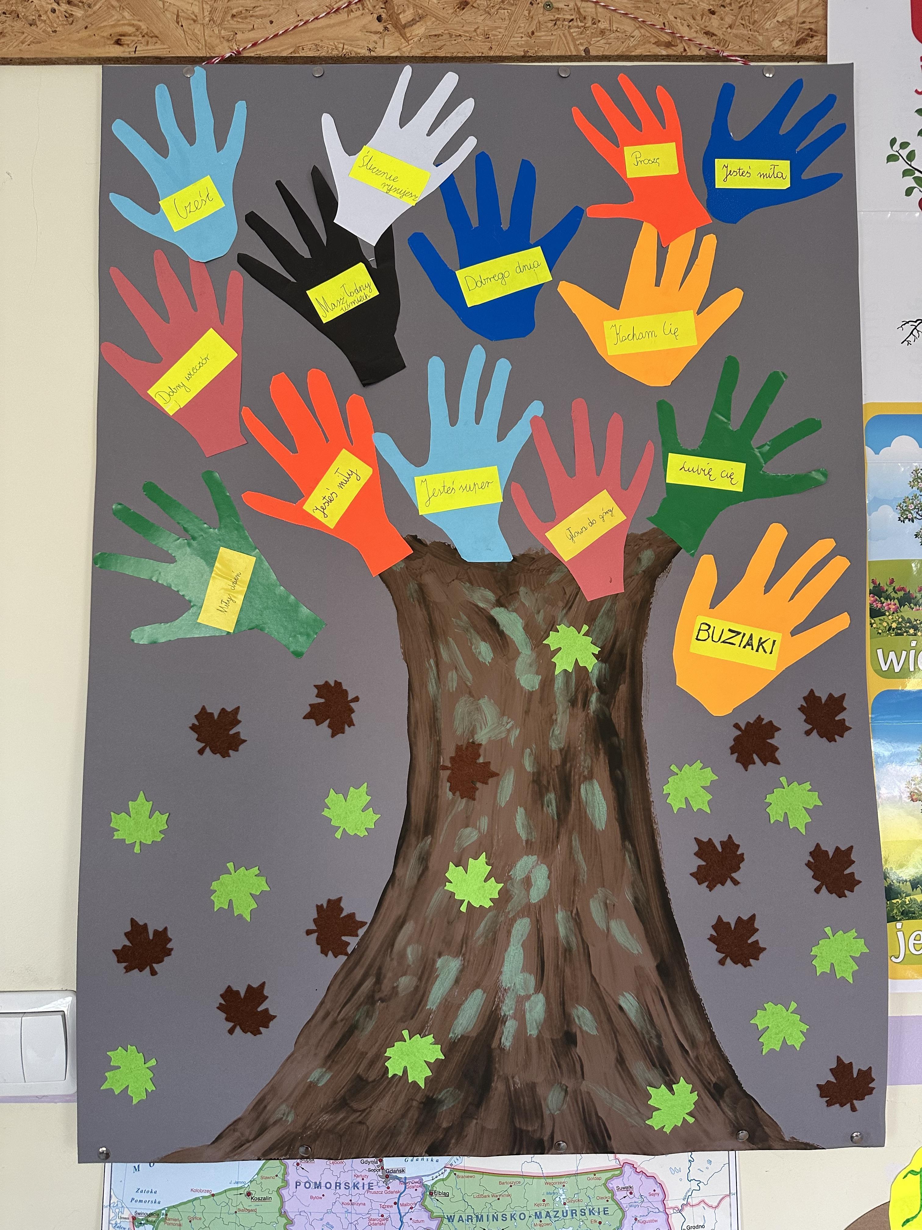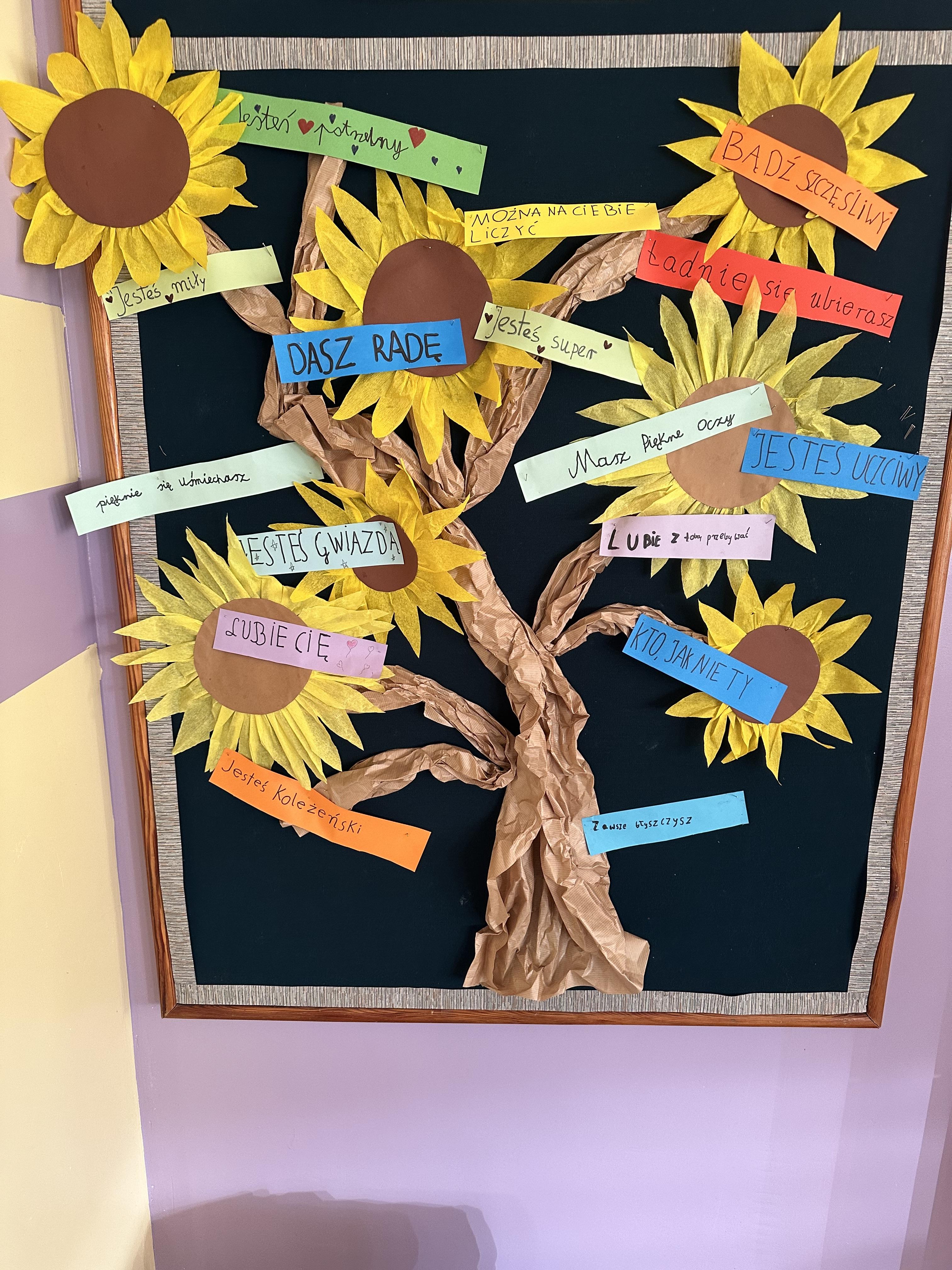 W każdej sali lekcyjnej „wyrosło” wspaniałe drzewo dobrych słów i pozytywnych myśli. Na liściach uczniowie i nauczyciele zapisali optymistyczne hasła, pozytywnie nastrajające zdania lub swoje ulubione cytaty. Słowa „ciepłe i puchate”, pełne dobrej energii.