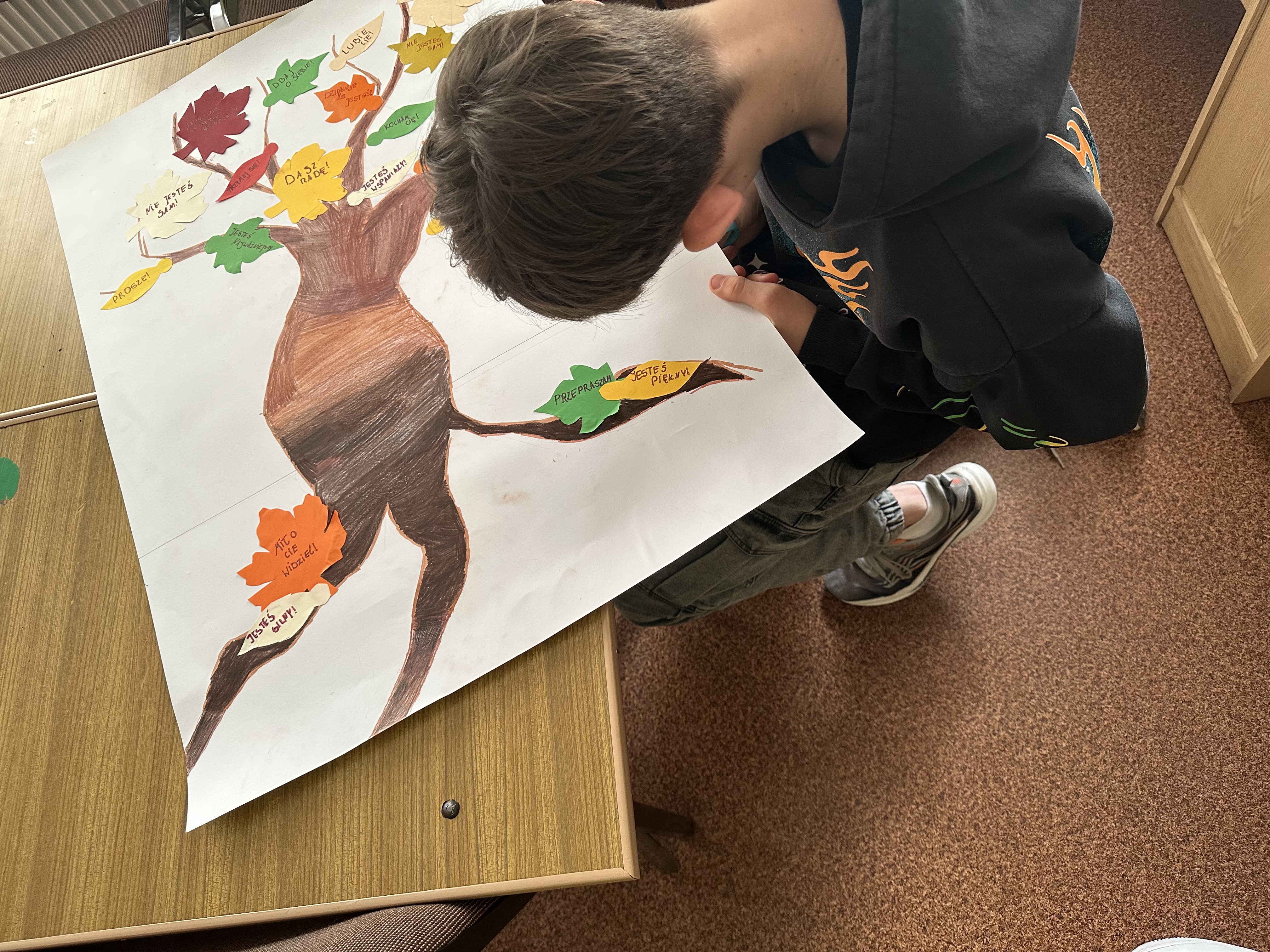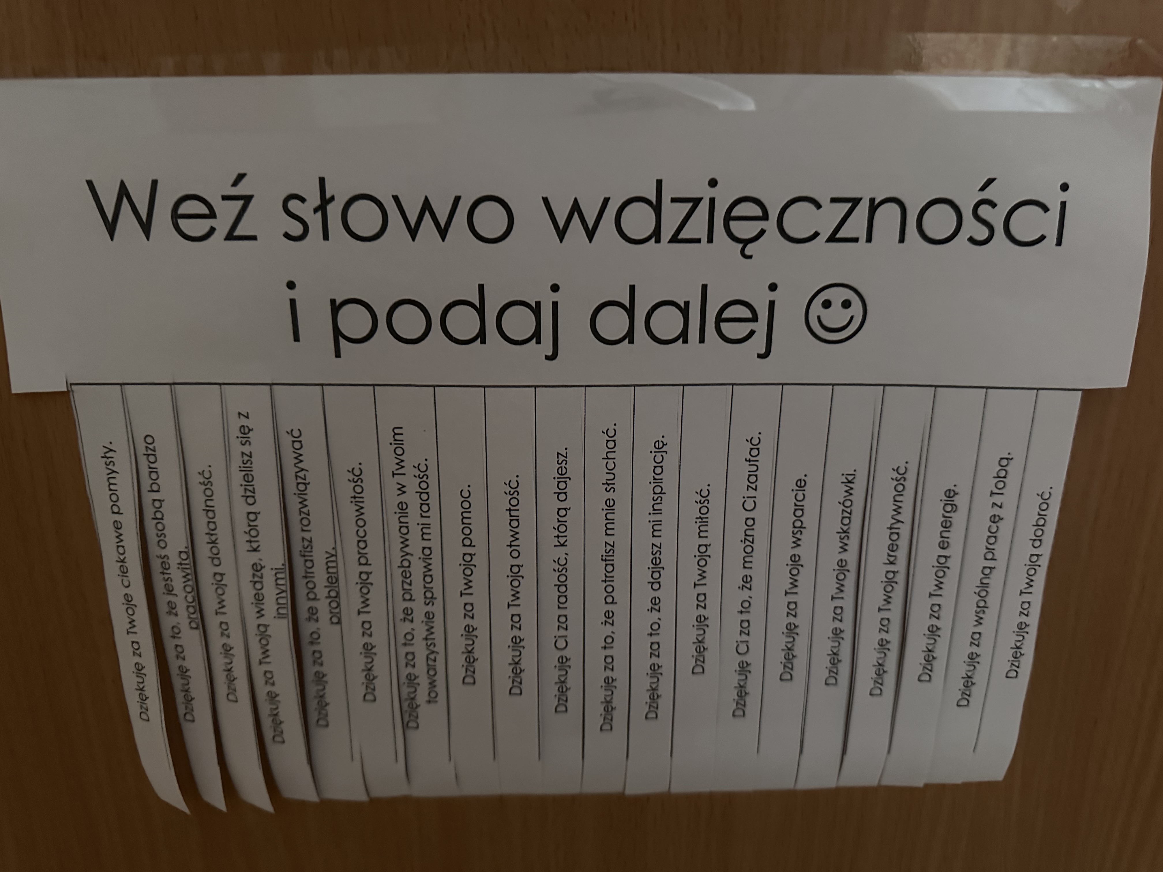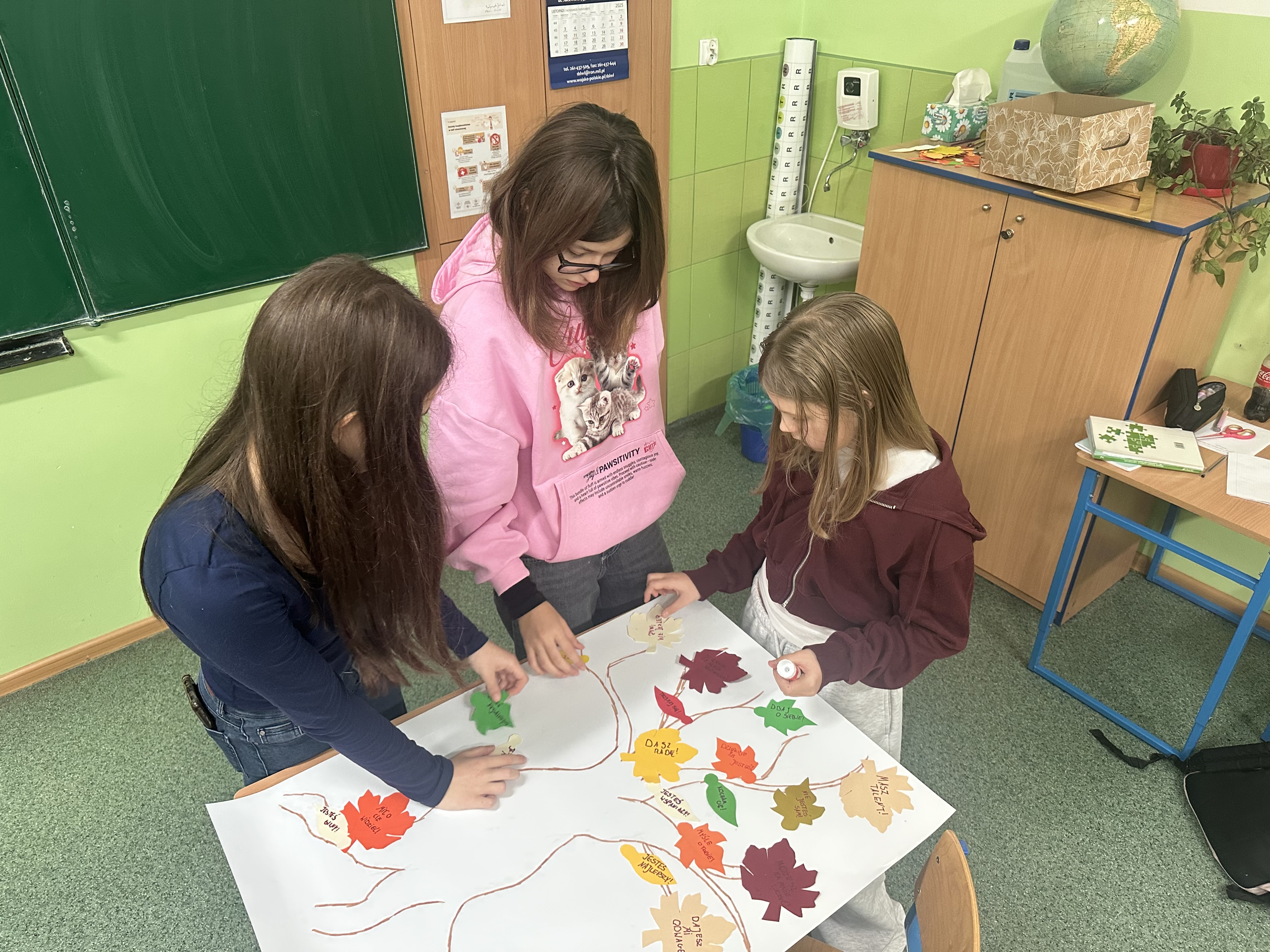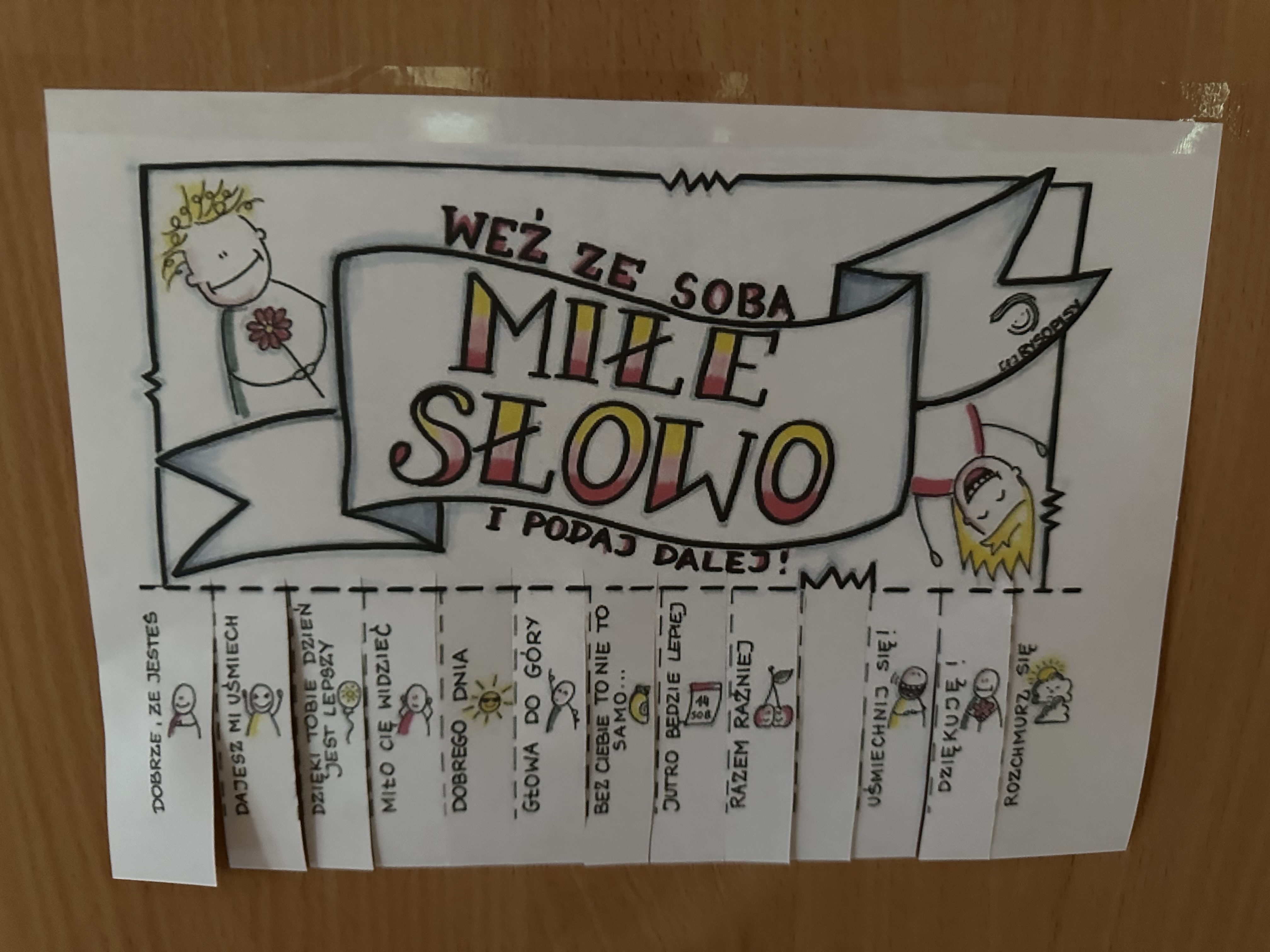 W każdej sali lekcyjnej „wyrosło” wspaniałe drzewo dobrych słów i pozytywnych myśli. Na liściach uczniowie i nauczyciele zapisali optymistyczne hasła, pozytywnie nastrajające zdania lub swoje ulubione cytaty. Słowa „ciepłe i puchate”, pełne dobrej energii.