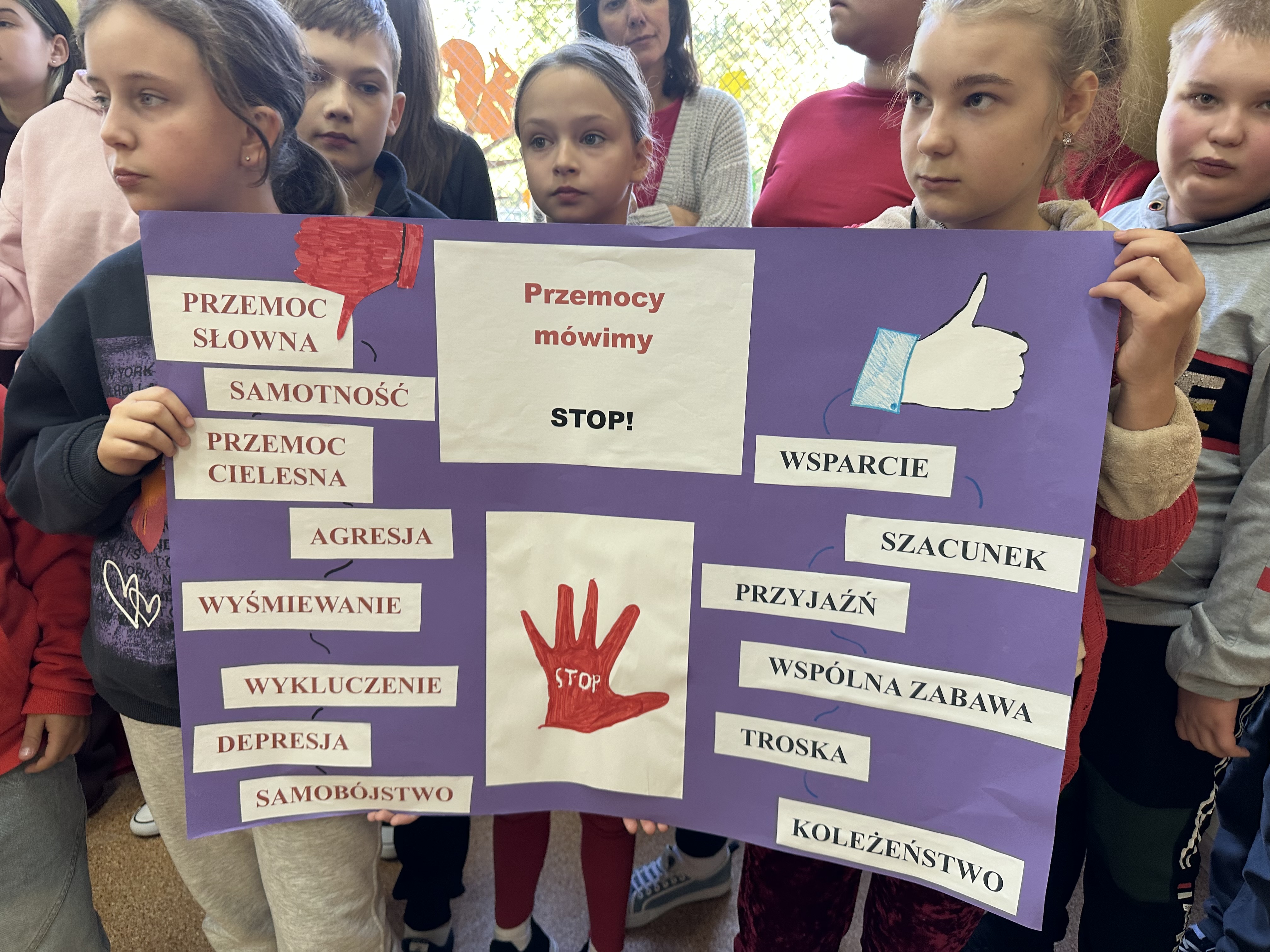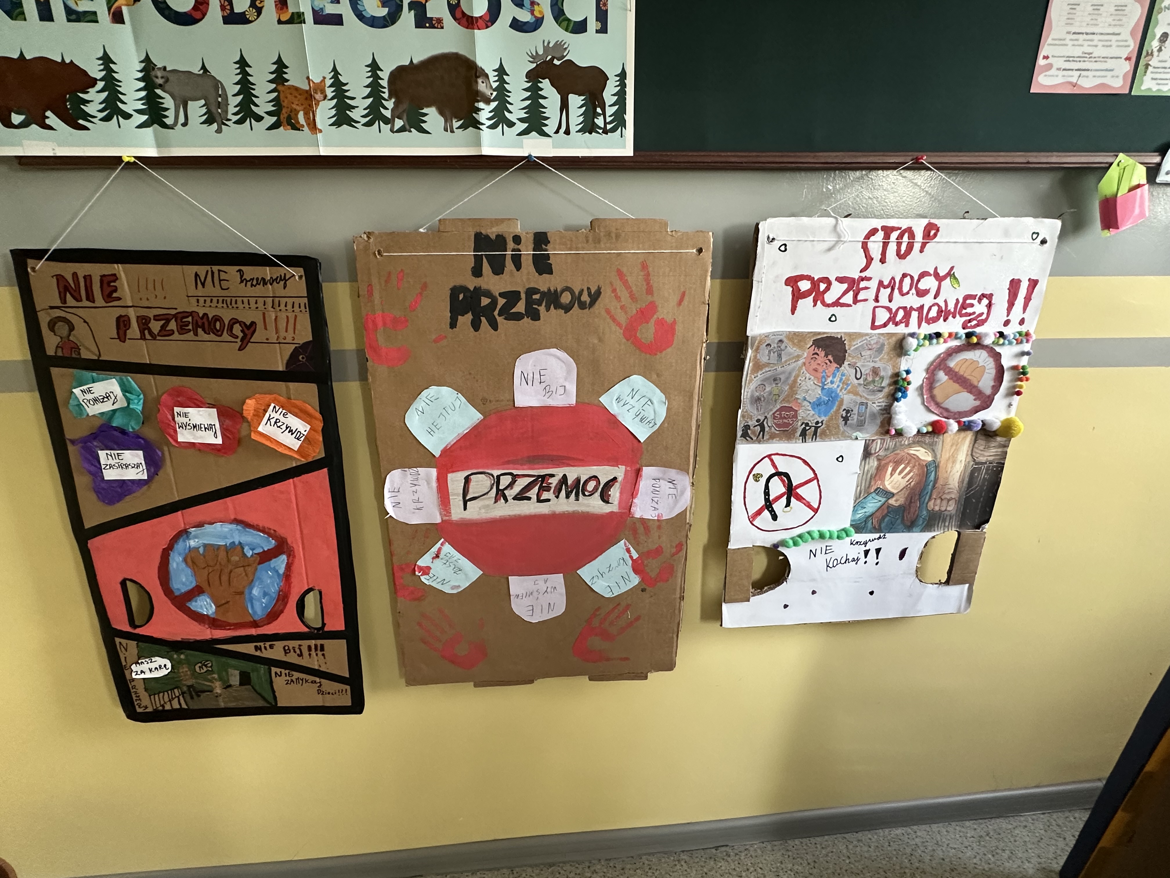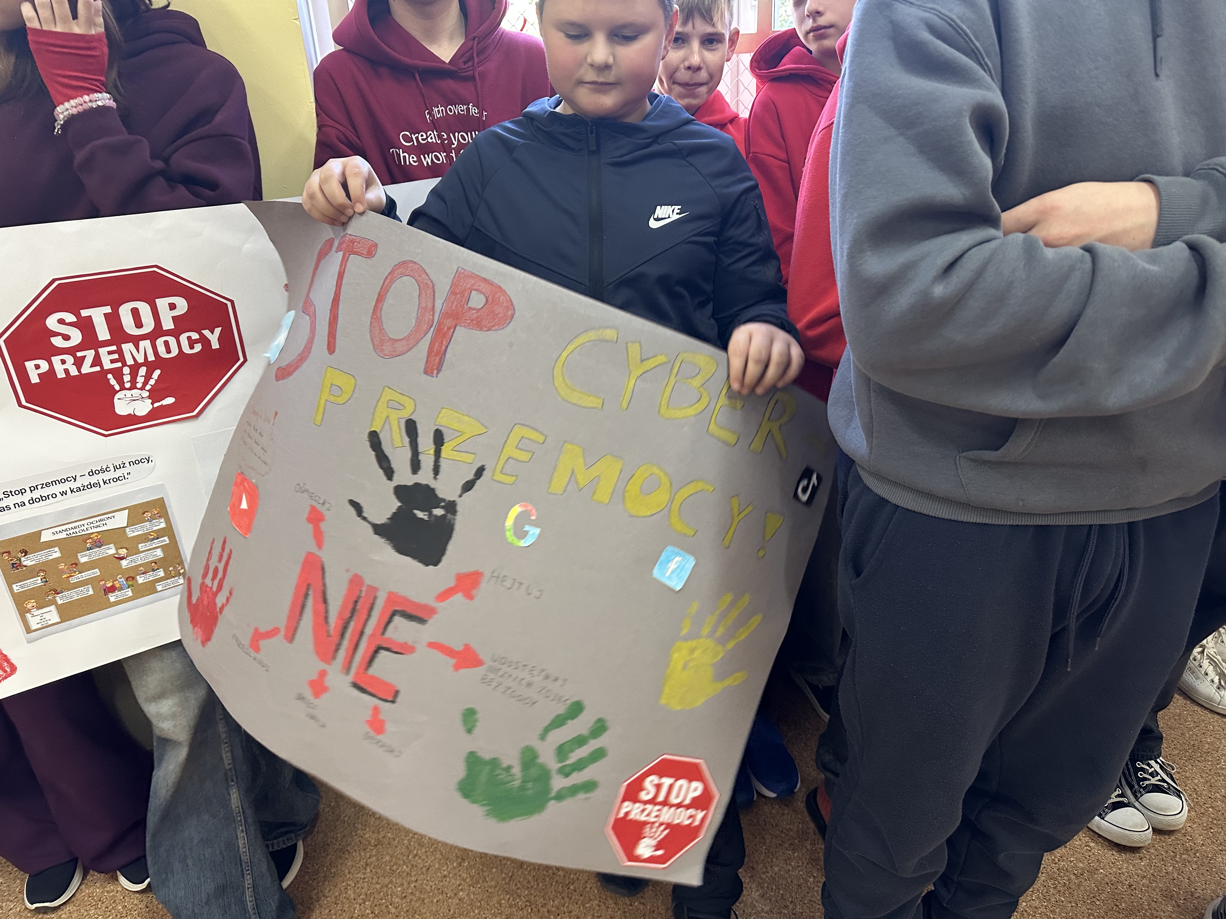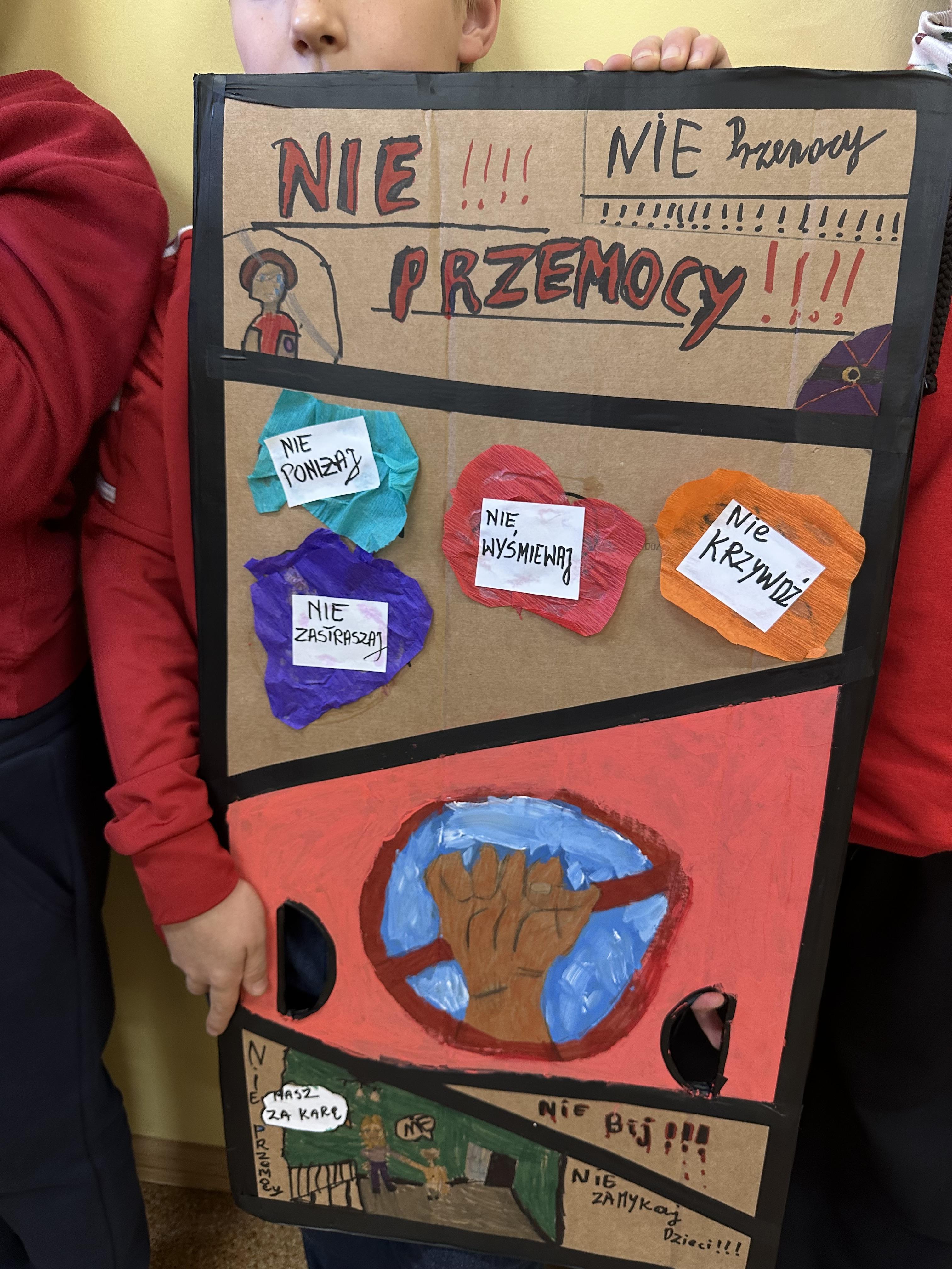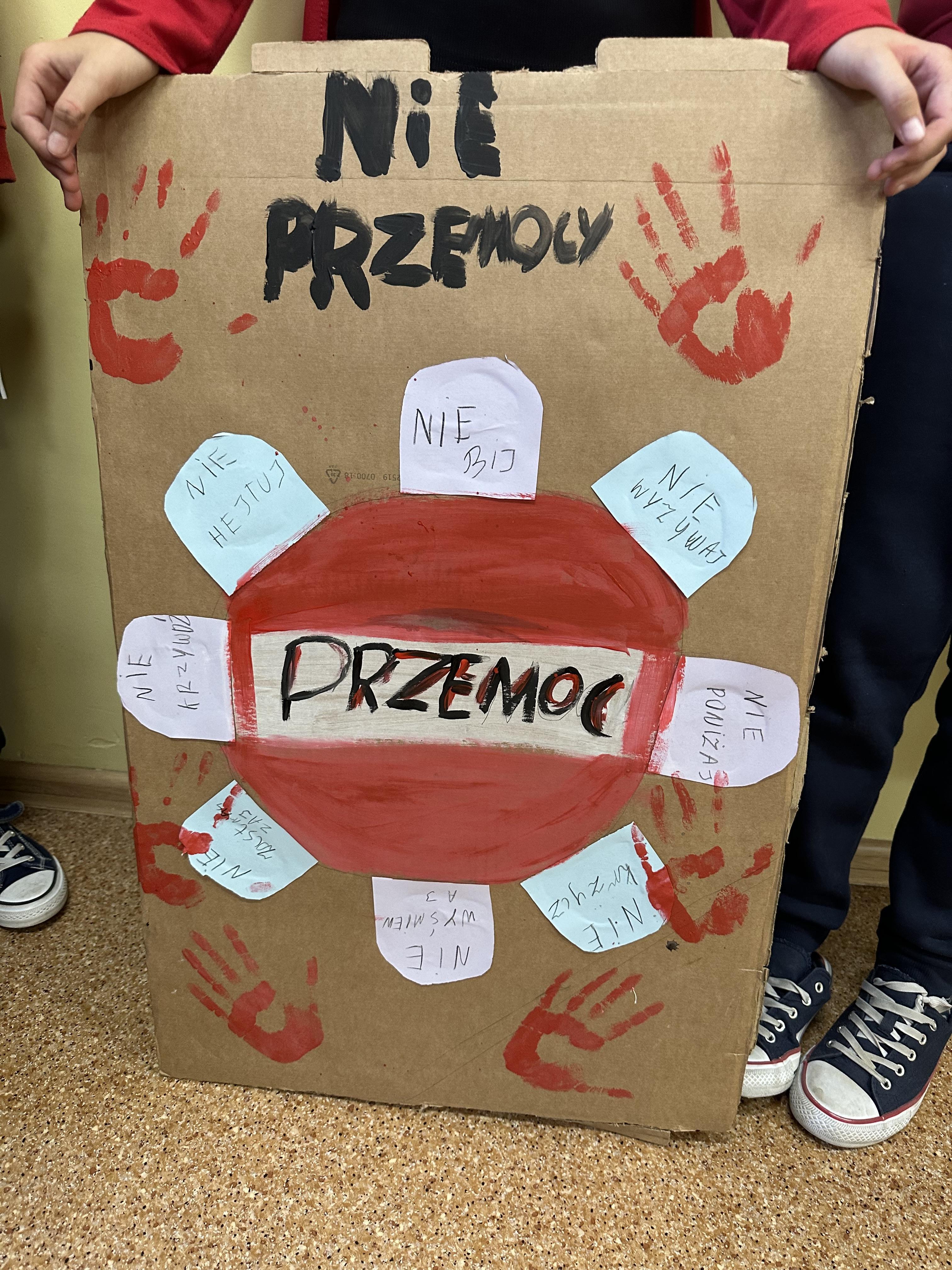 Każda klasa wraz ze swoim wychowawcą przygotowała plakat wyrażające sprzeciw wobec przemocy rówieśniczej, pokazując, że nasza szkoła mówi przemocy stanowcze NIE!!!