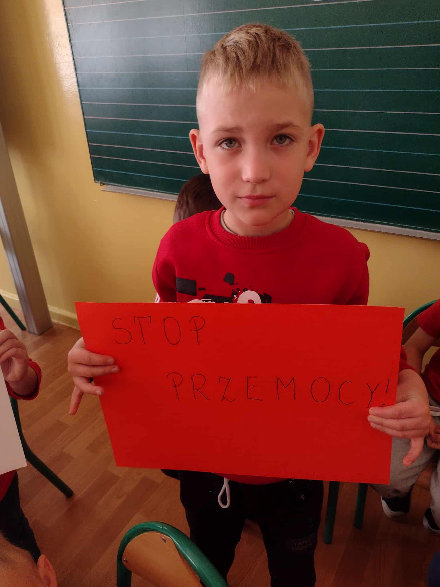 Społeczność szkoły aktywnie włączyła się w obchody, ubierając się na czerwono-kolor ten jest symbolem walki z przemocą i troski o dzieci.