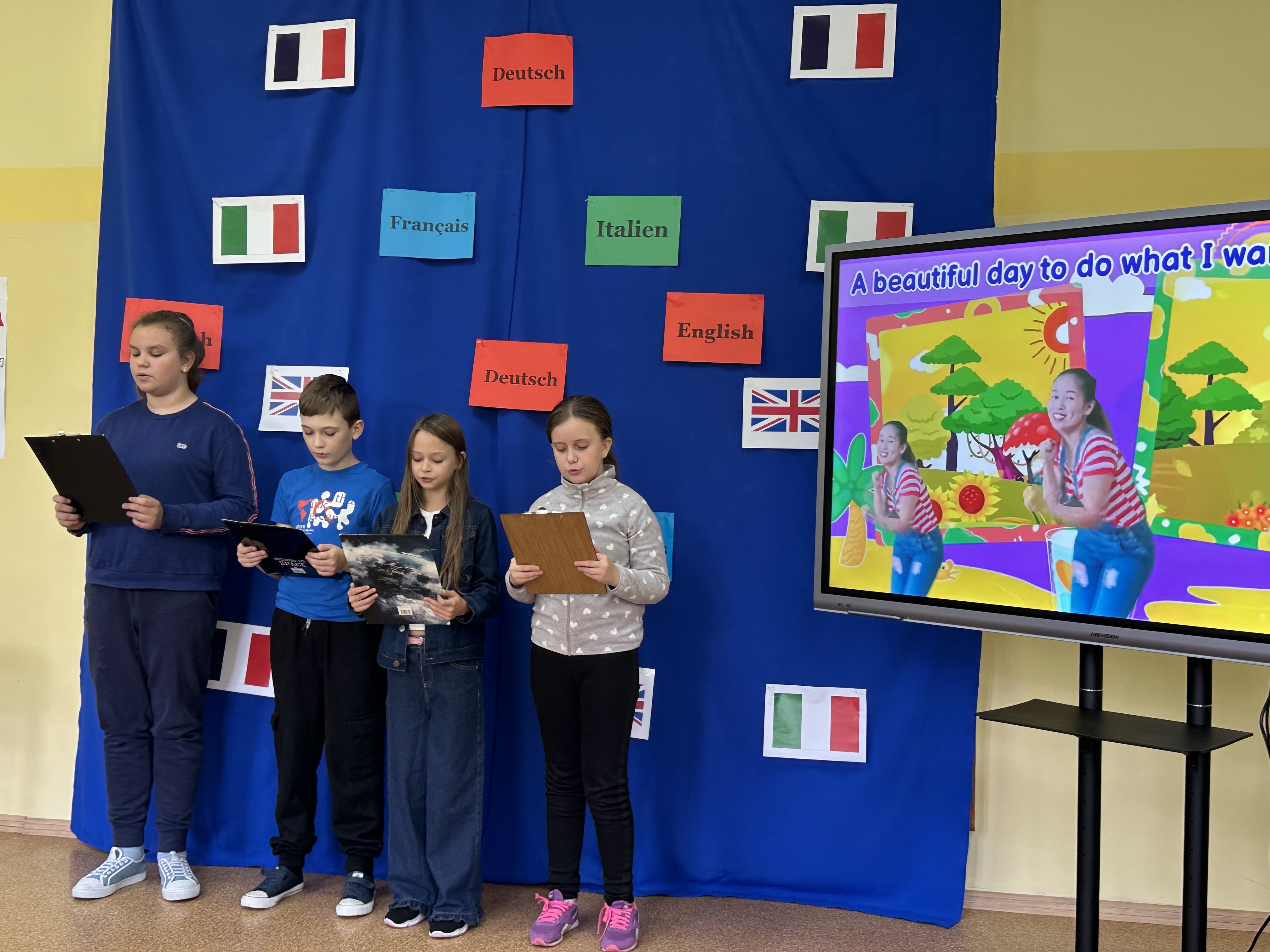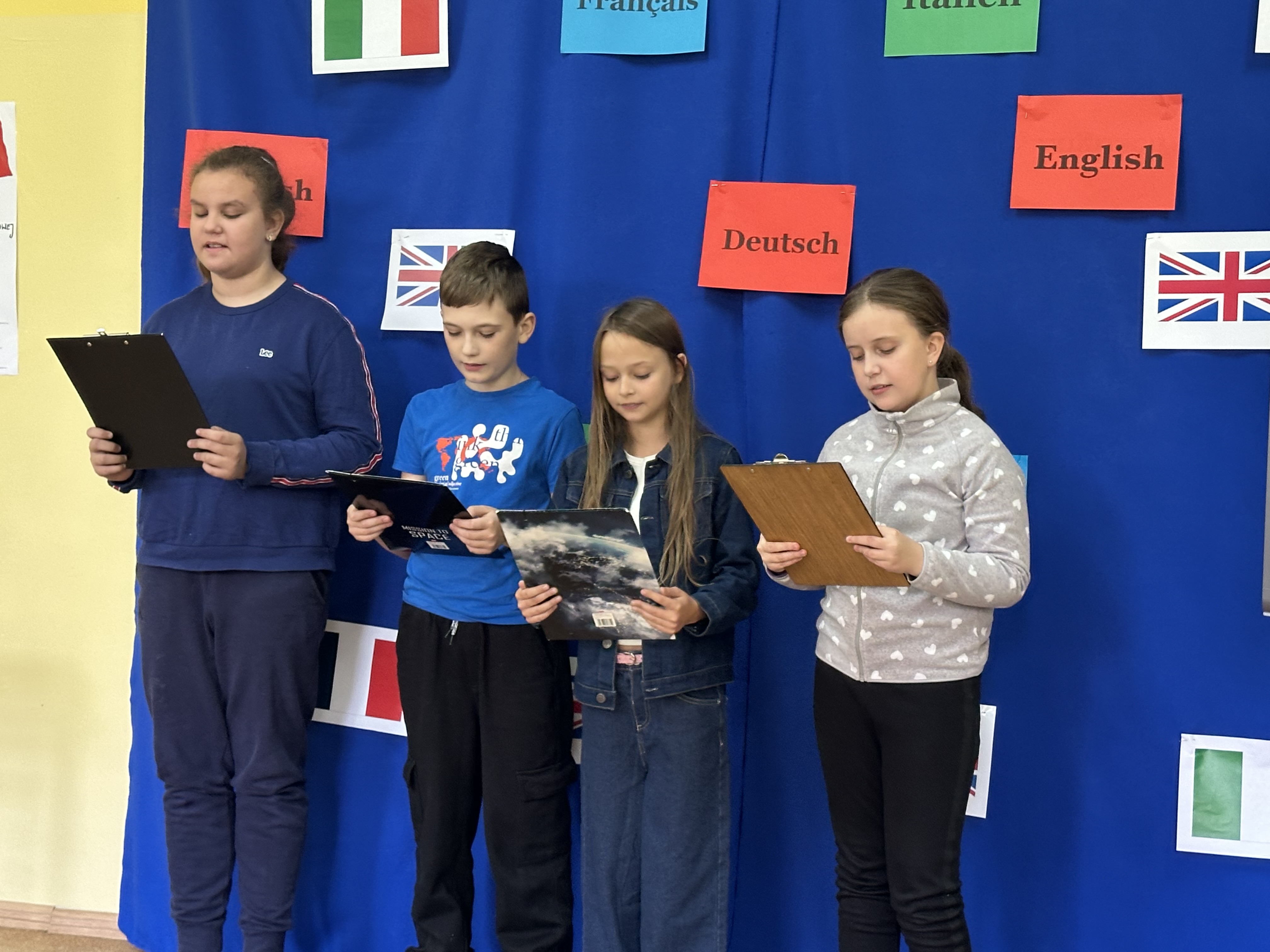 W naszej obchodziliśmy Dzień Języków Obcych w atmosferze radości, kreatywności i otwartości na różnorodność kulturową. Uczniowie klas 7 i 8 przygotowali krótki występ o Unii Europejskiej oraz konkurs wiedzy o krajach europejskich, a uczniowie klas 0-4 występy muzyczne.
