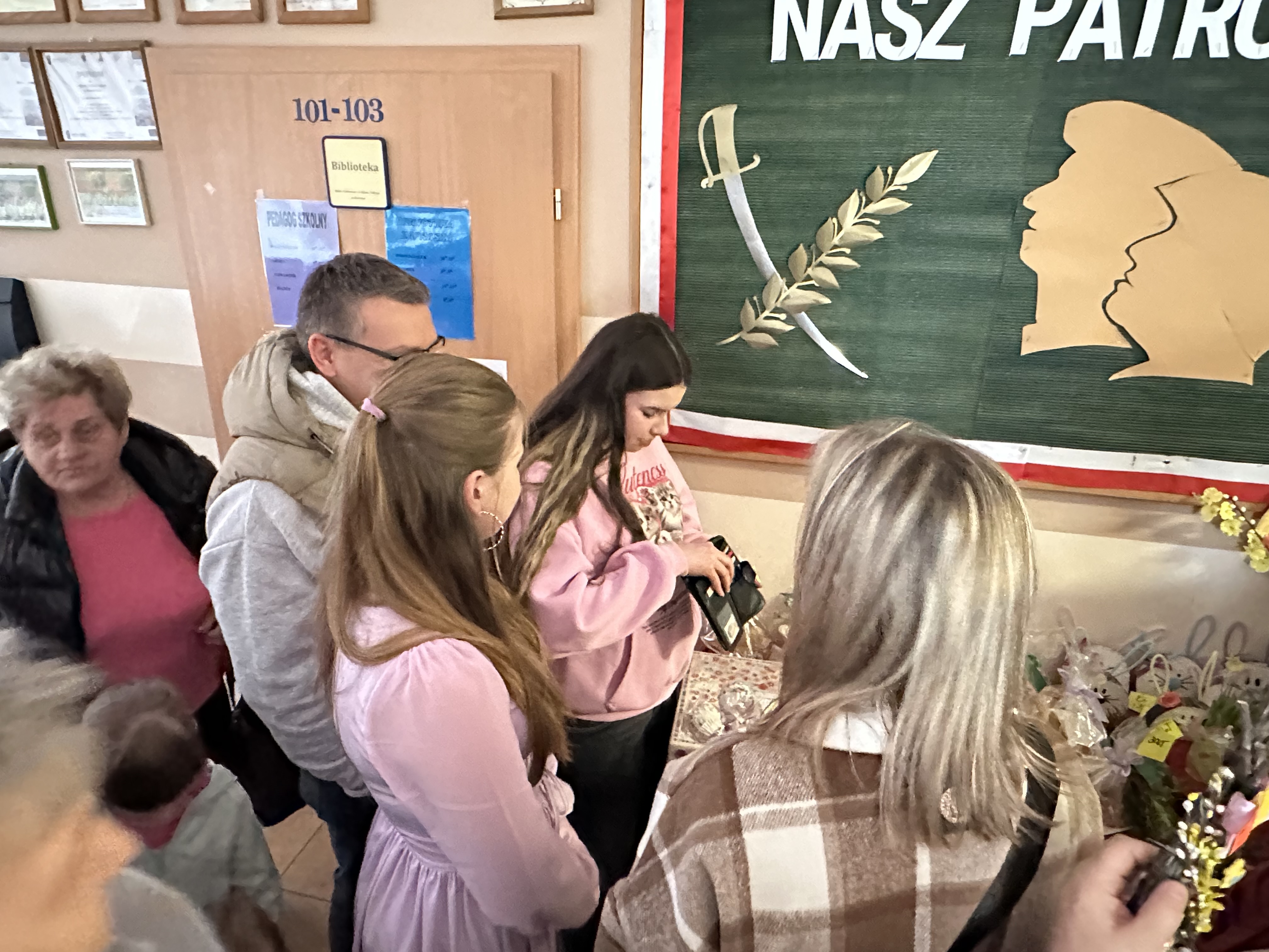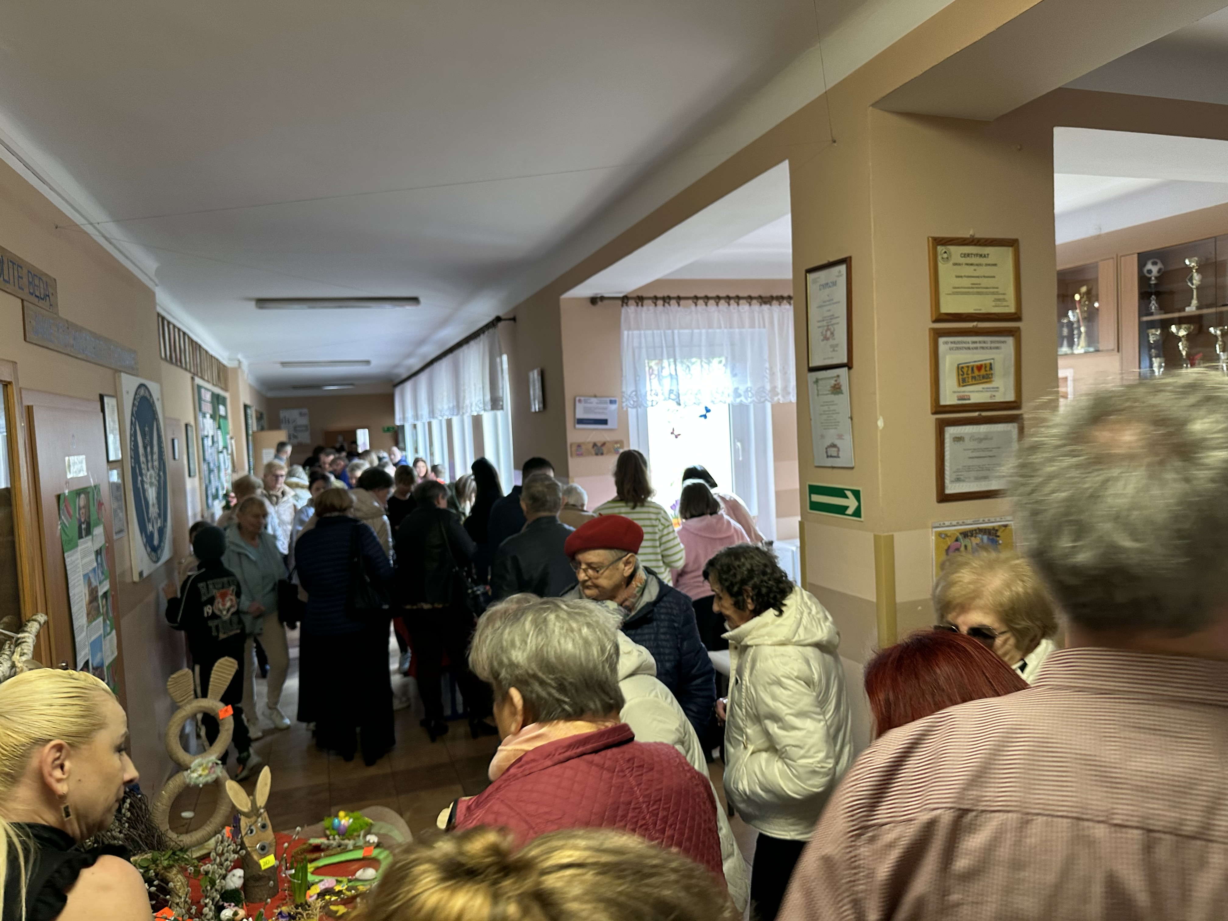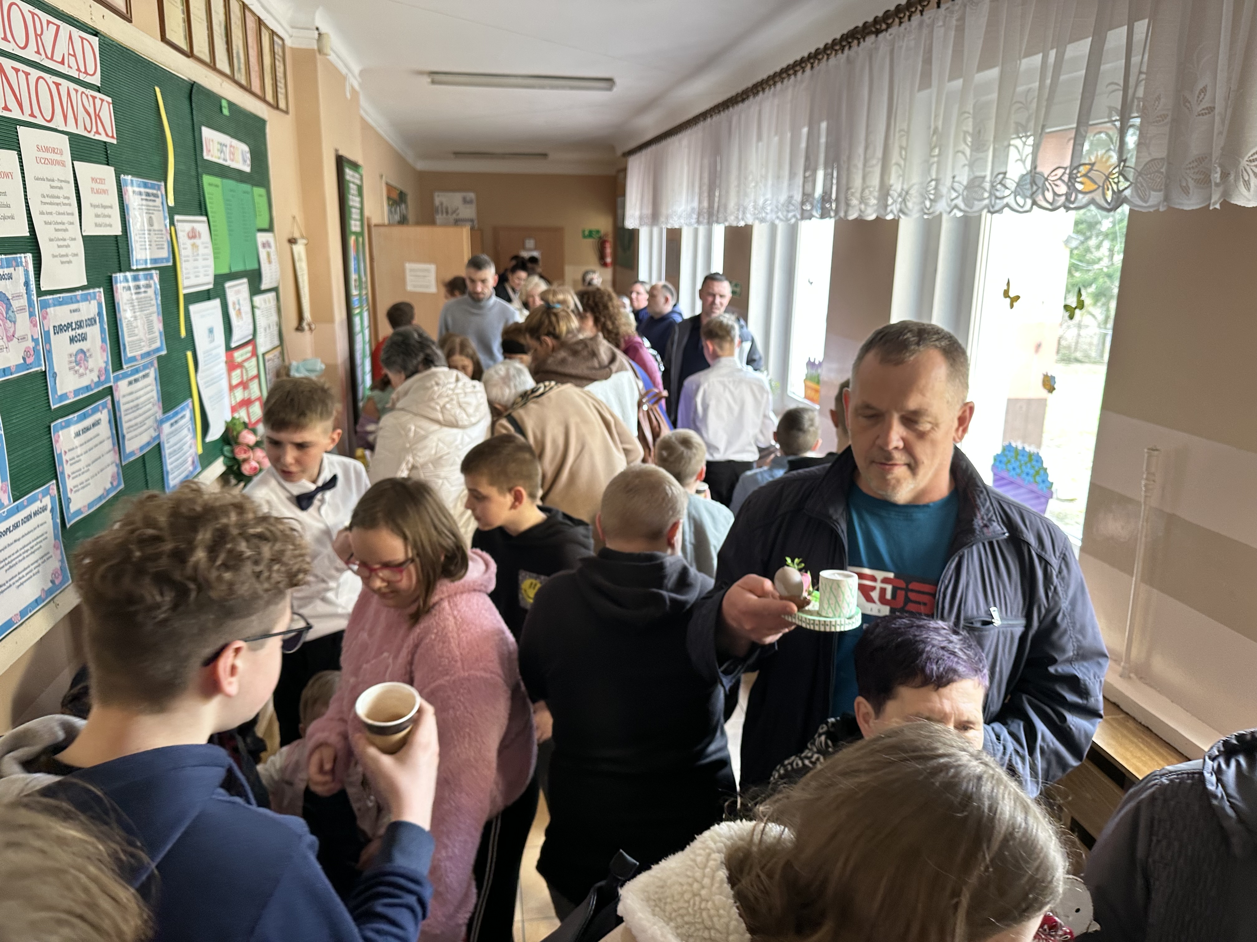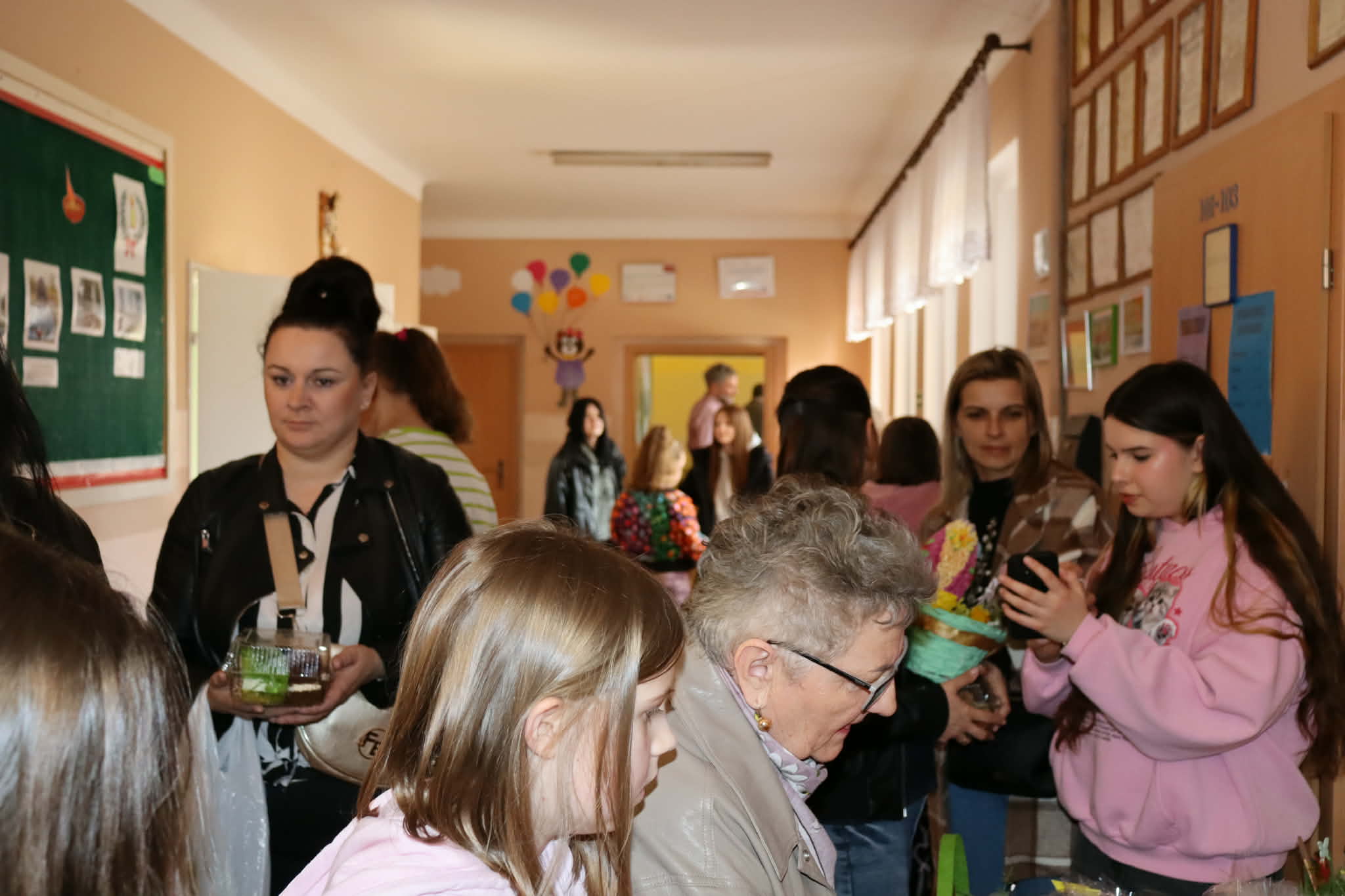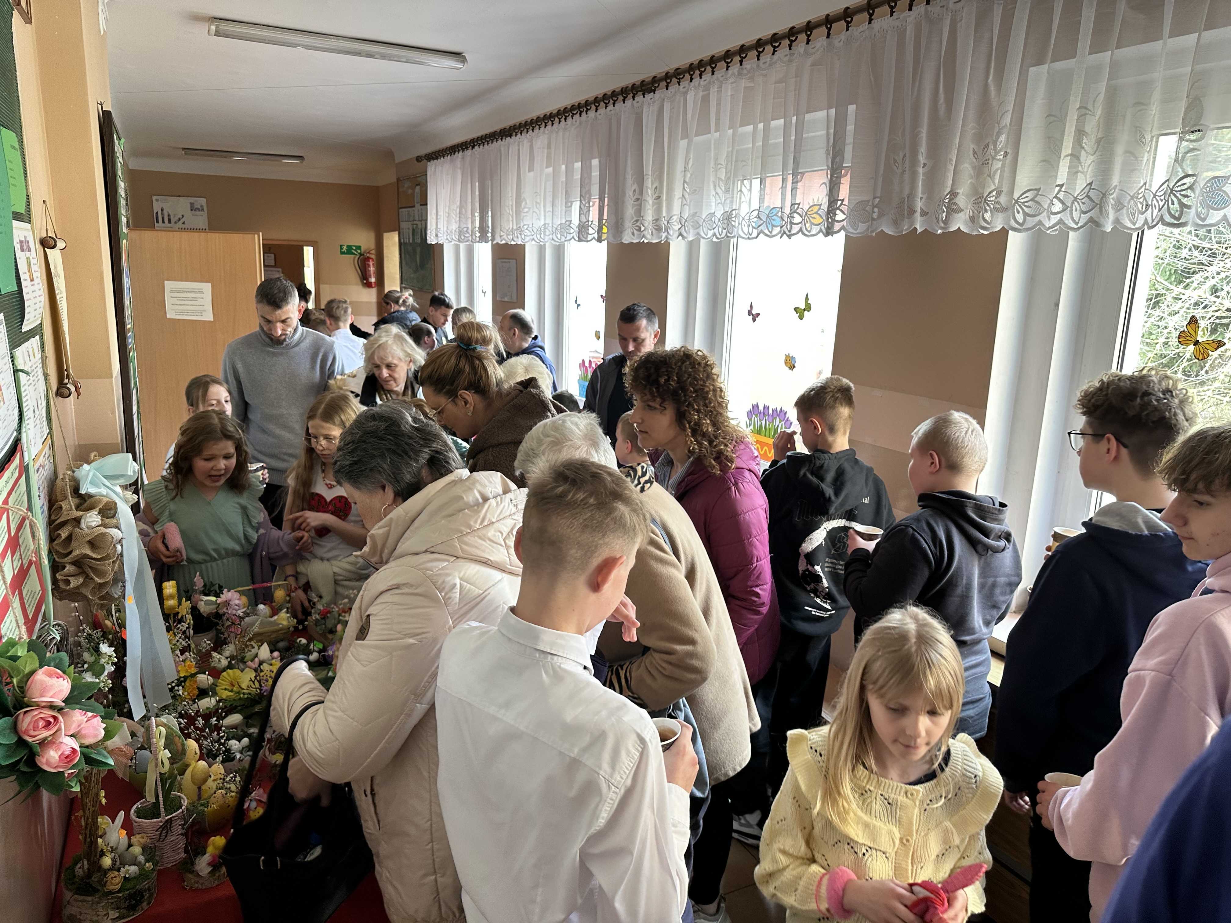 W naszej szkole odbył się wyjątkowy kiermasz wielkanocny, który zgromadził całą społeczność szkolną – uczniów, nauczycieli, rodziców, emerytowanych pracowników i przyjaciół szkoły, w tym także członków Klubu Seniora ,,Oświata”. Wydarzenie poprzedziły występy uczniów, którzy wprowadzili wszystkich w świąteczny nastrój, prezentując program artystyczny oraz składając serdeczne życzenia wielkanocne.