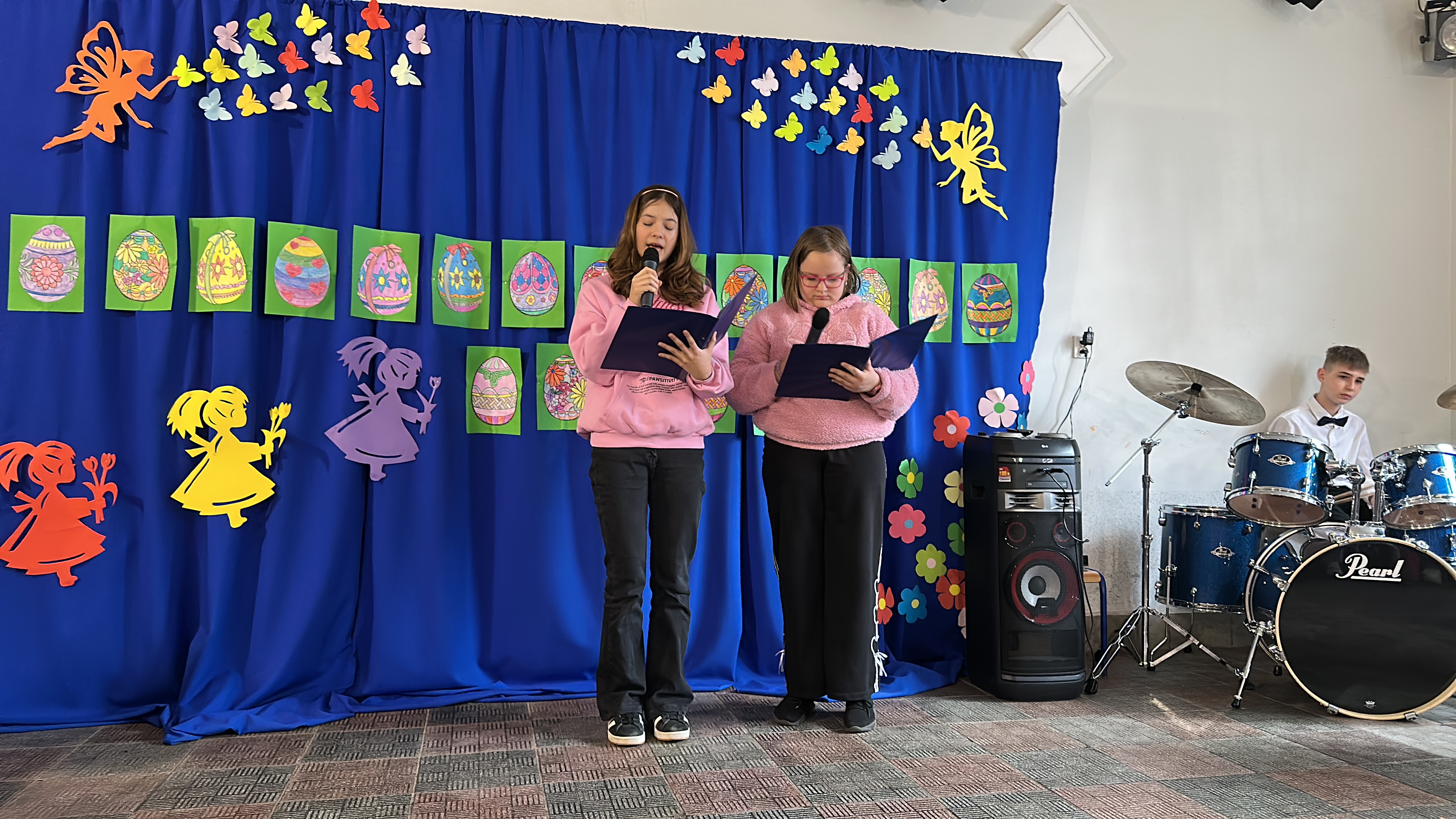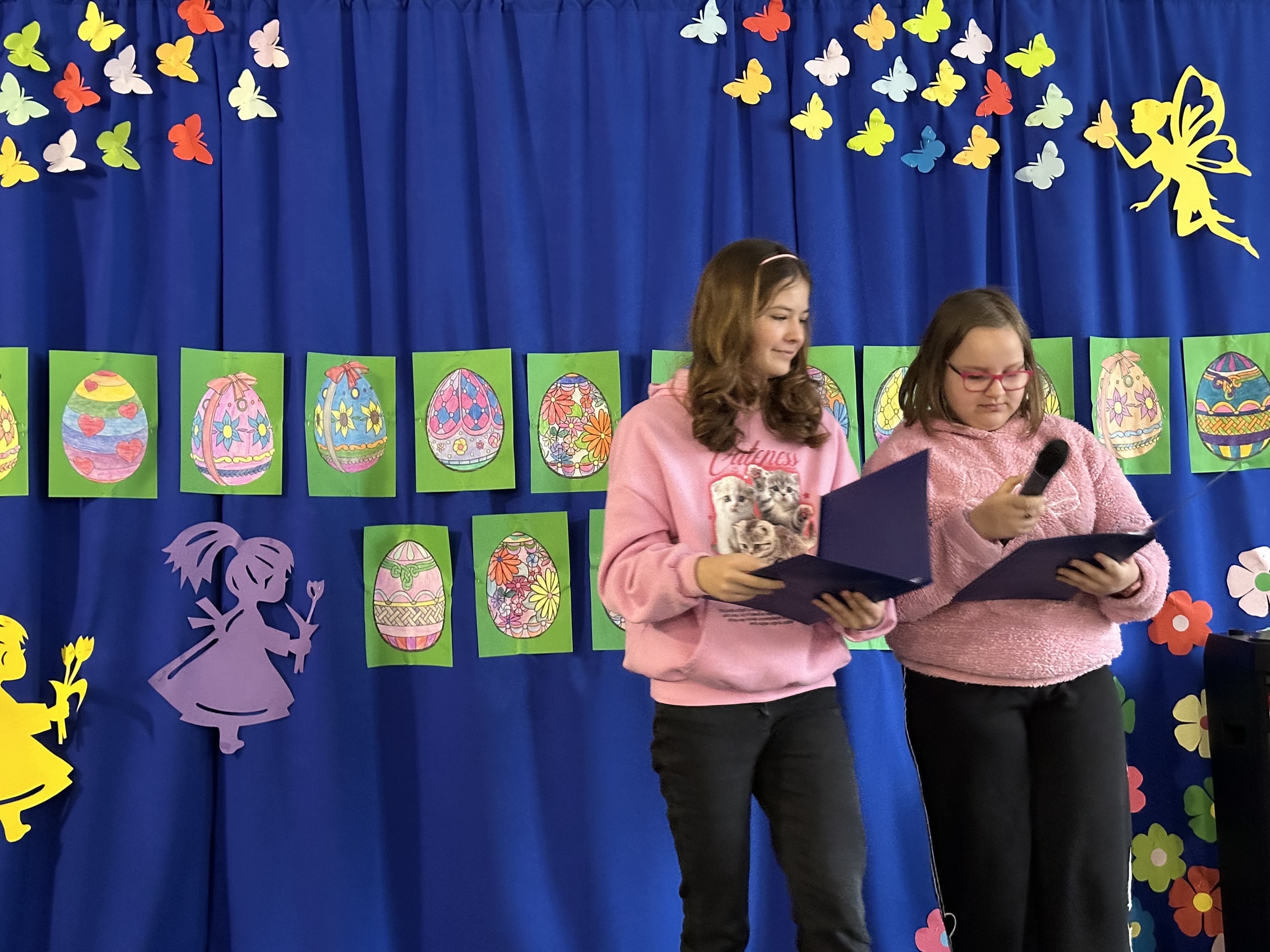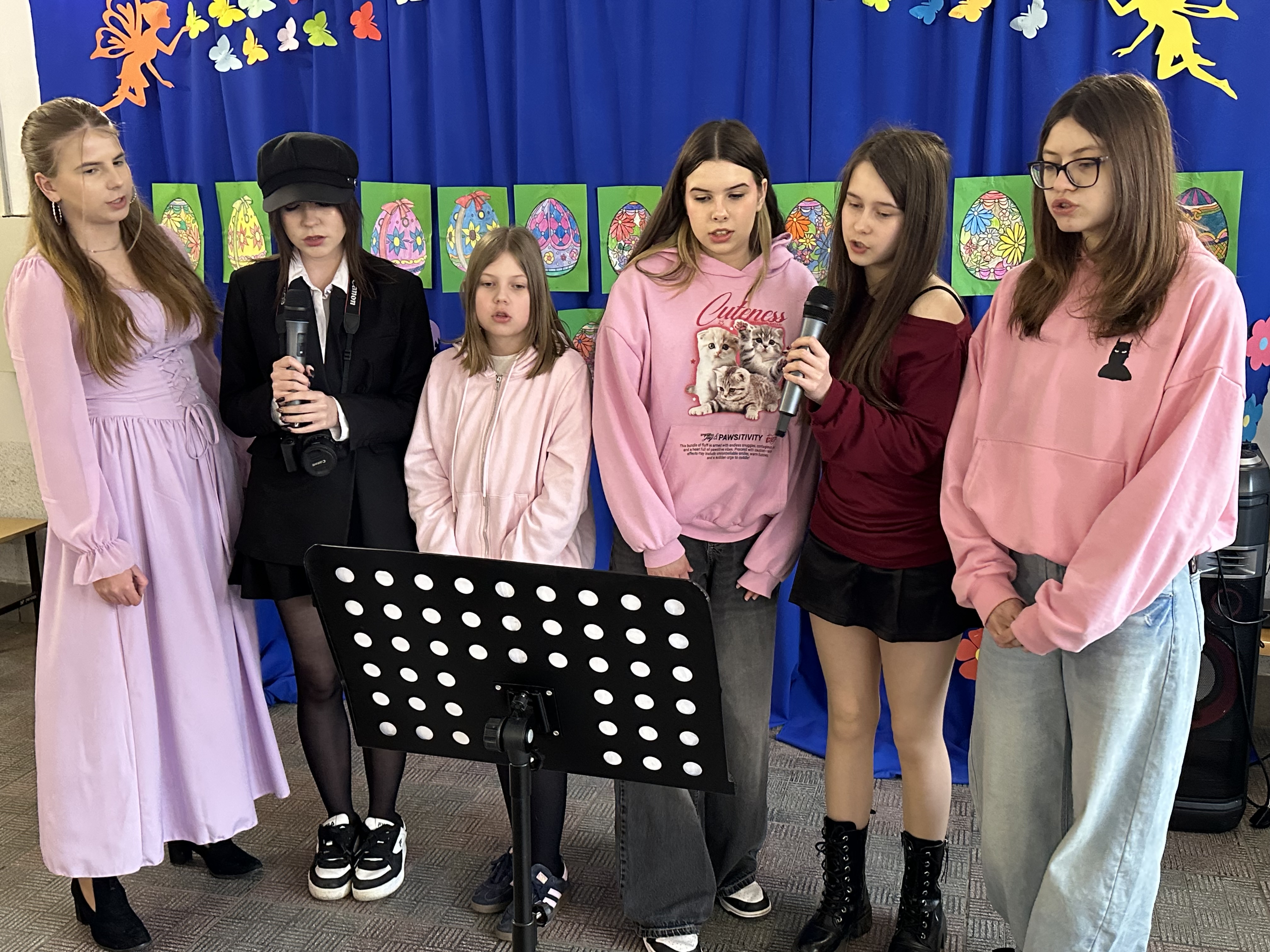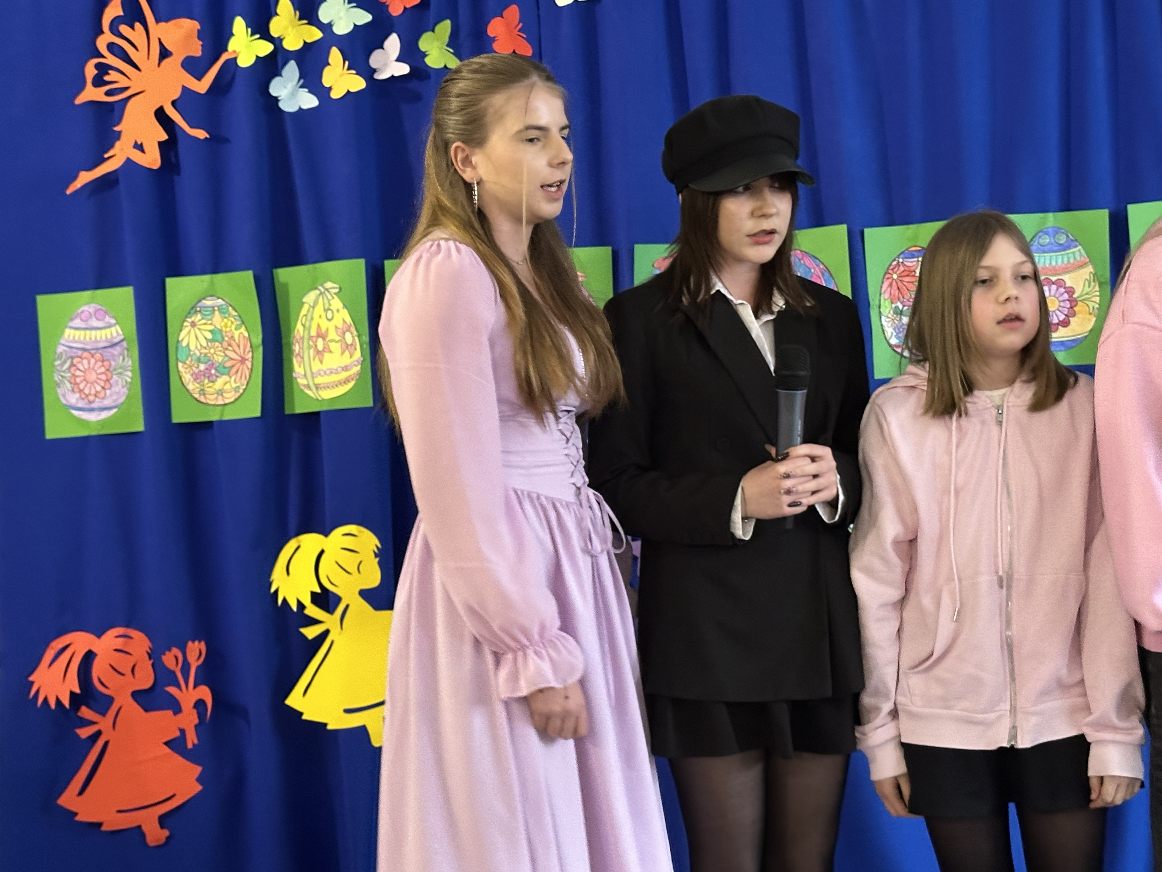 W naszej szkole odbył się wyjątkowy kiermasz wielkanocny, który zgromadził całą społeczność szkolną – uczniów, nauczycieli, rodziców, emerytowanych pracowników i przyjaciół szkoły, w tym także członków Klubu Seniora ,,Oświata”. Wydarzenie poprzedziły występy uczniów, którzy wprowadzili wszystkich w świąteczny nastrój, prezentując program artystyczny oraz składając serdeczne życzenia wielkanocne.