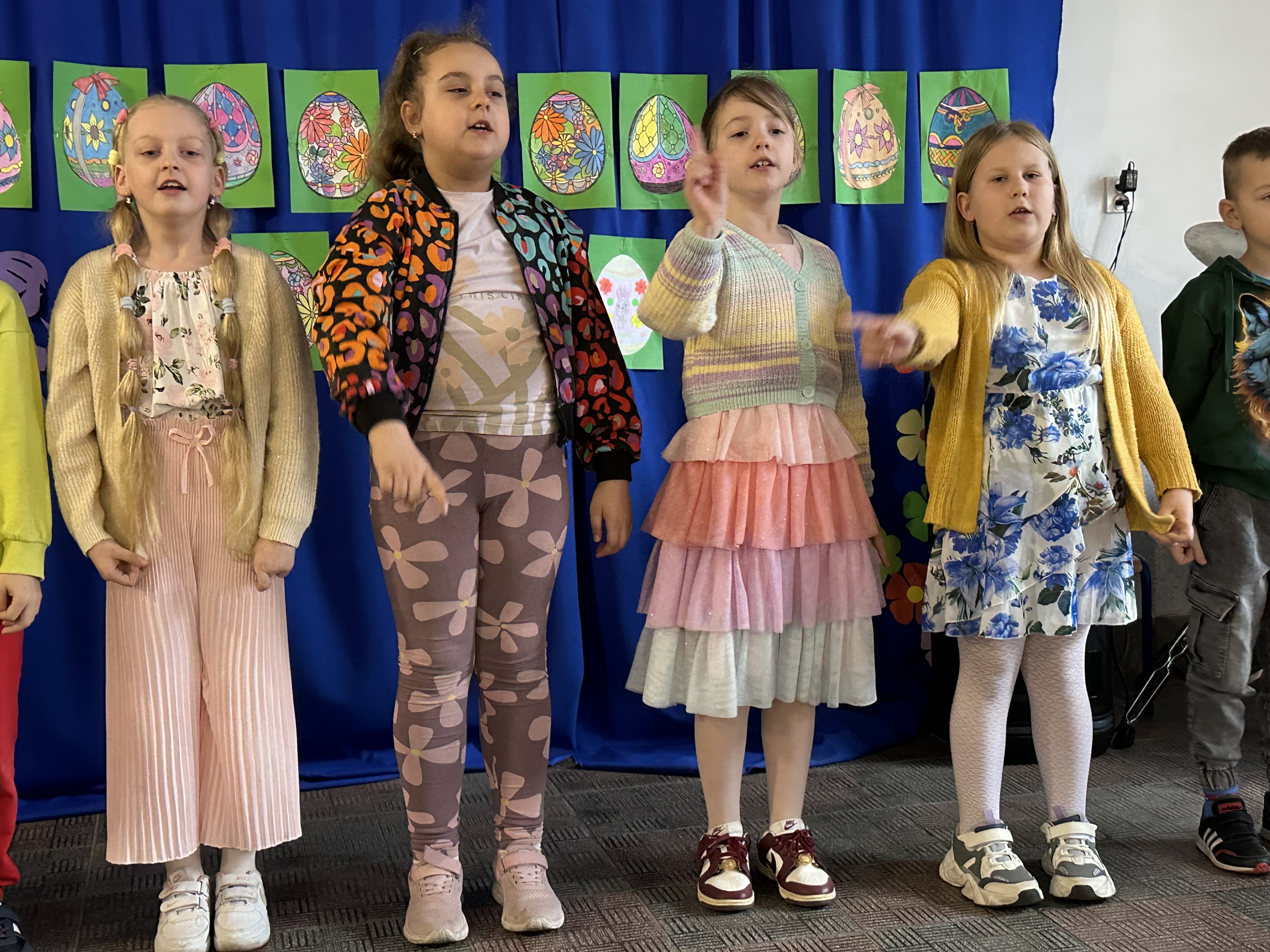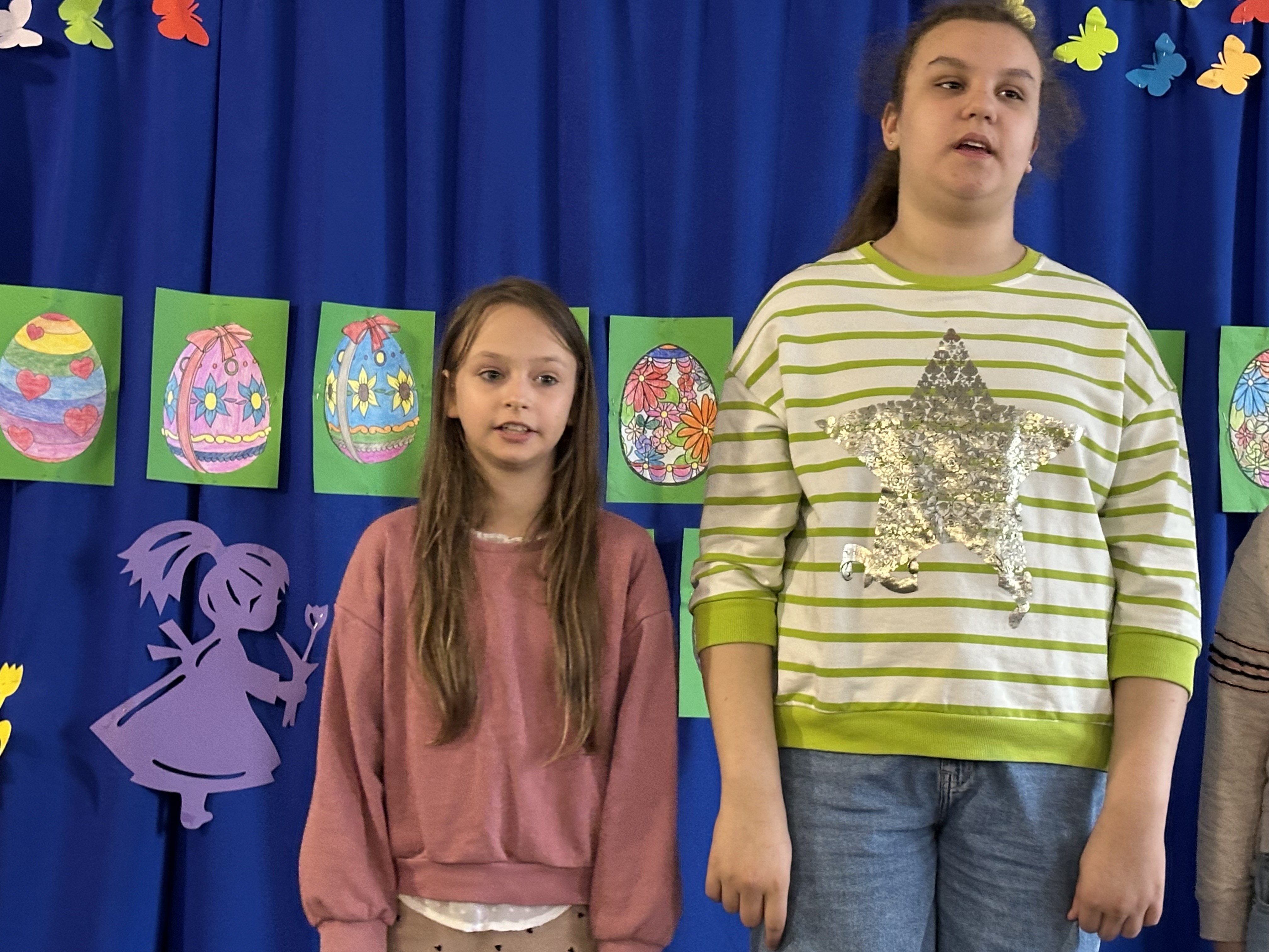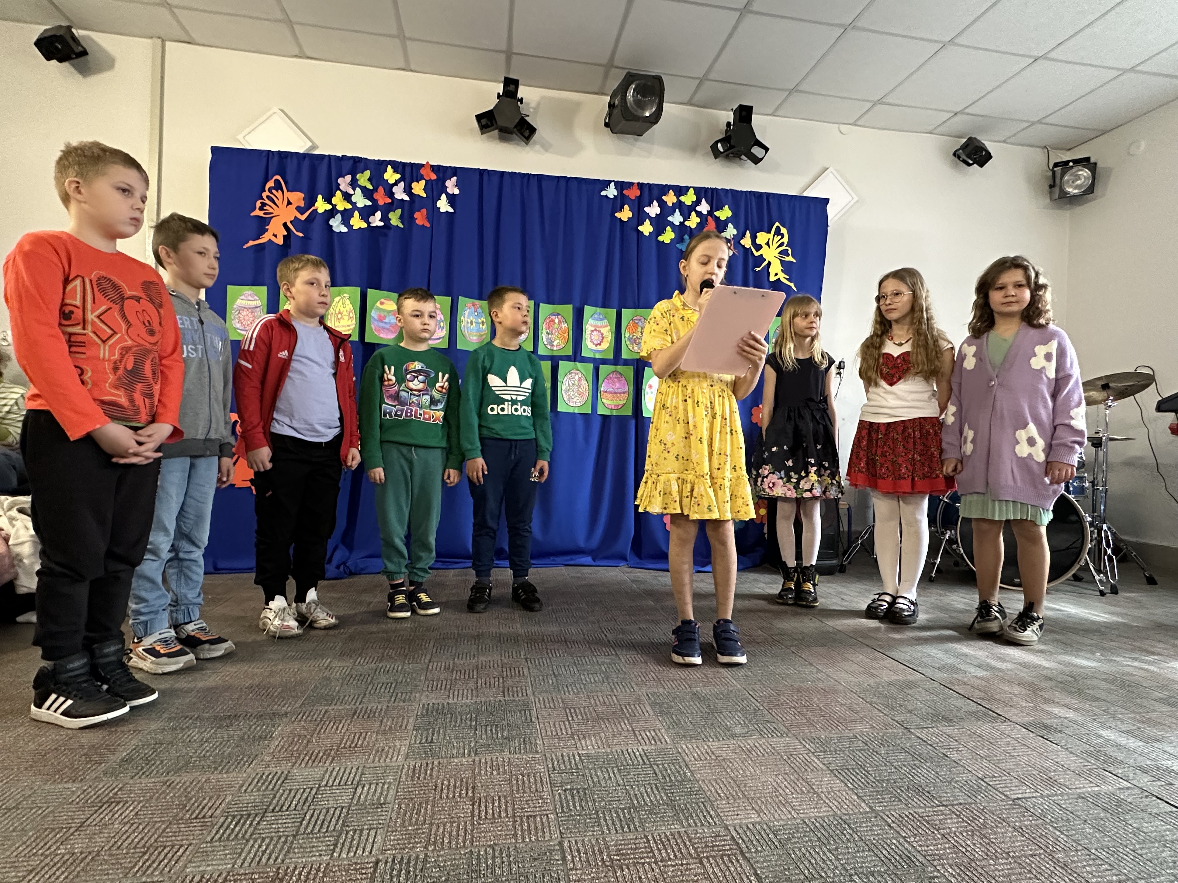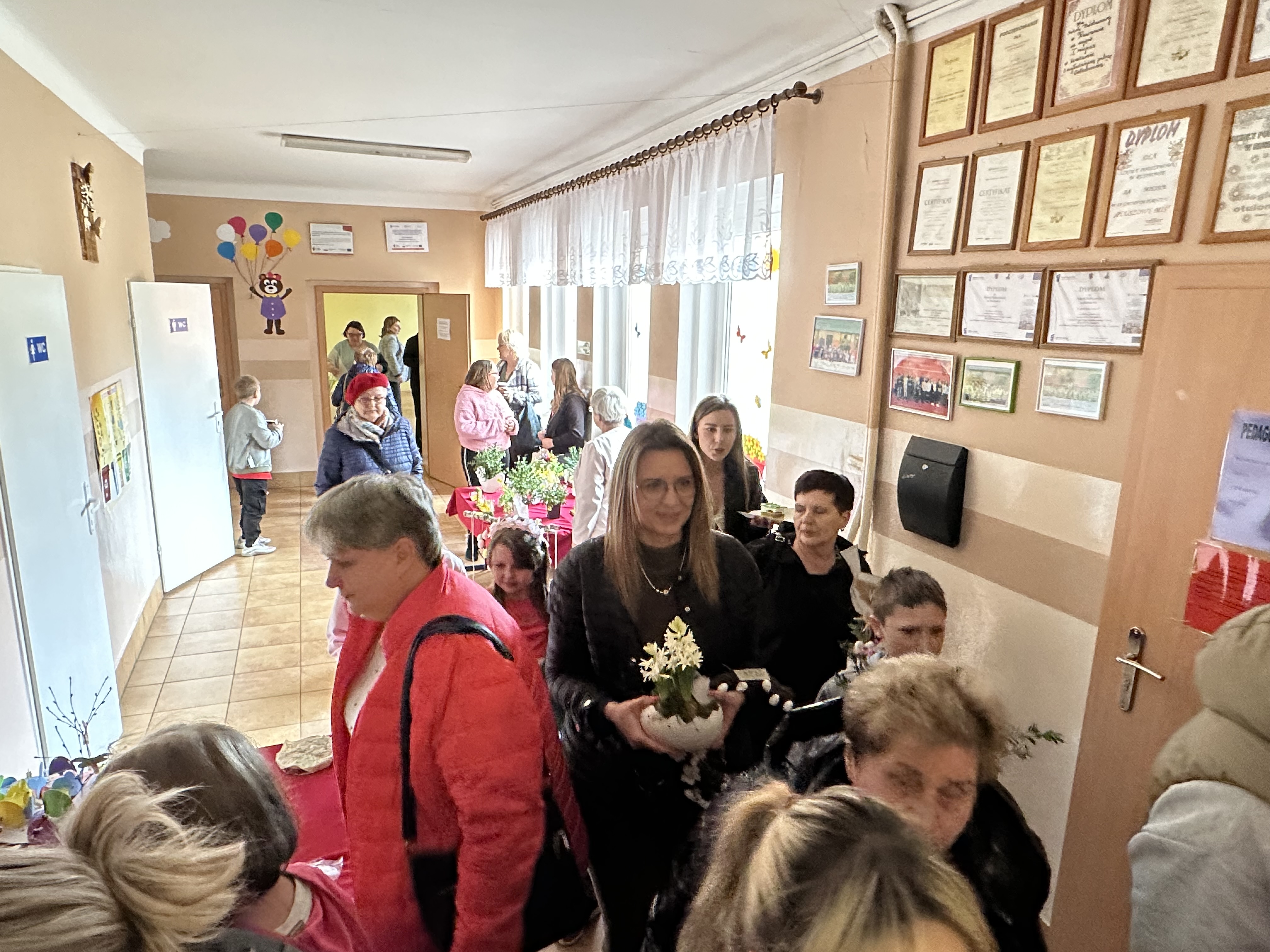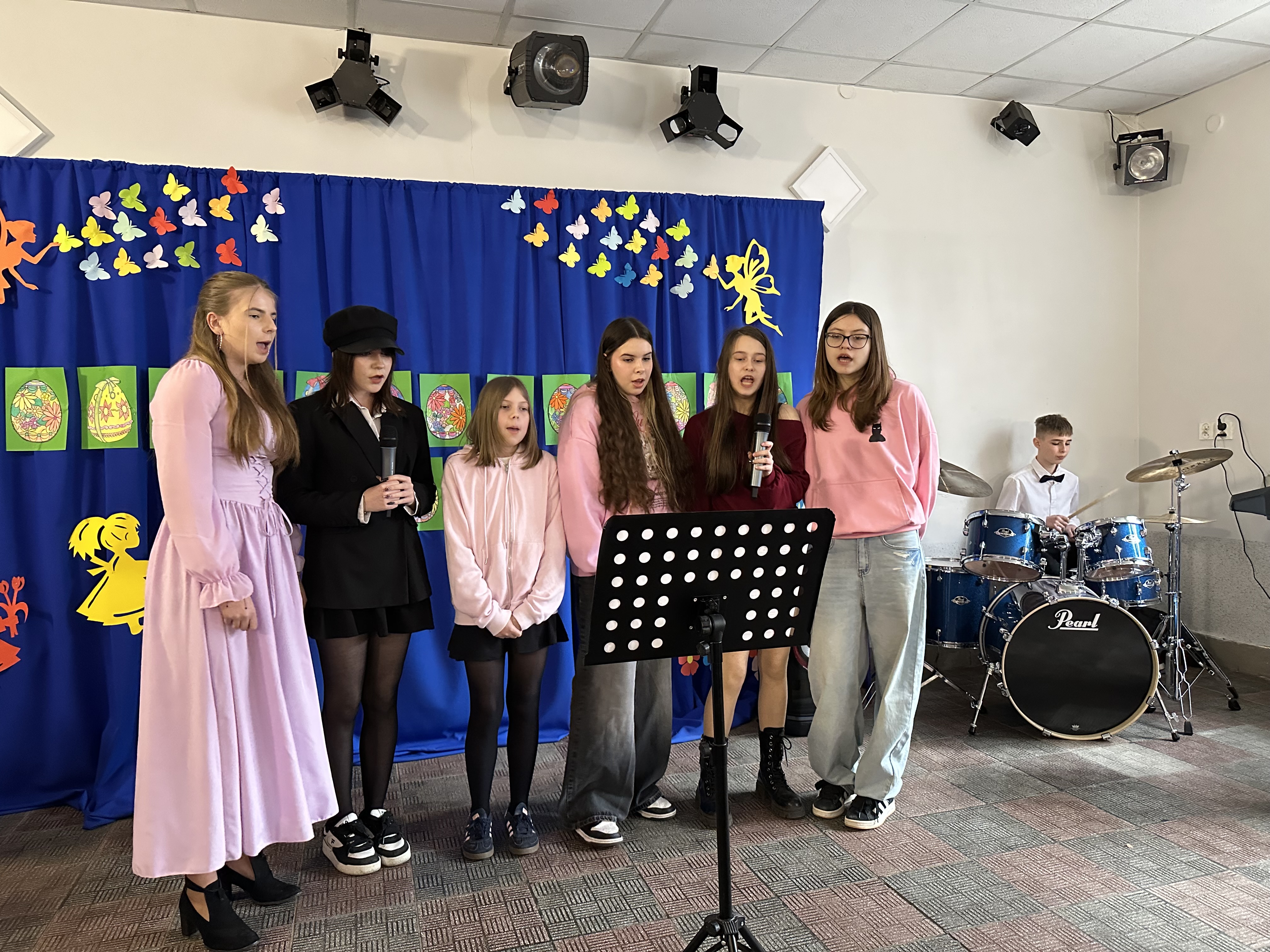 W naszej szkole odbył się wyjątkowy kiermasz wielkanocny, który zgromadził całą społeczność szkolną – uczniów, nauczycieli, rodziców, emerytowanych pracowników i przyjaciół szkoły, w tym także członków Klubu Seniora ,,Oświata”. Wydarzenie poprzedziły występy uczniów, którzy wprowadzili wszystkich w świąteczny nastrój, prezentując program artystyczny oraz składając serdeczne życzenia wielkanocne.