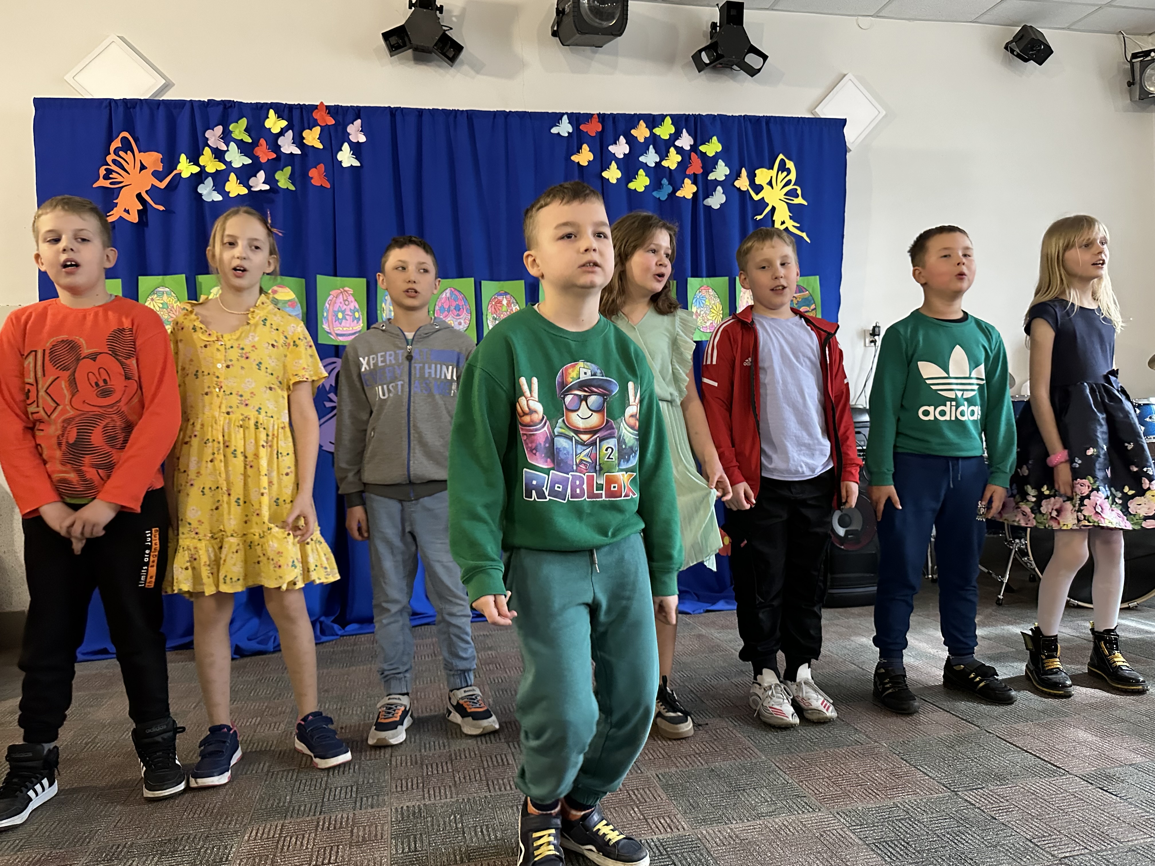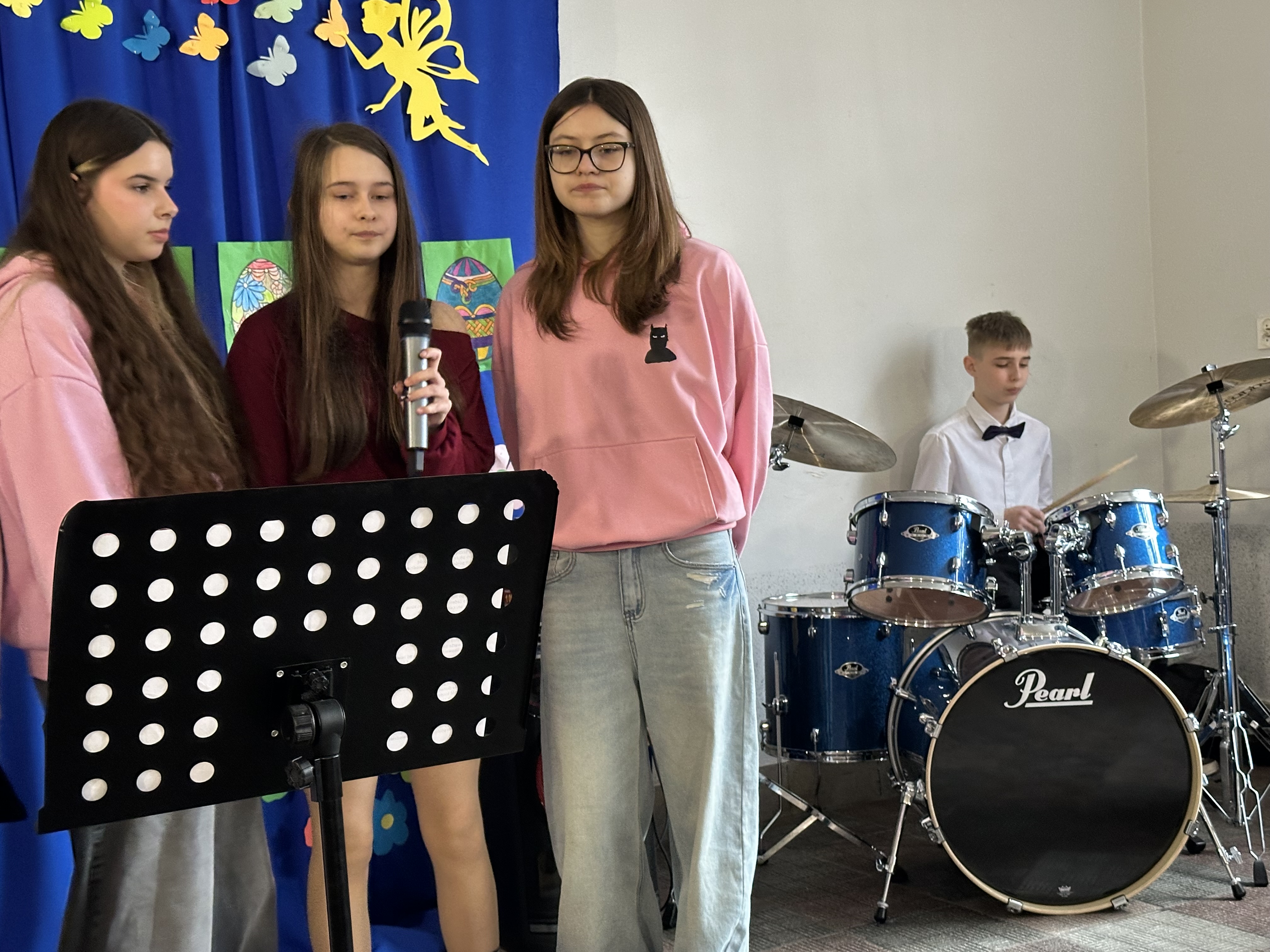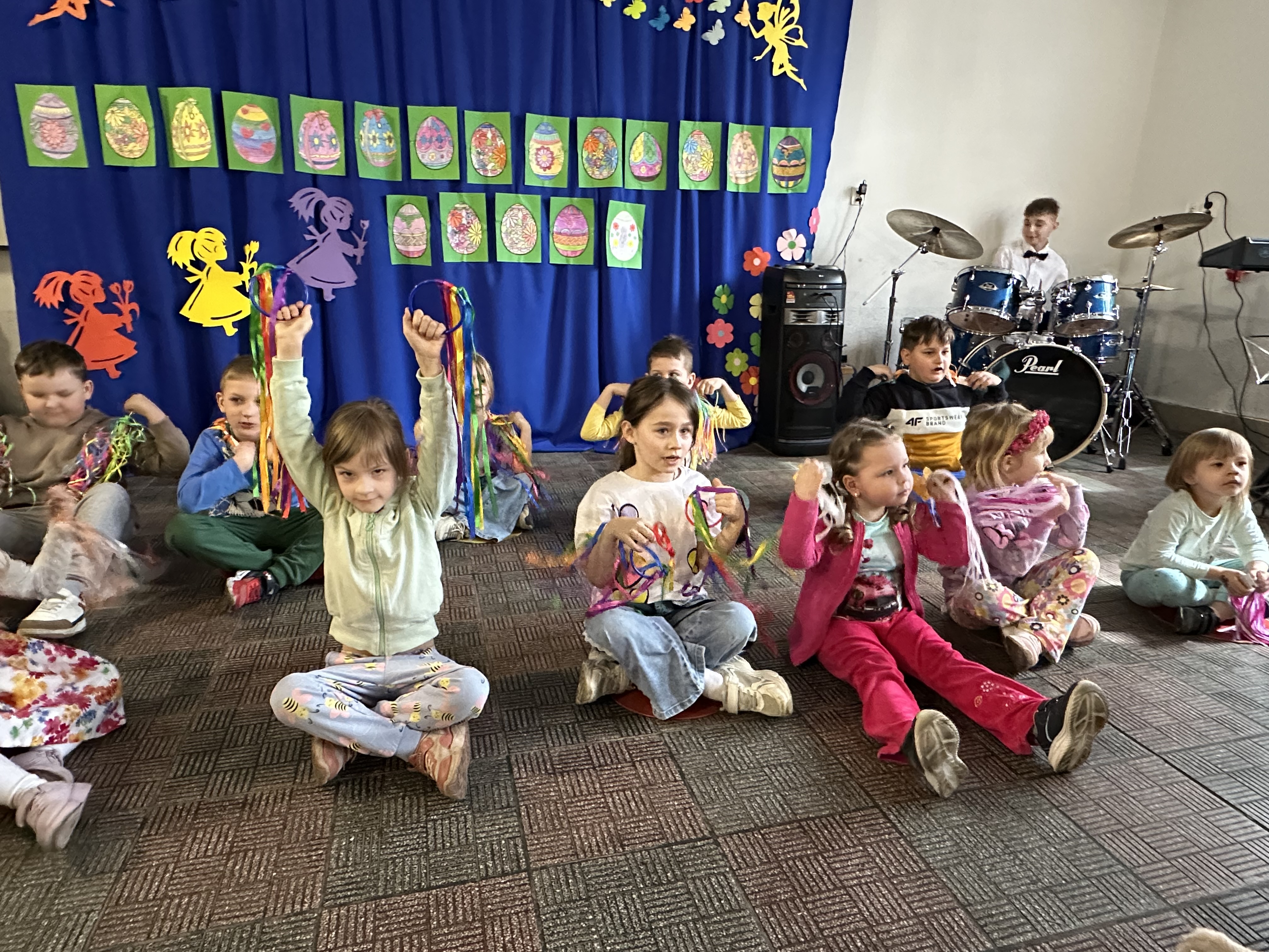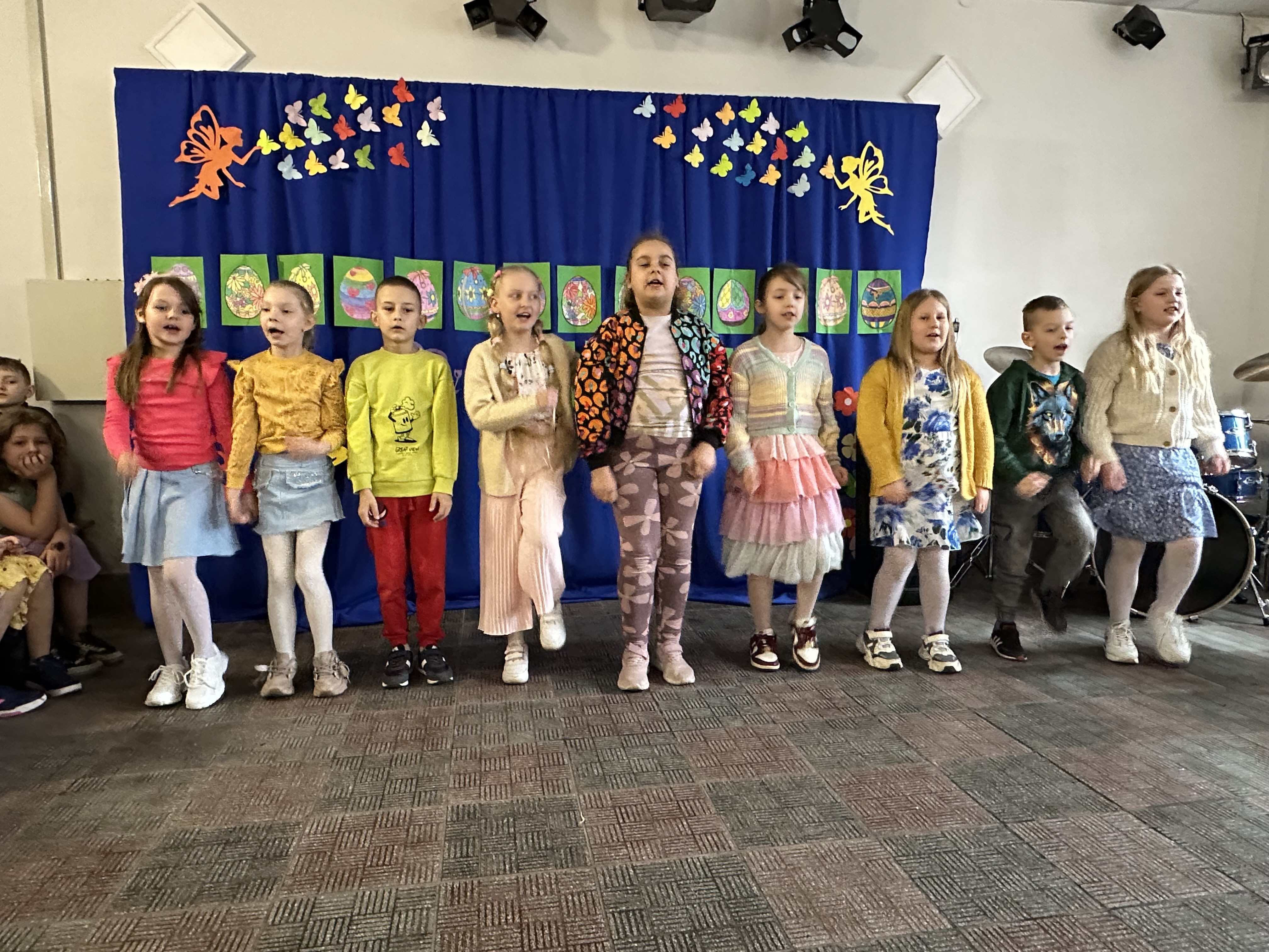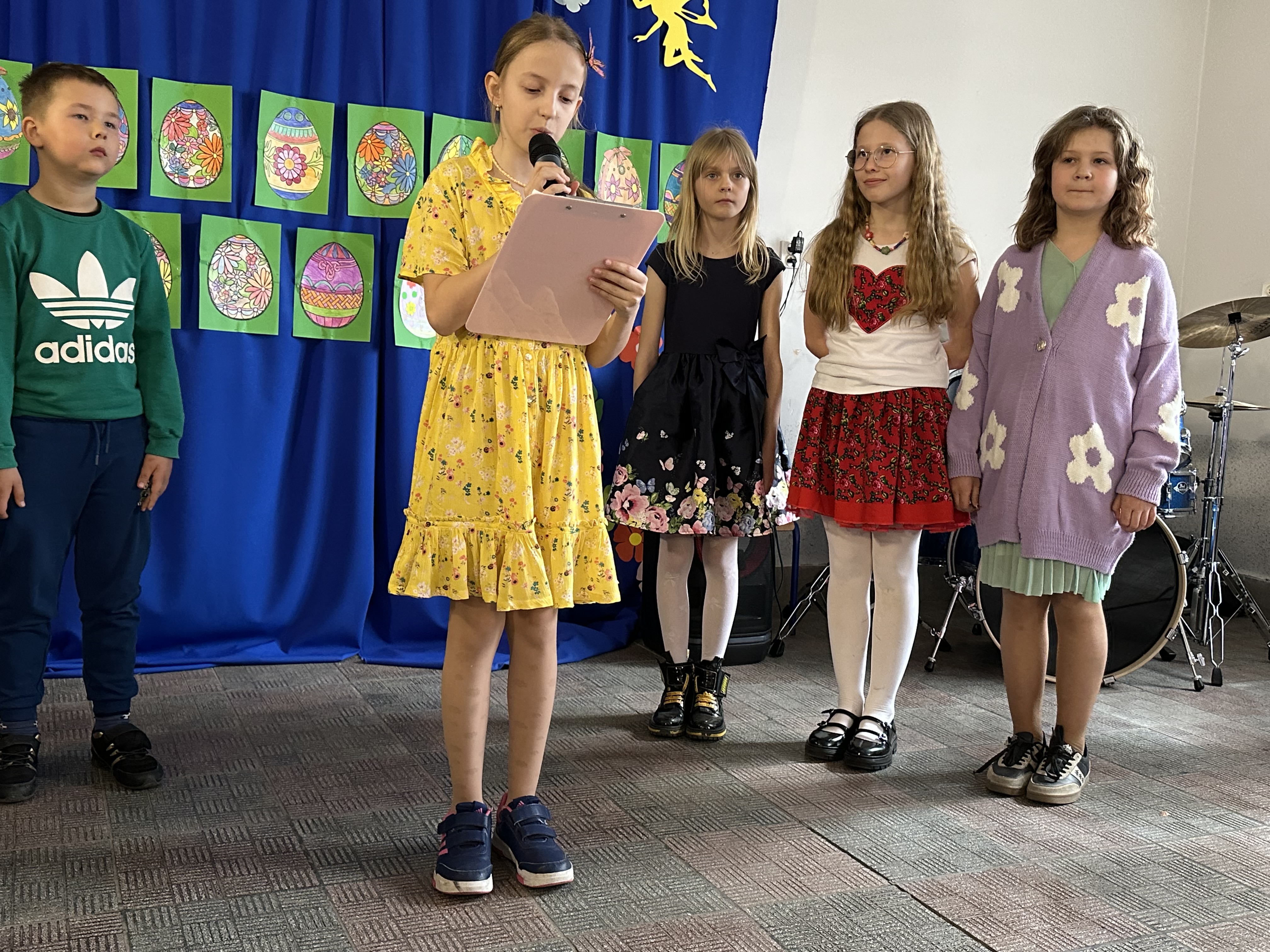 W naszej szkole odbył się wyjątkowy kiermasz wielkanocny, który zgromadził całą społeczność szkolną – uczniów, nauczycieli, rodziców, emerytowanych pracowników i przyjaciół szkoły, w tym także członków Klubu Seniora ,,Oświata”. Wydarzenie poprzedziły występy uczniów, którzy wprowadzili wszystkich w świąteczny nastrój, prezentując program artystyczny oraz składając serdeczne życzenia wielkanocne.