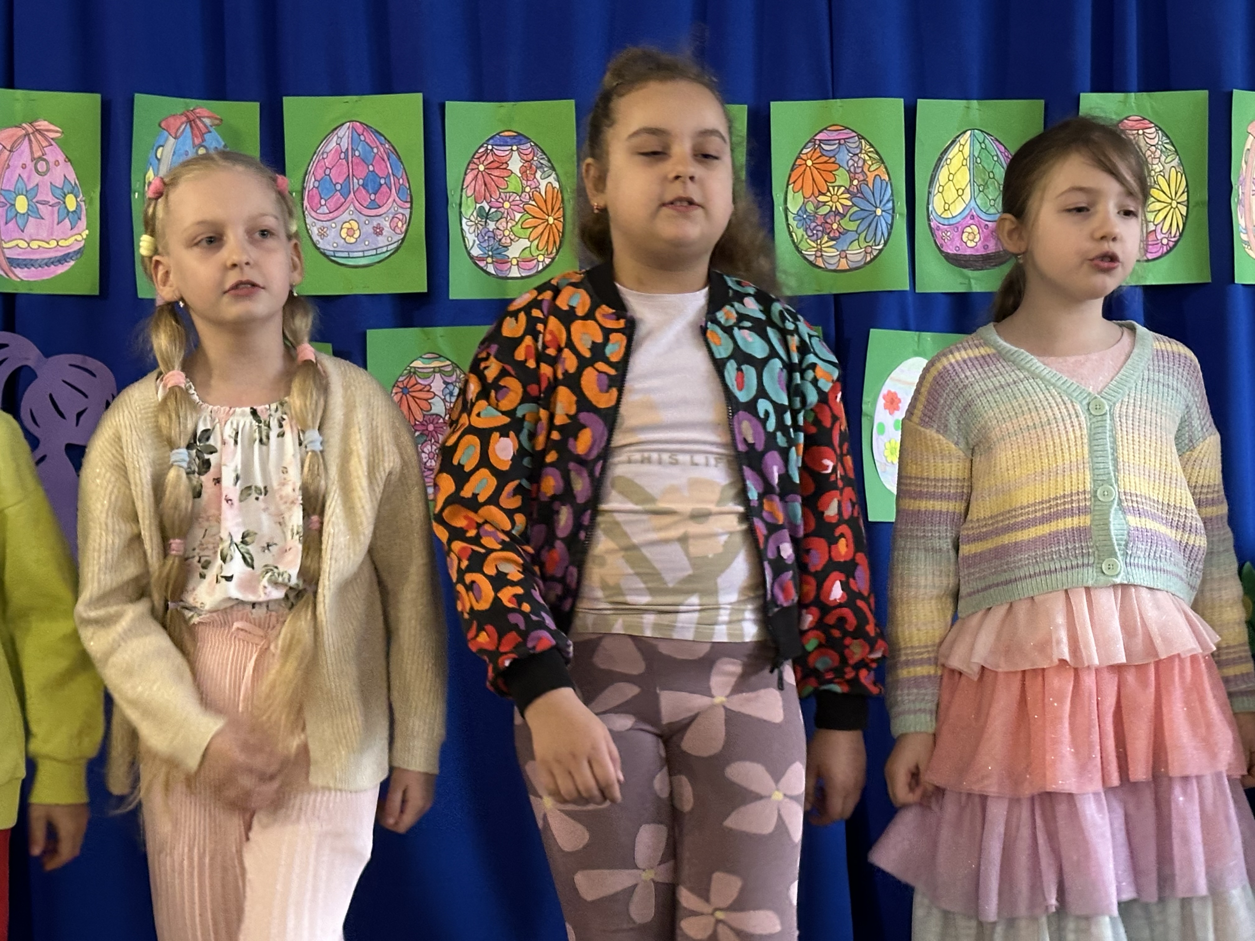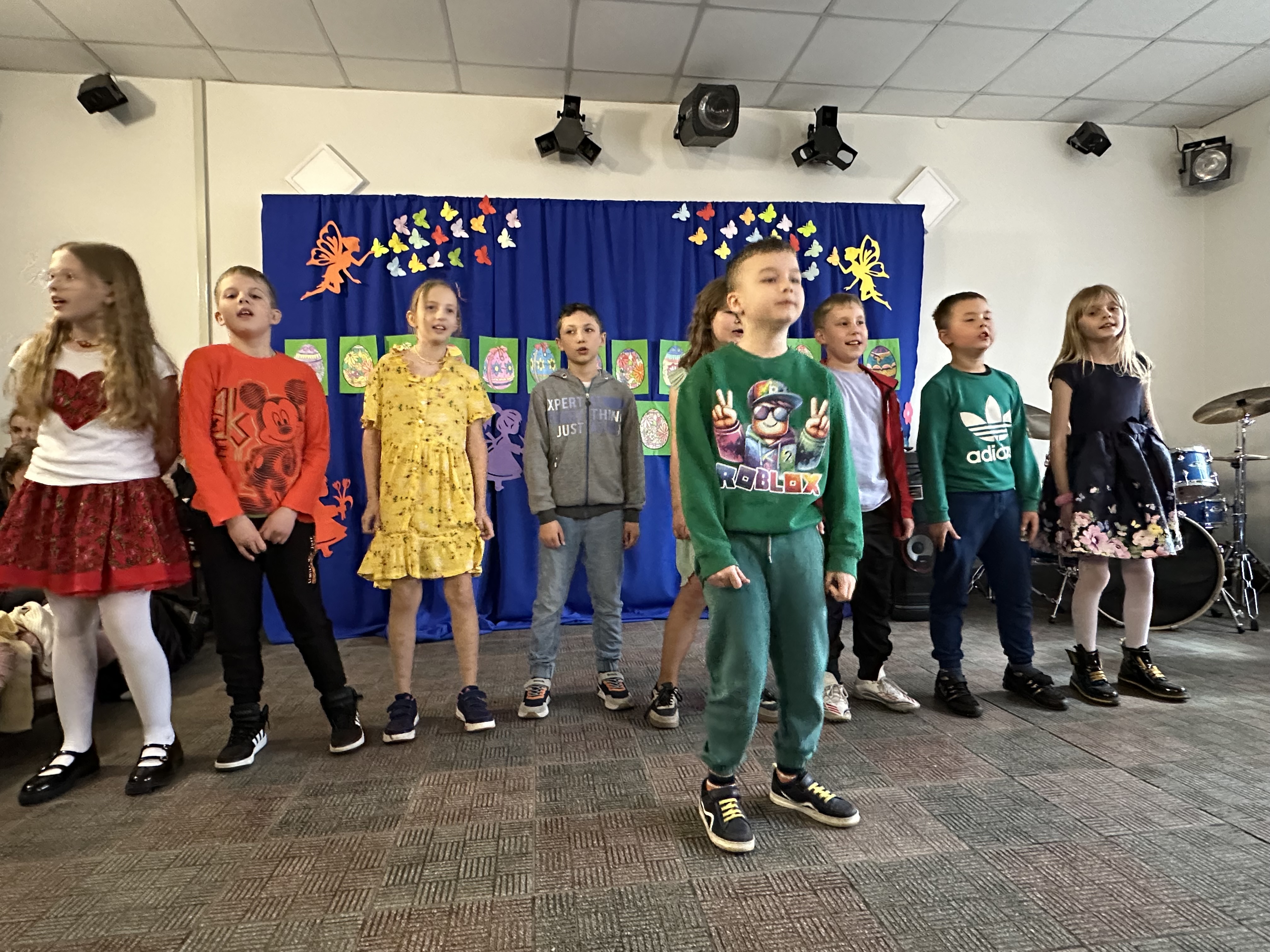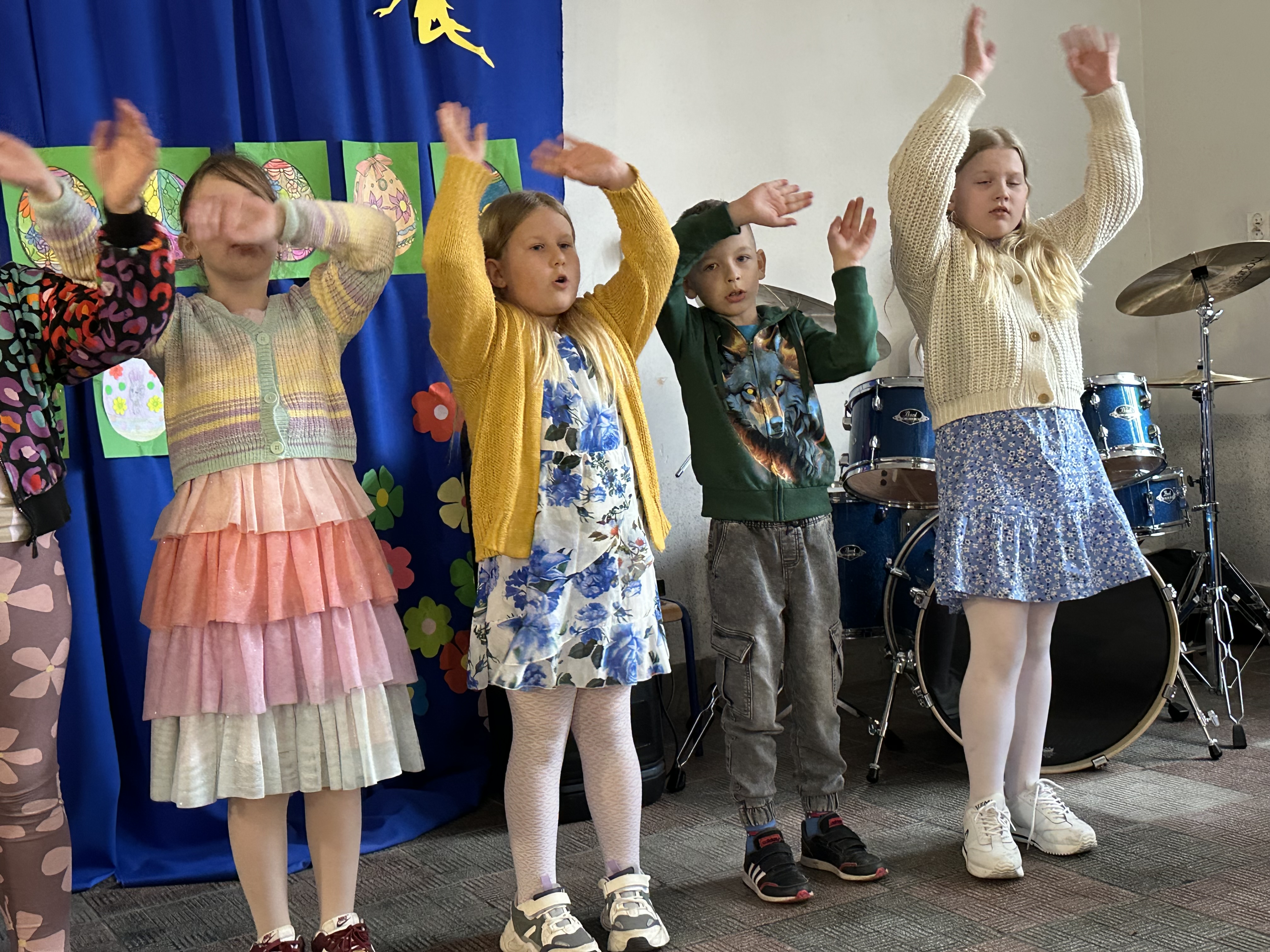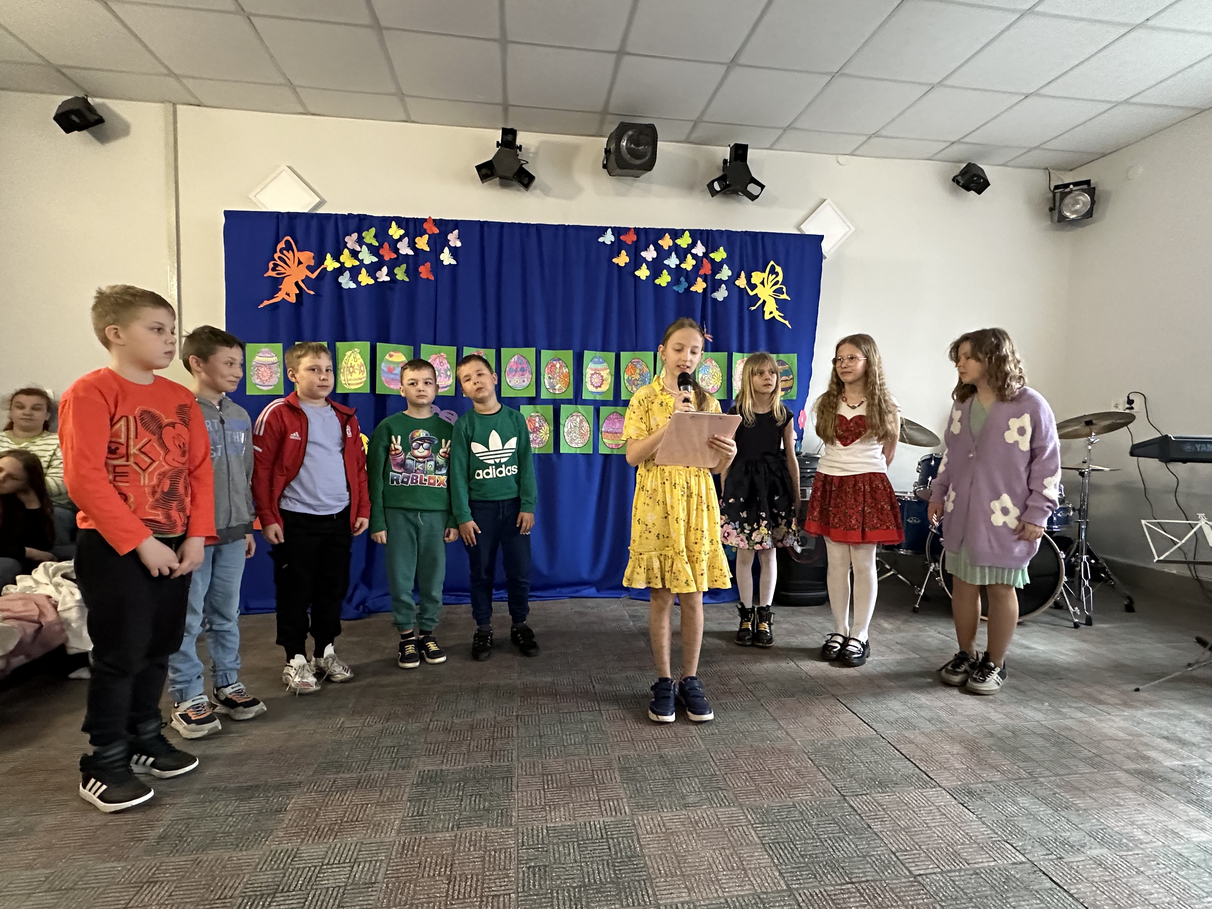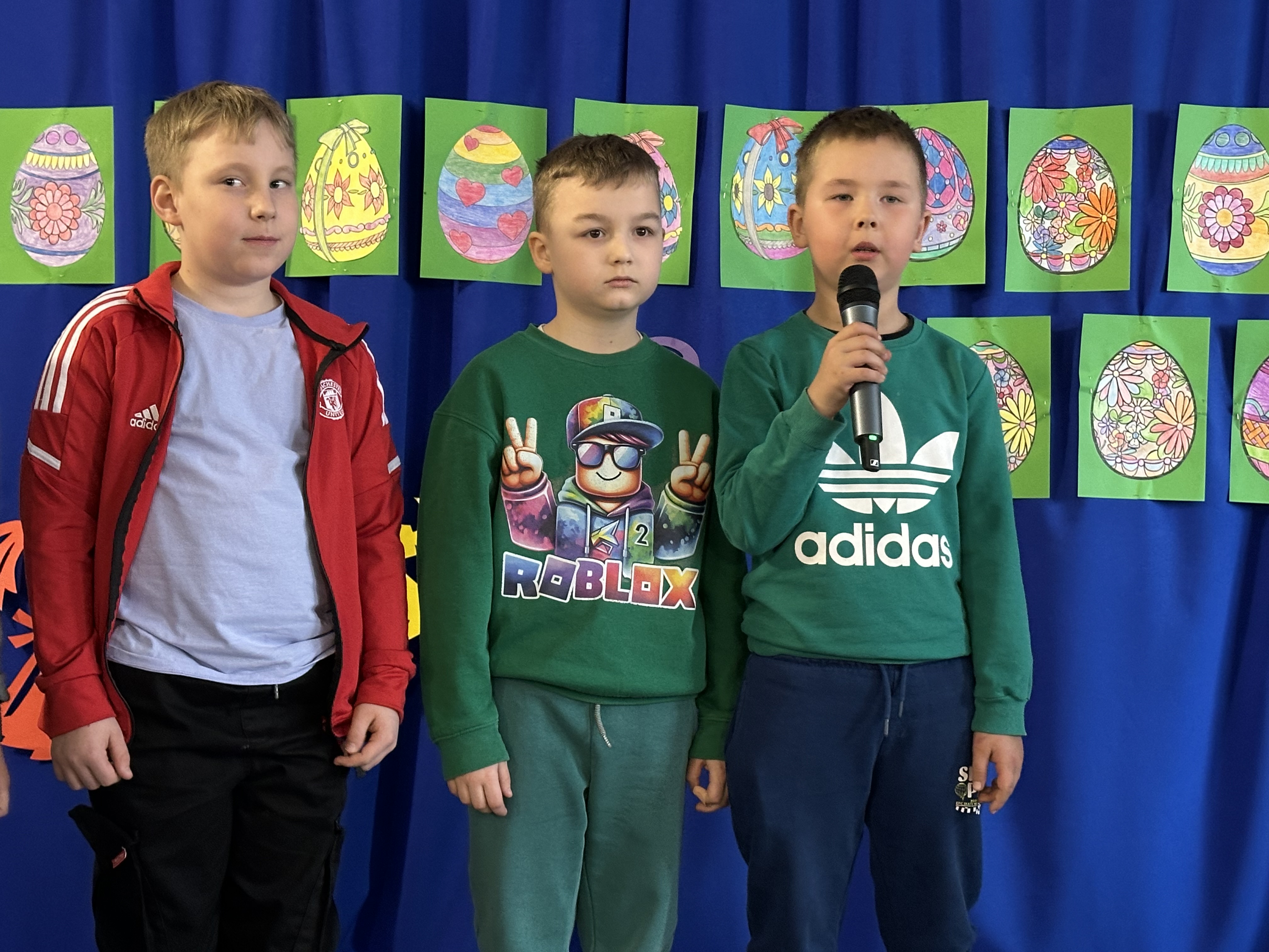 W naszej szkole odbył się wyjątkowy kiermasz wielkanocny, który zgromadził całą społeczność szkolną – uczniów, nauczycieli, rodziców, emerytowanych pracowników i przyjaciół szkoły, w tym także członków Klubu Seniora ,,Oświata”. Wydarzenie poprzedziły występy uczniów, którzy wprowadzili wszystkich w świąteczny nastrój, prezentując program artystyczny oraz składając serdeczne życzenia wielkanocne.