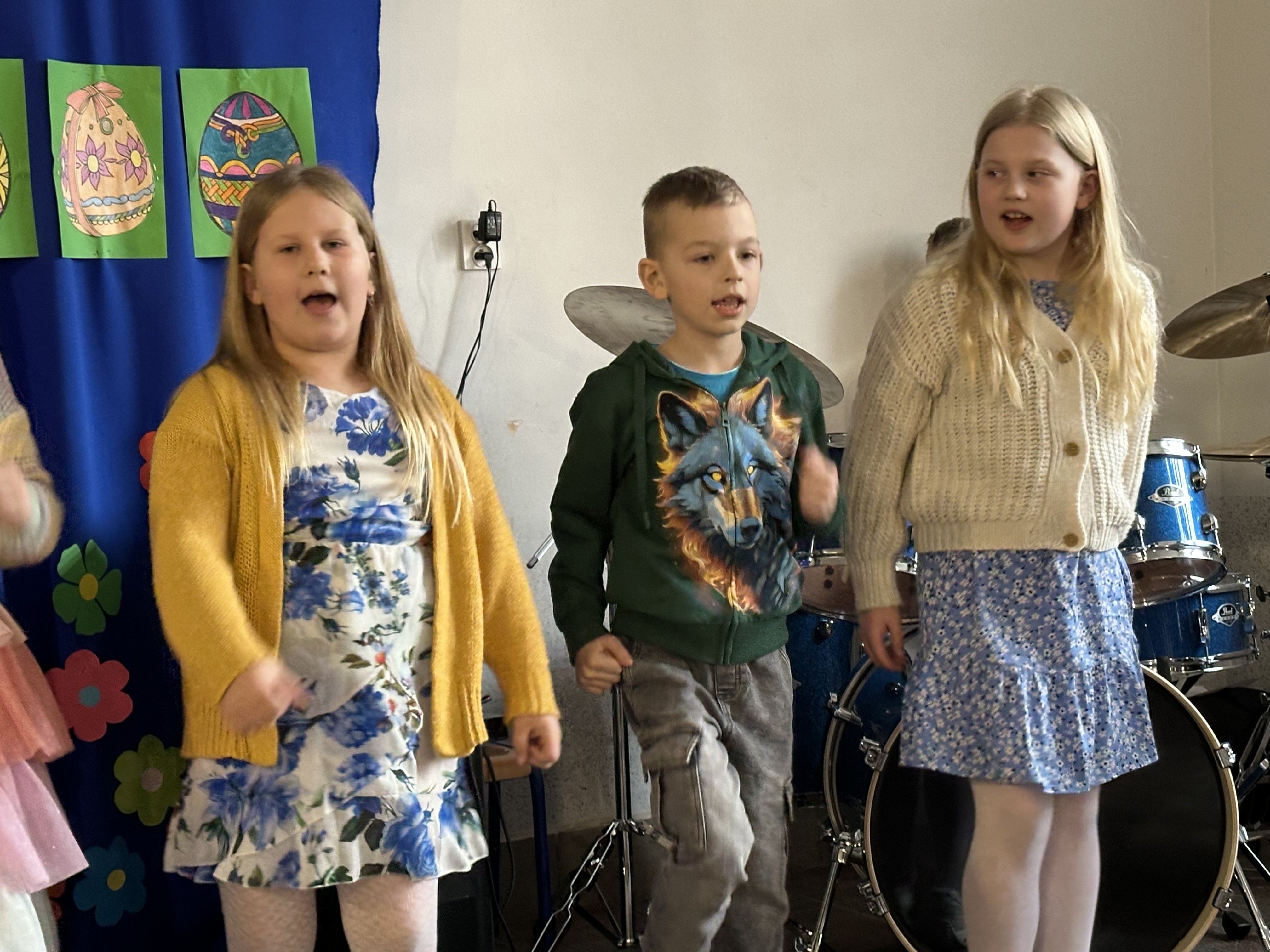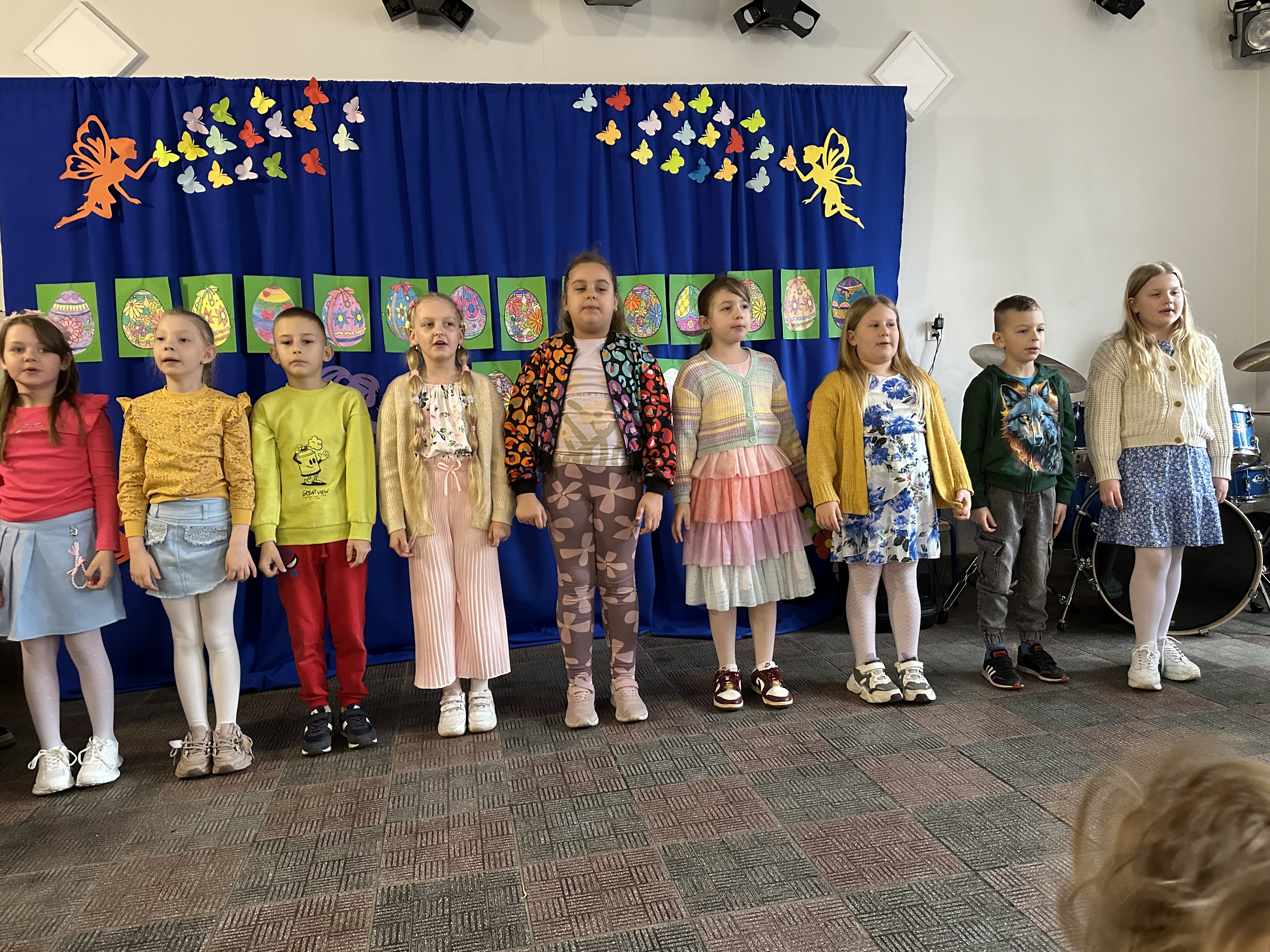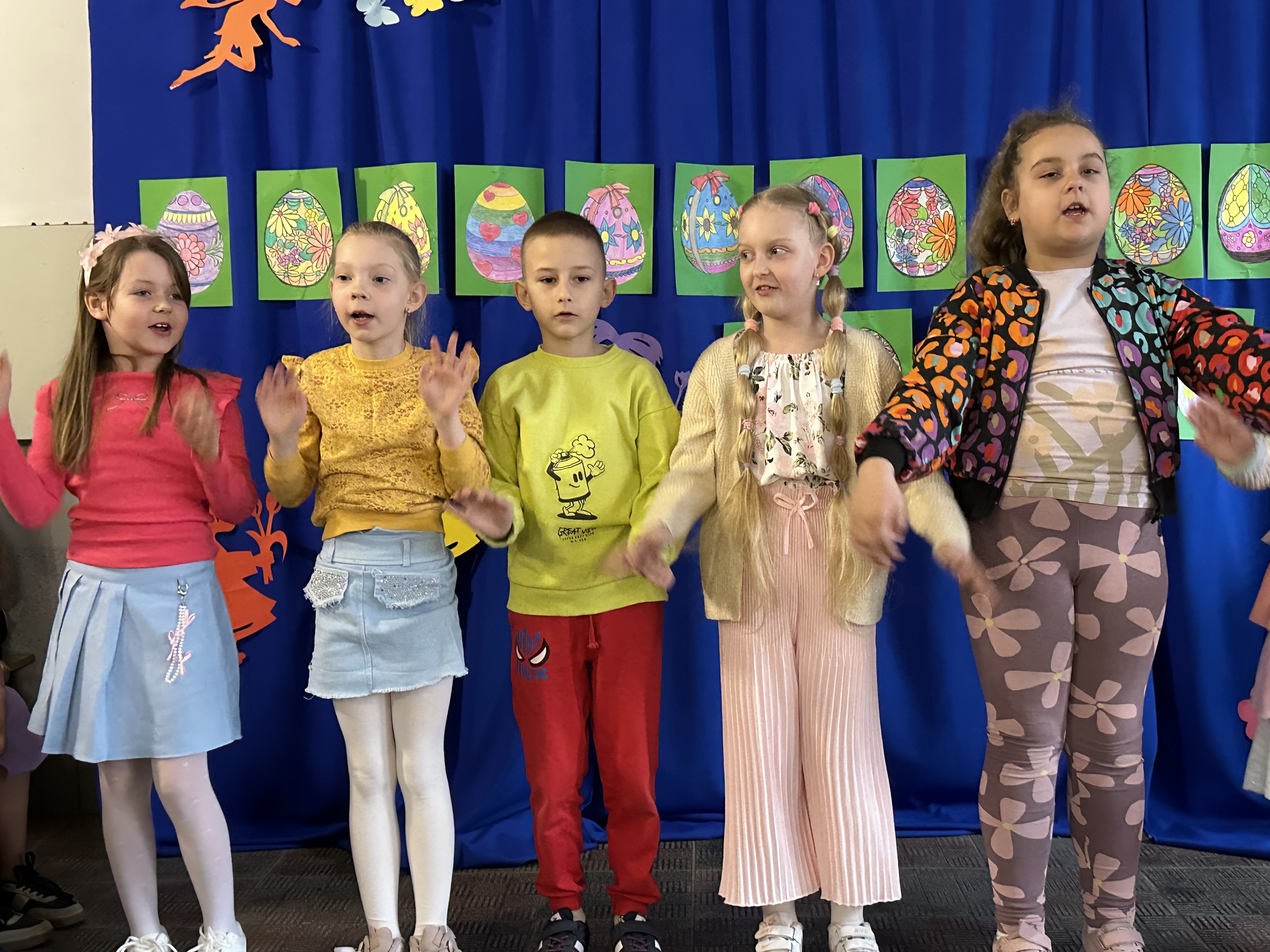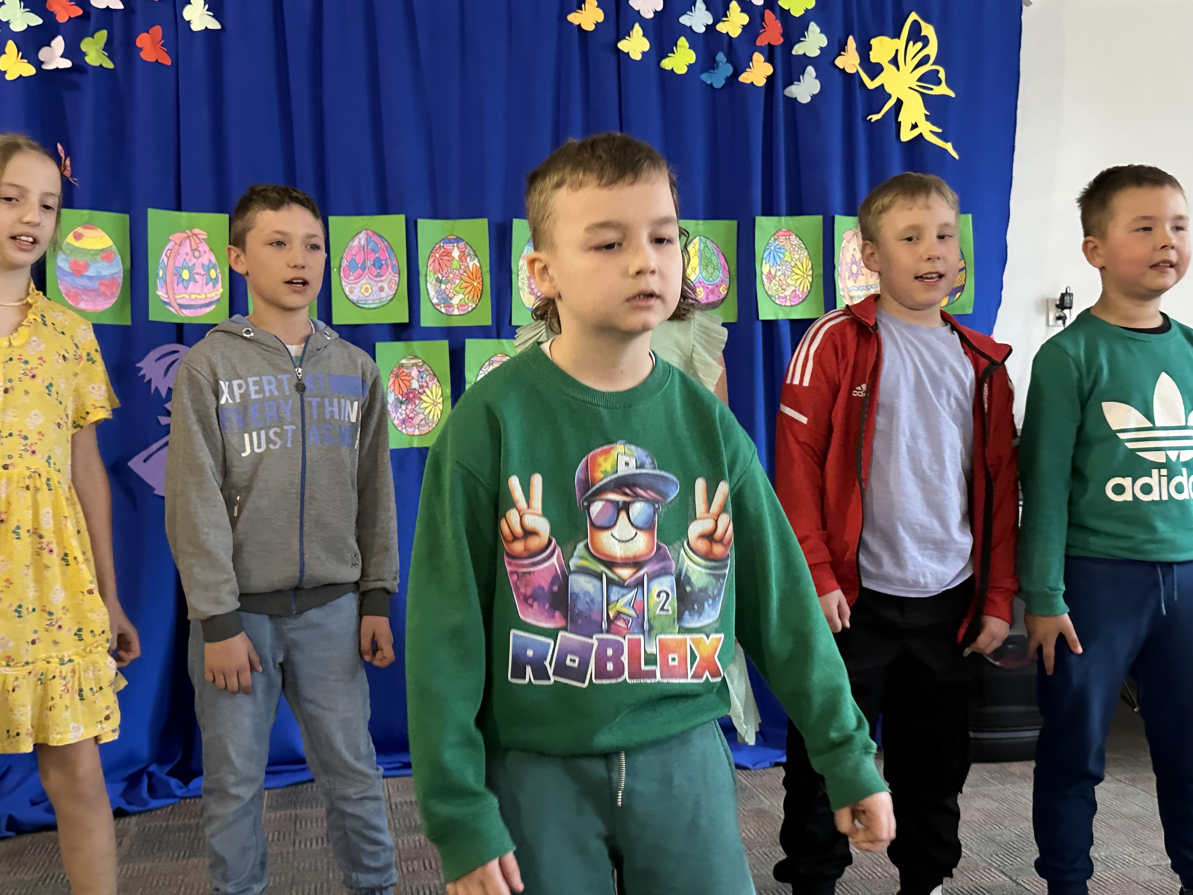 W naszej szkole odbył się wyjątkowy kiermasz wielkanocny, który zgromadził całą społeczność szkolną – uczniów, nauczycieli, rodziców, emerytowanych pracowników i przyjaciół szkoły, w tym także członków Klubu Seniora ,,Oświata”. Wydarzenie poprzedziły występy uczniów, którzy wprowadzili wszystkich w świąteczny nastrój, prezentując program artystyczny oraz składając serdeczne życzenia wielkanocne.