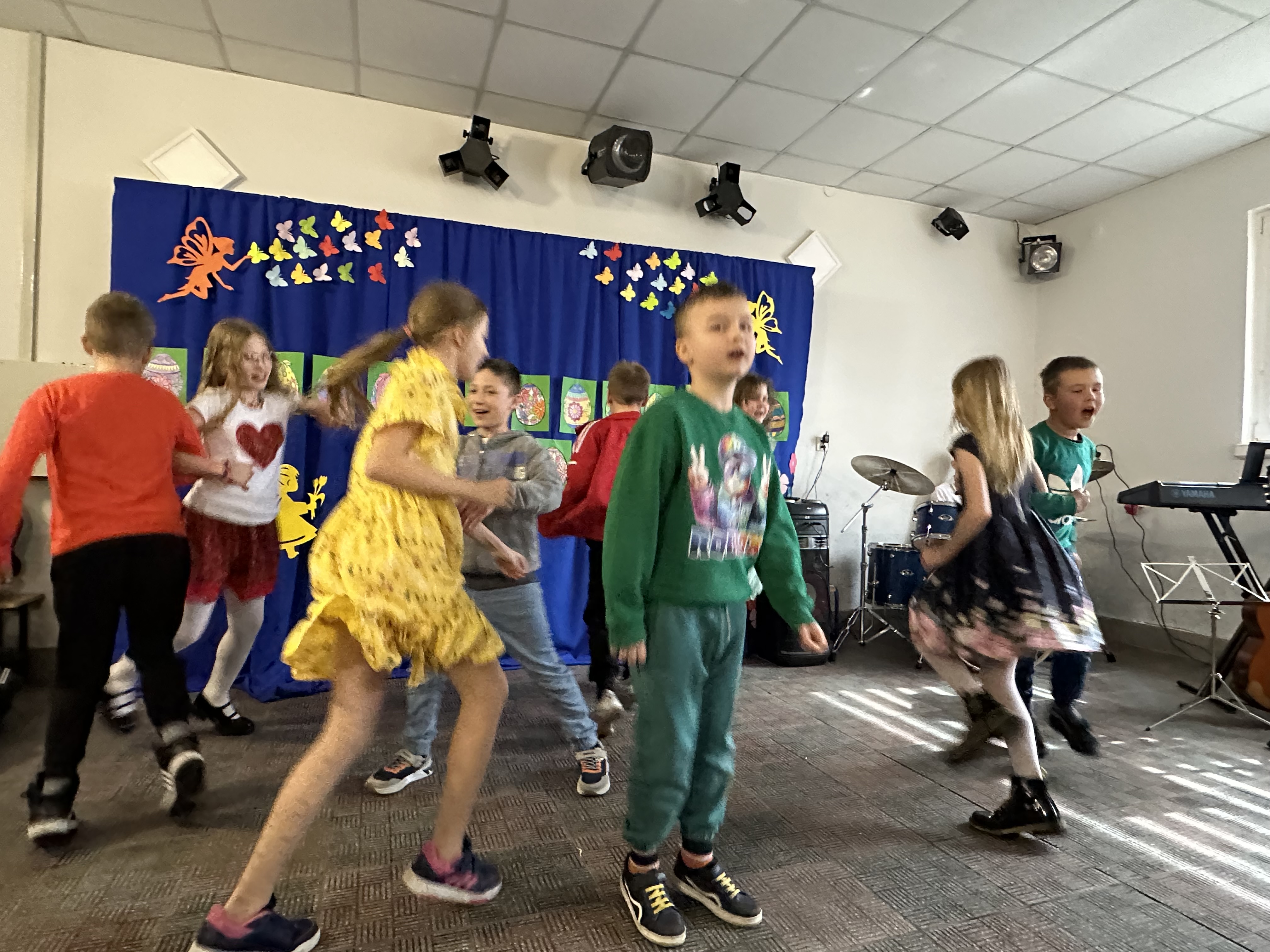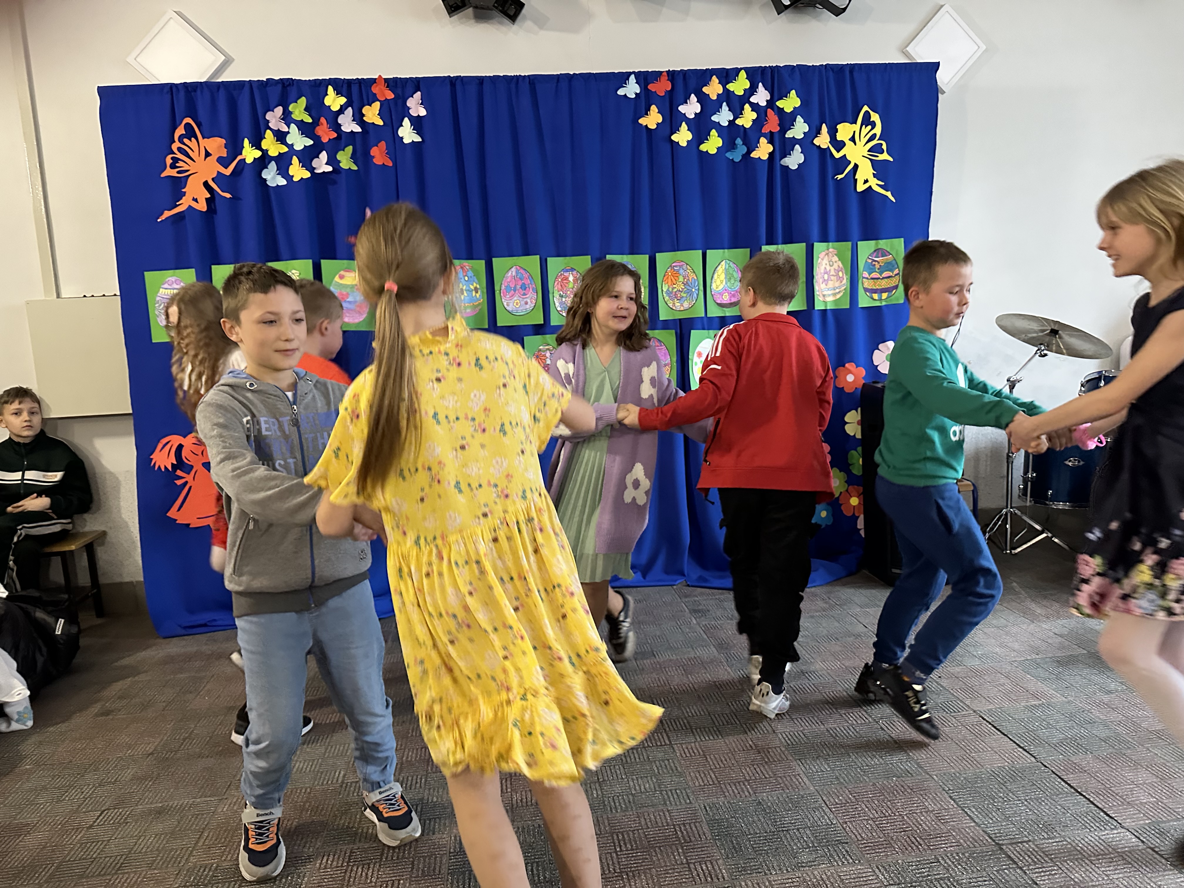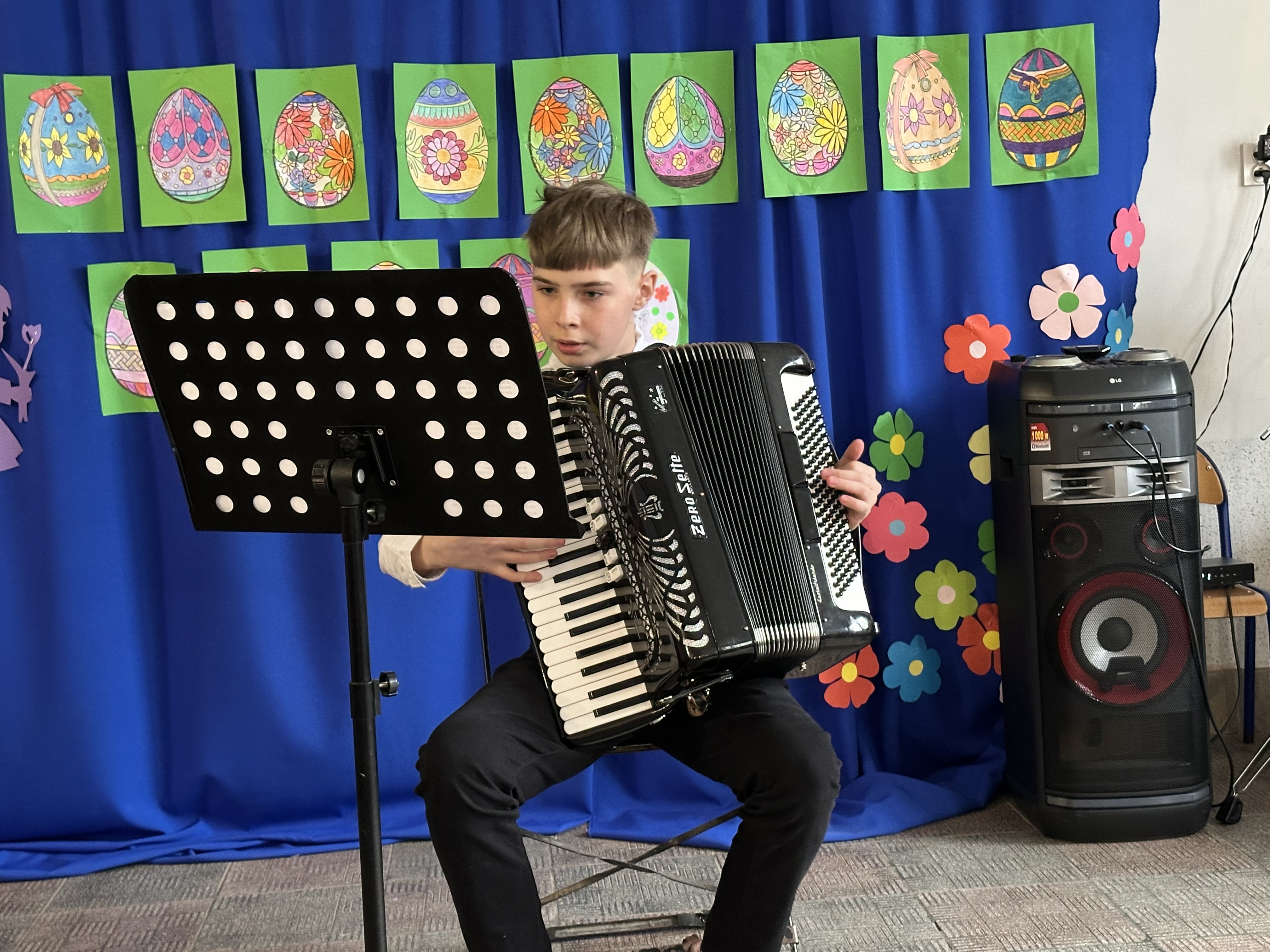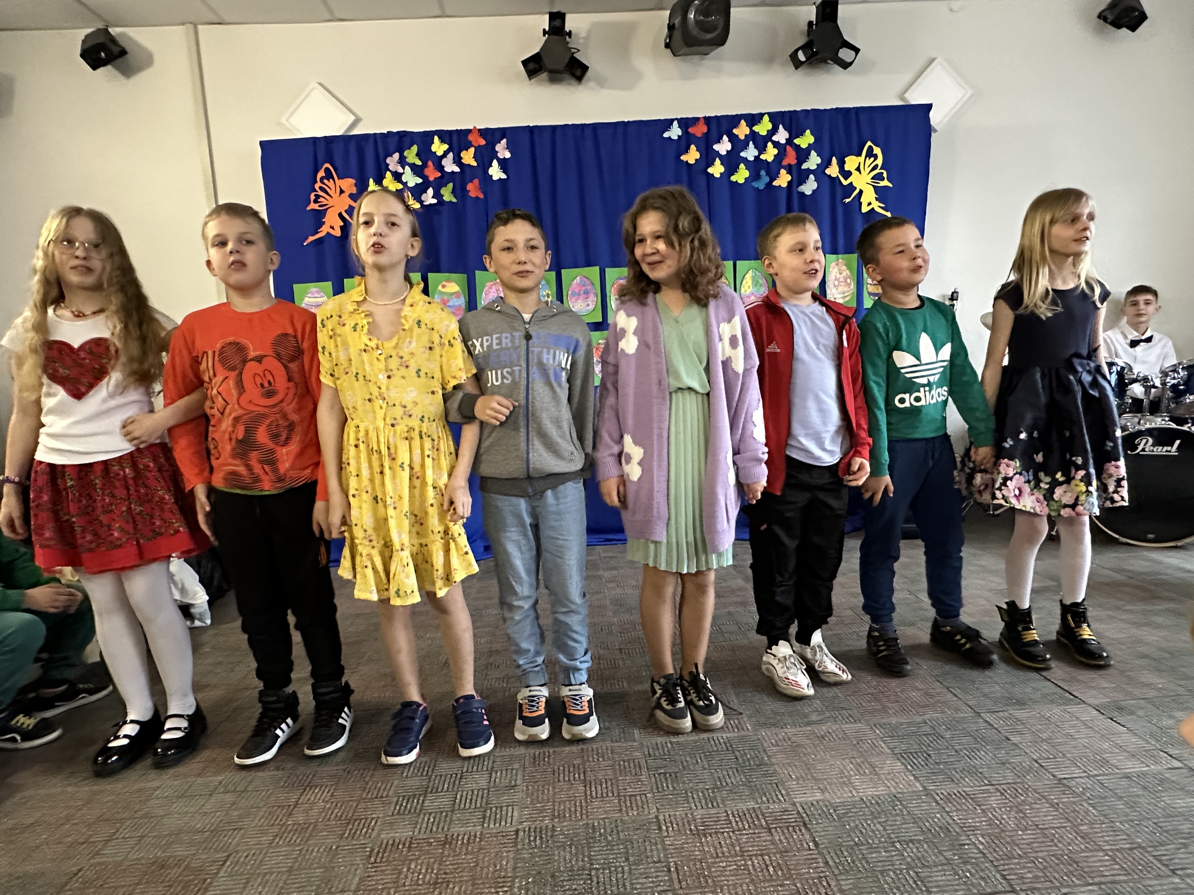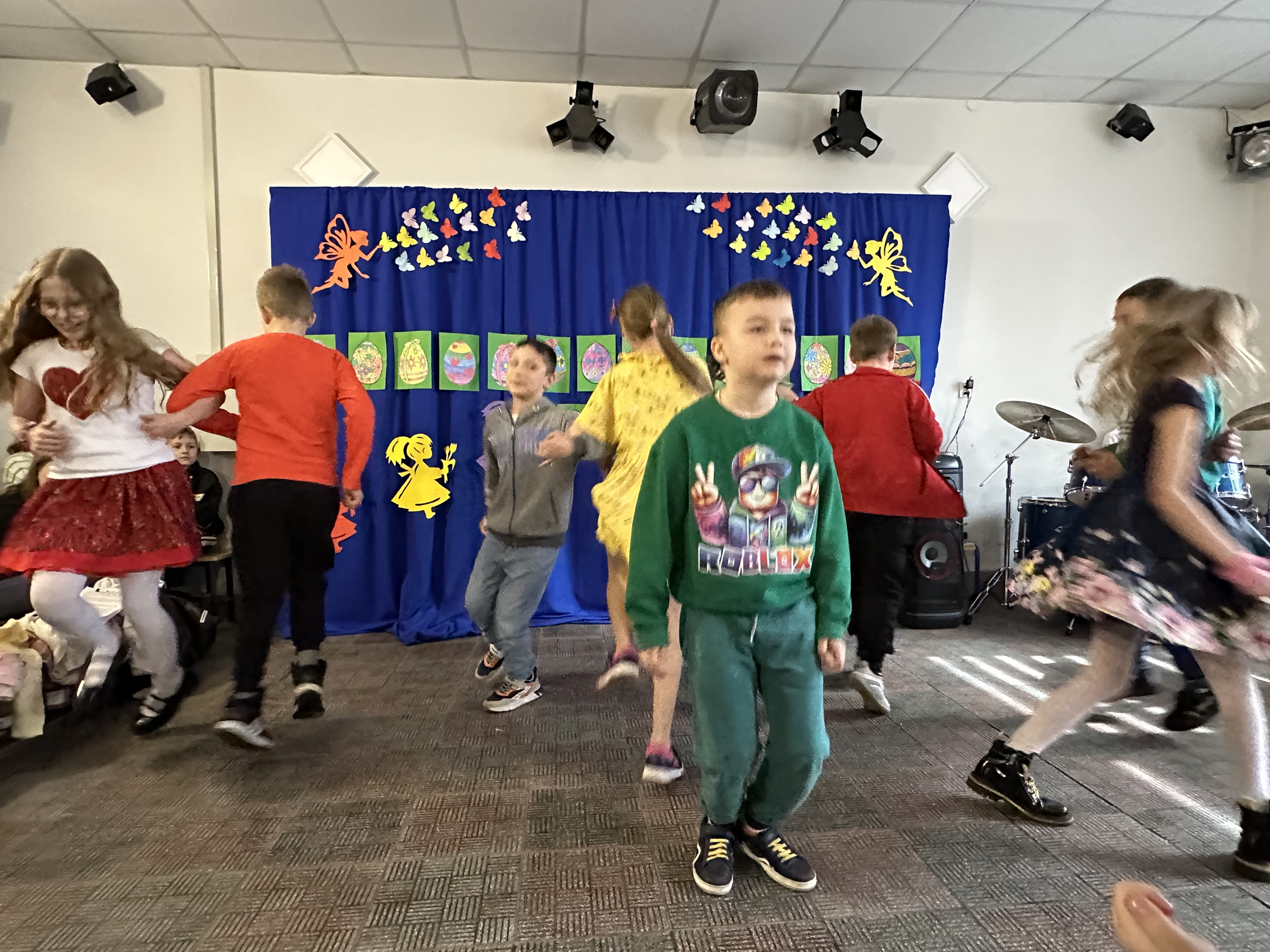 W naszej szkole odbył się wyjątkowy kiermasz wielkanocny, który zgromadził całą społeczność szkolną – uczniów, nauczycieli, rodziców, emerytowanych pracowników i przyjaciół szkoły, w tym także członków Klubu Seniora ,,Oświata”. Wydarzenie poprzedziły występy uczniów, którzy wprowadzili wszystkich w świąteczny nastrój, prezentując program artystyczny oraz składając serdeczne życzenia wielkanocne.