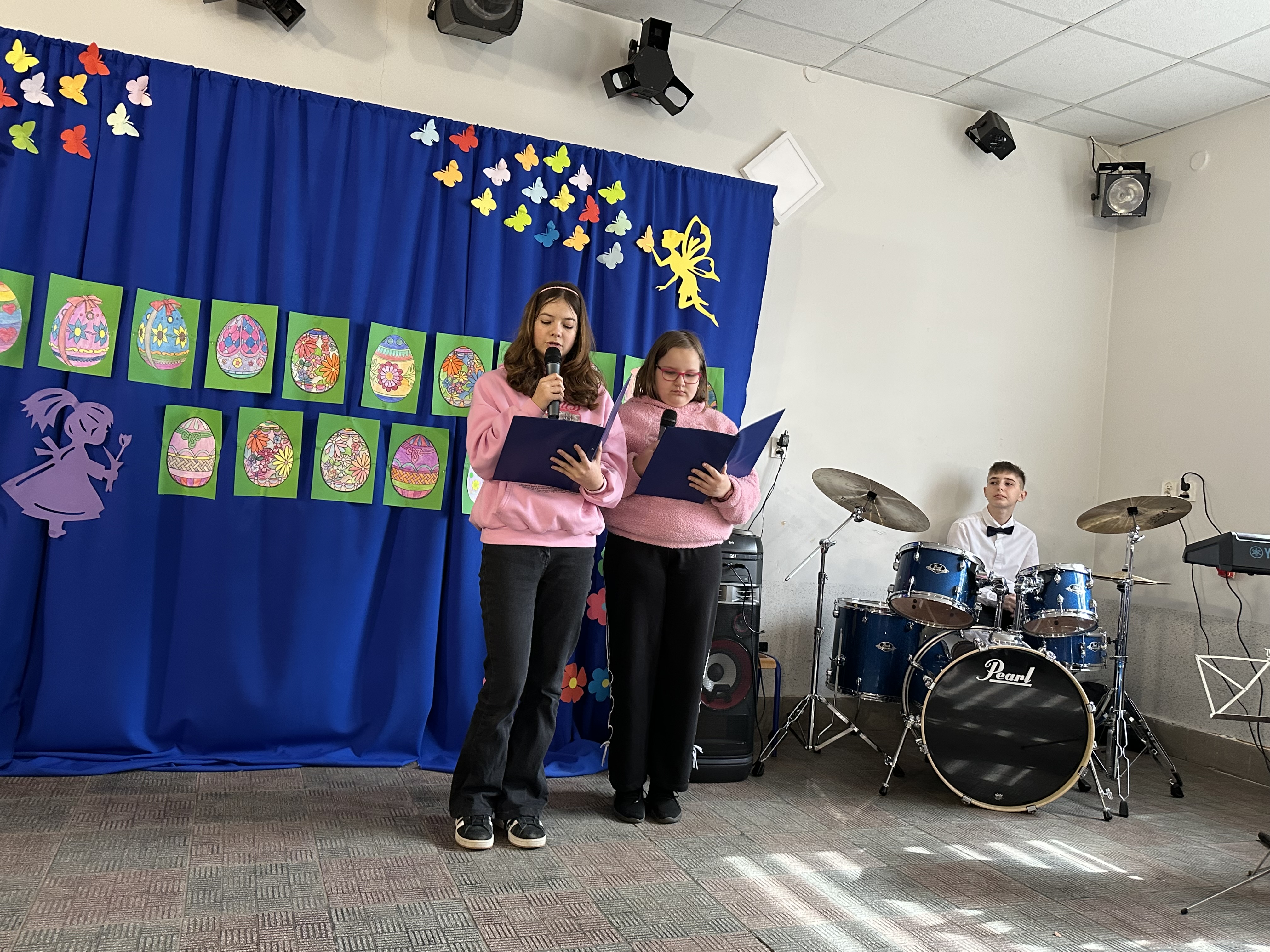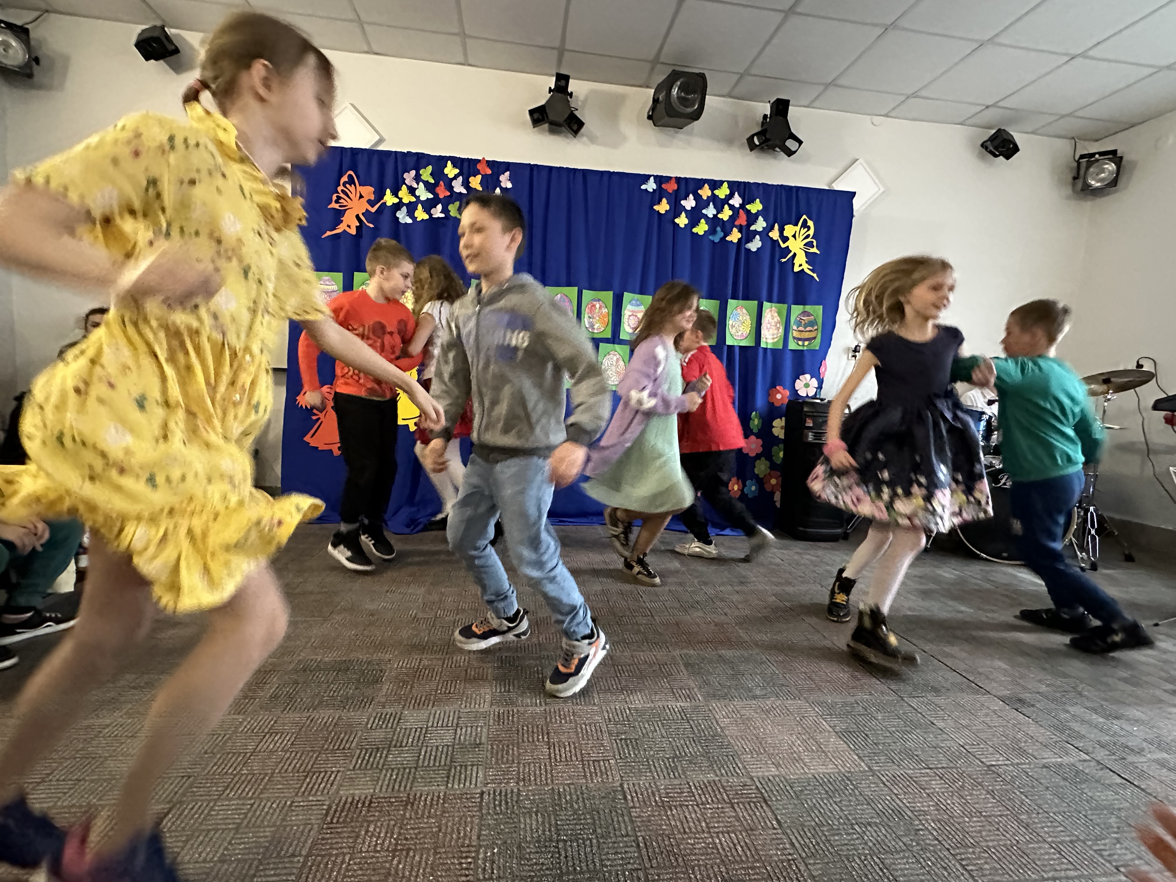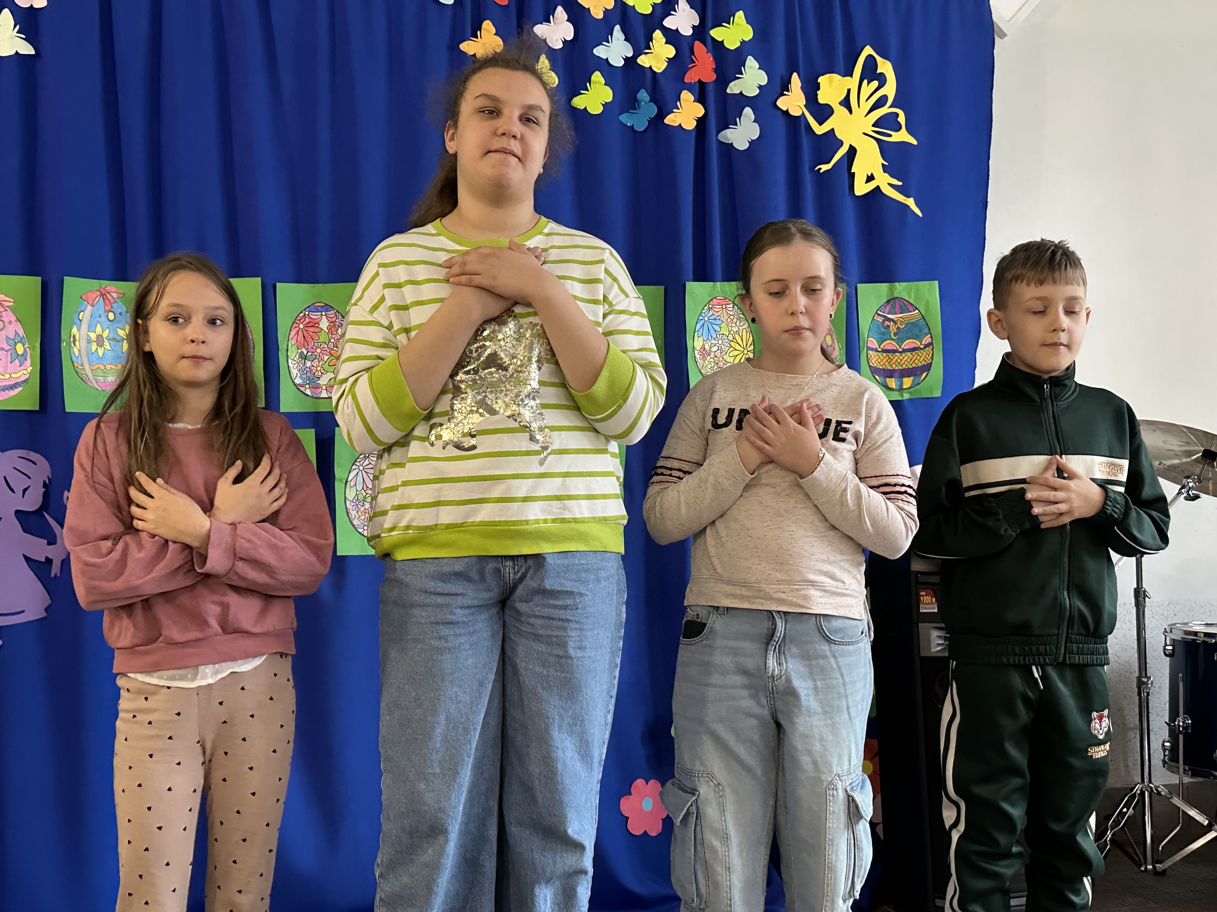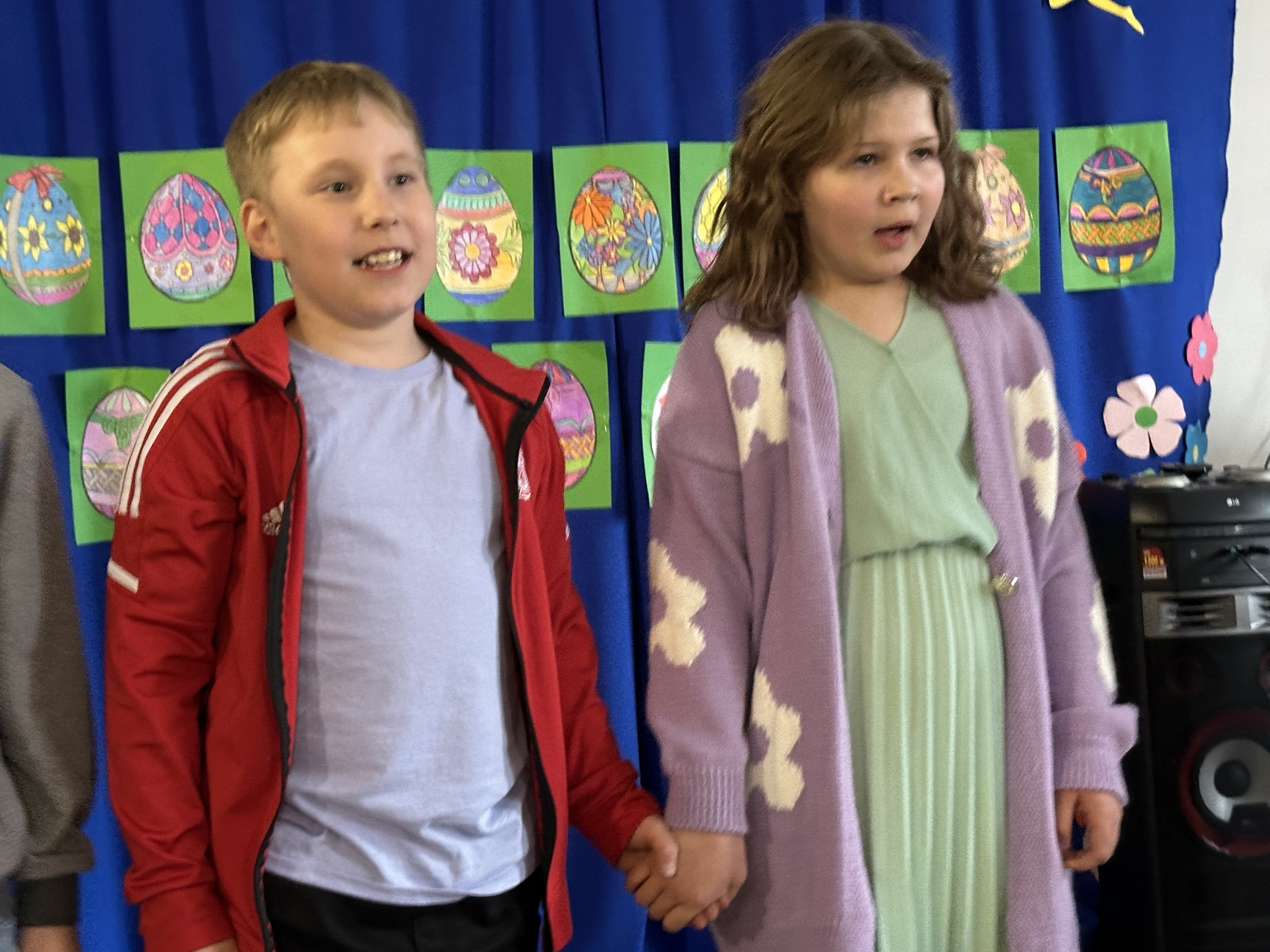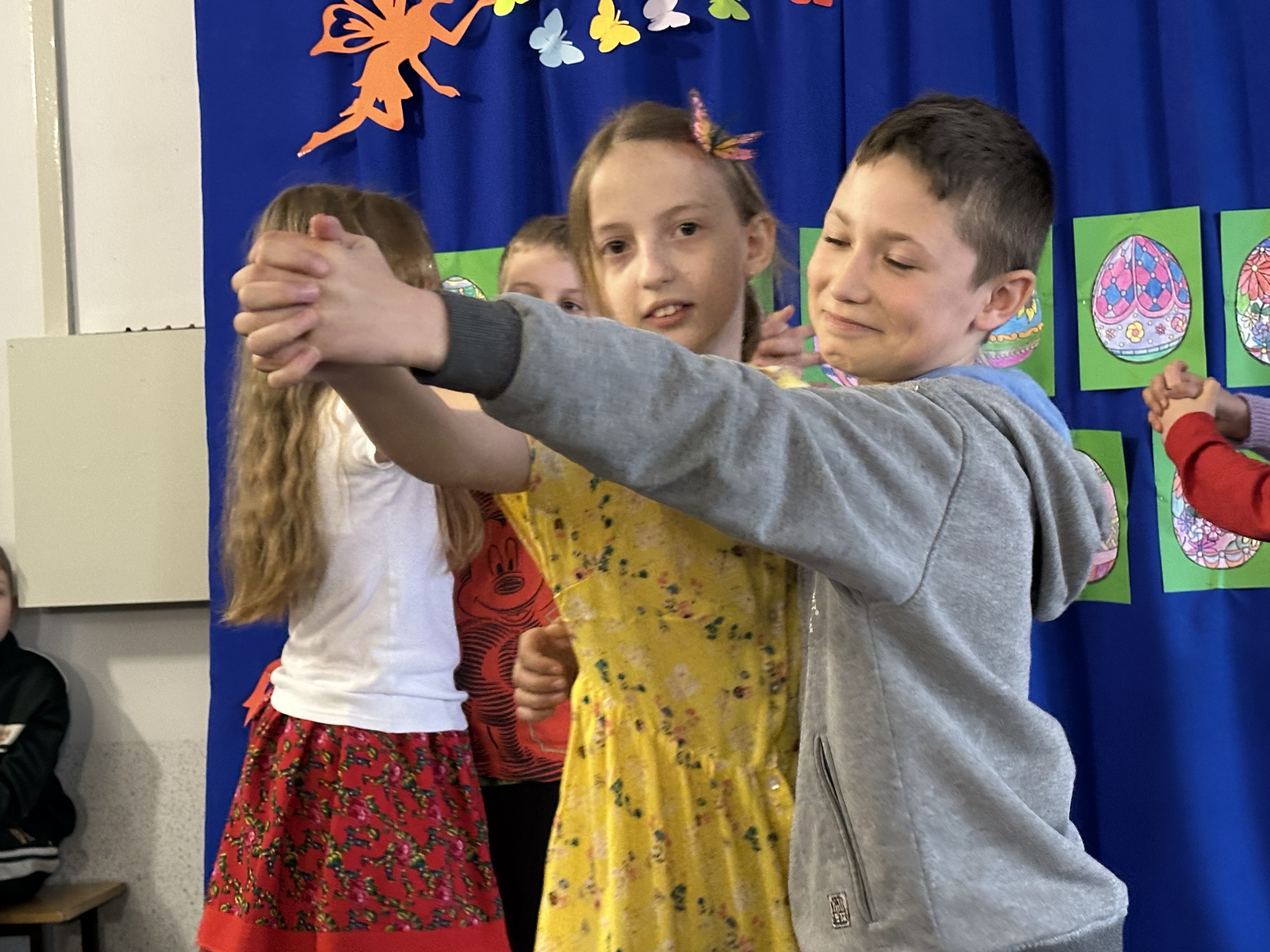 W naszej szkole odbył się wyjątkowy kiermasz wielkanocny, który zgromadził całą społeczność szkolną – uczniów, nauczycieli, rodziców, emerytowanych pracowników i przyjaciół szkoły, w tym także członków Klubu Seniora ,,Oświata”. Wydarzenie poprzedziły występy uczniów, którzy wprowadzili wszystkich w świąteczny nastrój, prezentując program artystyczny oraz składając serdeczne życzenia wielkanocne.
