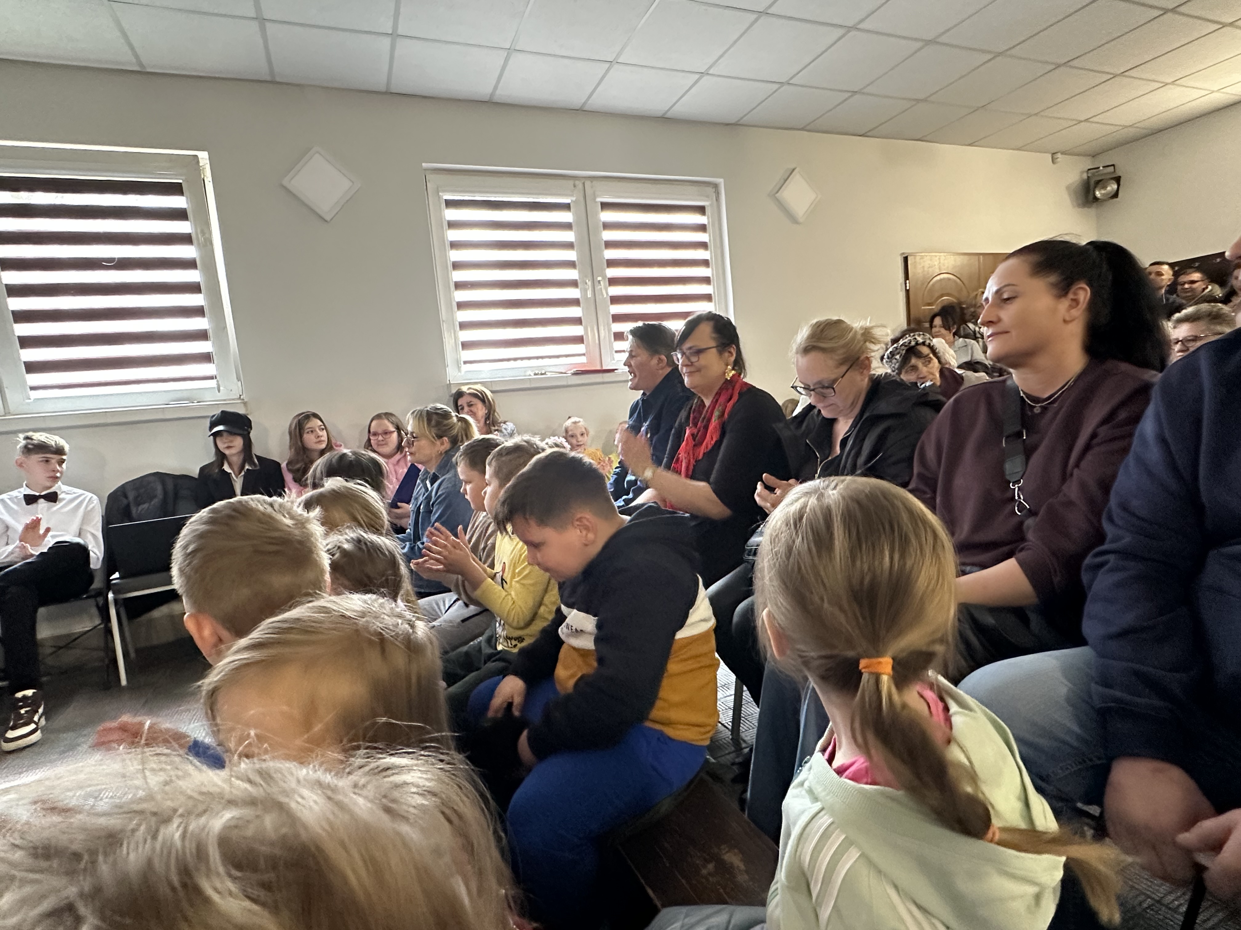 Nie zabrakło również dodatkowych atrakcji. Wielu emocji dostarczyła loteria fantowa, w której każdy los wygrywał, a uczestnicy mogli zdobyć ciekawe upominki. Dużym zainteresowaniem cieszyła się także specjalnie przygotowana ścianka do zdjęć, przy której uczniowie, rodzice i goście chętnie robili pamiątkowe fotografie.