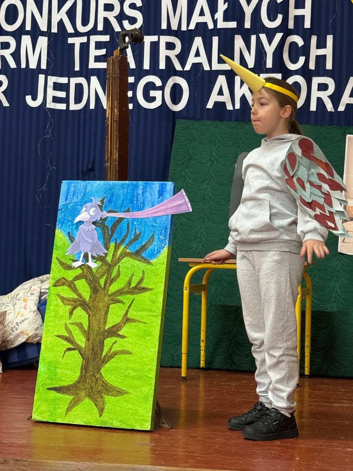 28 marca 2026 roku w Polanowicach odbył się XVIII GMINNY KONKURS MAŁYCH FORM TEATRALNYCH (TEATR JEDNEGO AKTORA). Jedyna reprezentantka naszej szkoły – UlkaSzarowskazklasyI –ej wswojej kategorii wiekowejwywalczyła w nim wysokie drugie miejsce. Jej piękna i dojrzała recytacja fragmentów utworu Hanny Łochockiej ,, Wróbelek Elemelek i kartofelek” zachwyciła jury. Jesteśmy dumni nie tylko z sukcesu, ale również z determinacji i odwagi, jaką pokazała na scenie. Cieszymy się, że mamy taką zdolną i odważną artystkę w naszym gronie. Wielkie brawa i gratulacje dla Uli za świetne reprezentowanie naszej placówki!