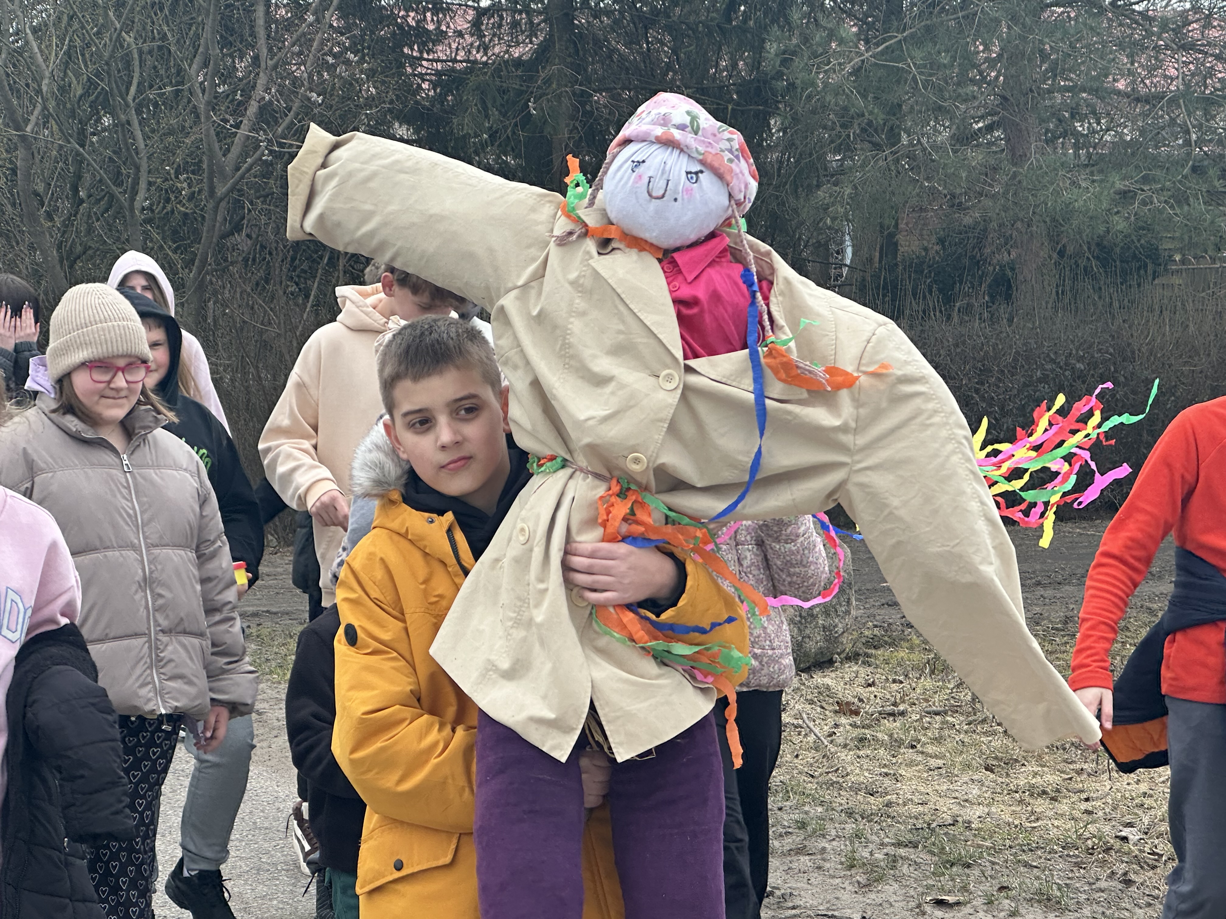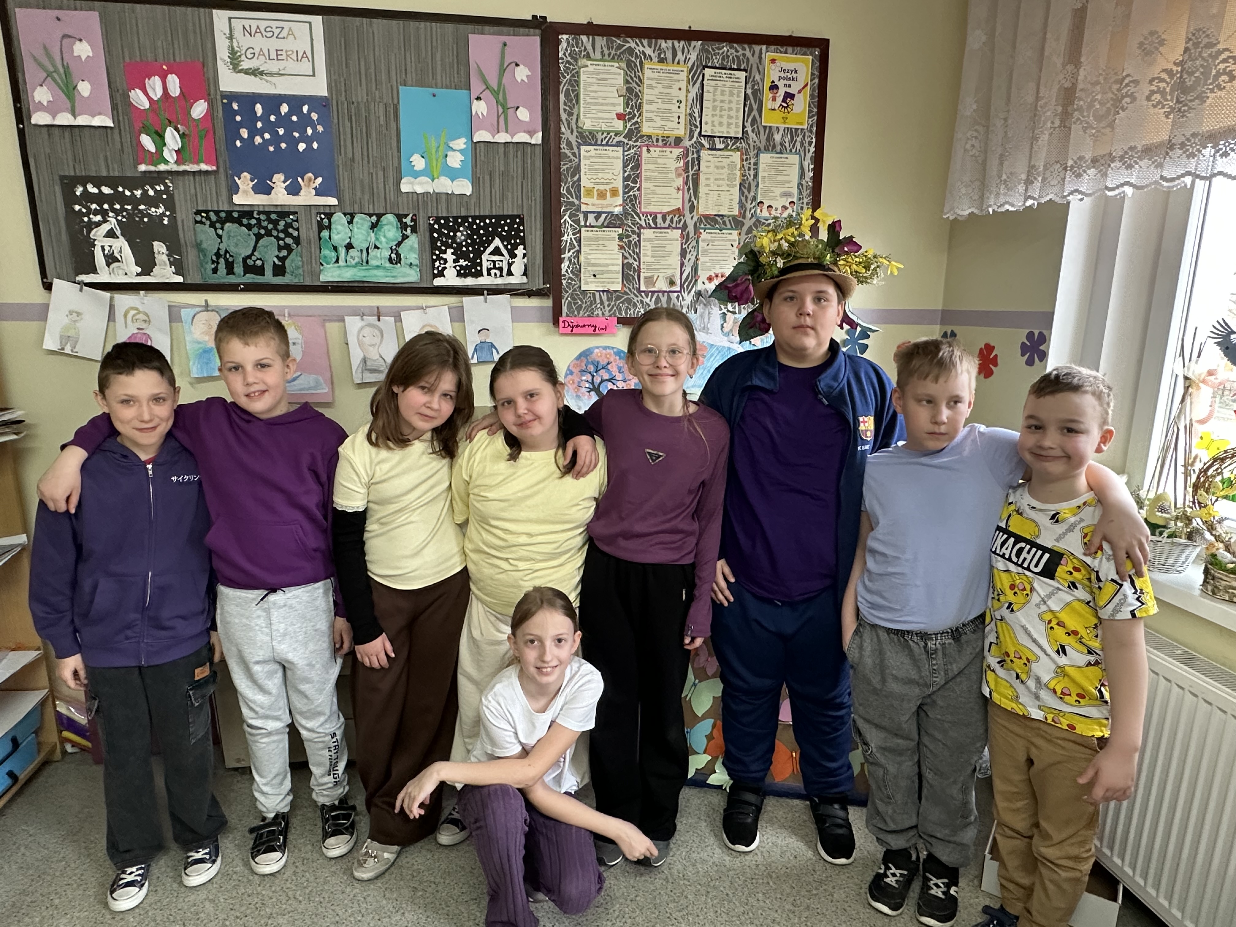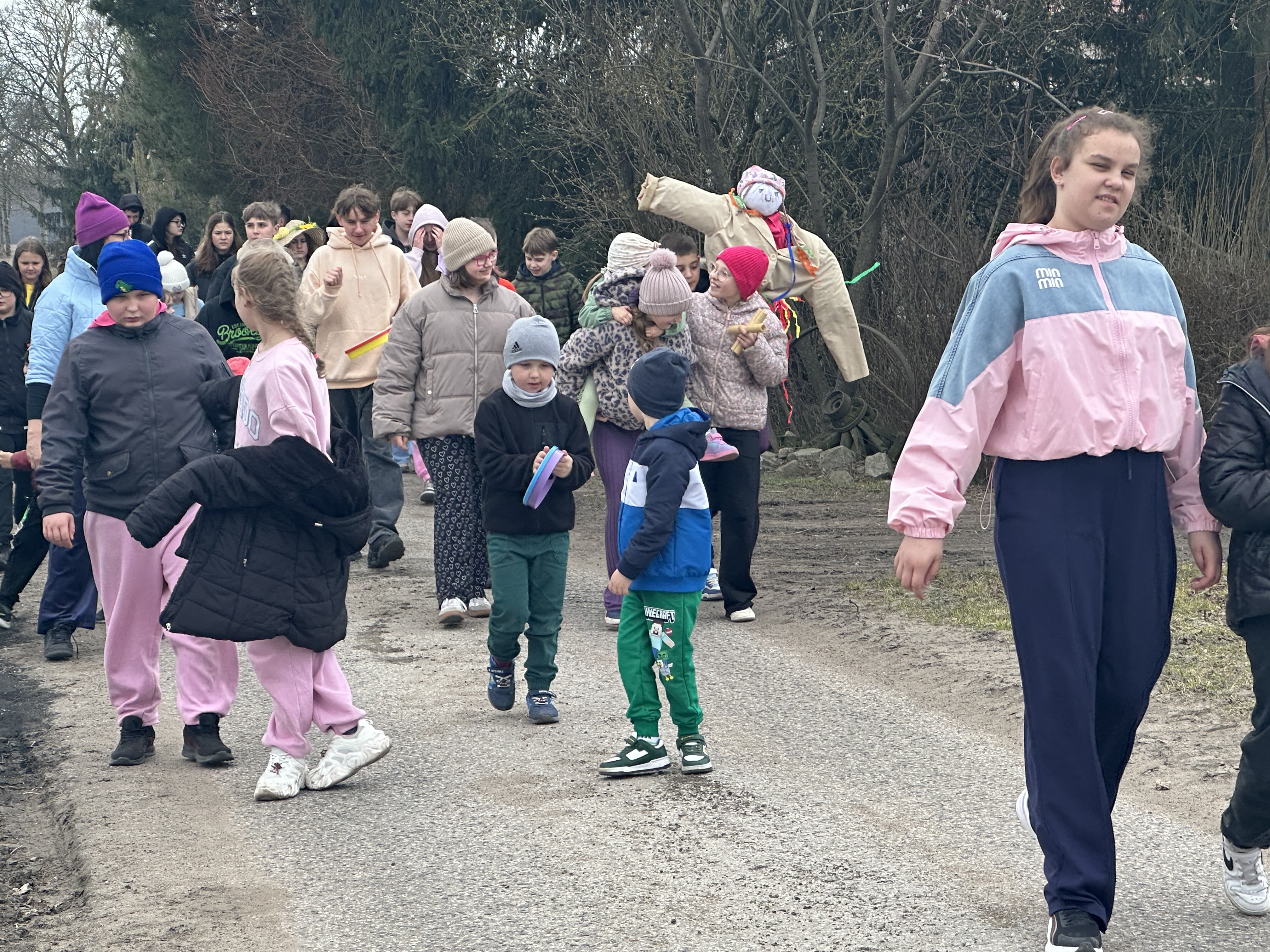 Dzisiaj w naszej szkole zapanowała wyjątkowa , radosna atmosfera – wspólnie świętowaliśmy nadejście wiosny. Przygotowania zaczęły się już wcześniej , kiedy to uczniowie, nauczyciele i pracownicy szkoły wzięli udział w specjalnym losowaniu. Każda grupa miała za zadanie przygotować stroje wylosowanego wcześniej wiosennego koloru. Efekt był zachwycający! Szkolne korytarze wypełniły się soczystą zielenią, błękitem nieba, słoneczną żółcią i delikatnym fioletem oraz różem. Wyglądaliśmy jak prawdziwa, żywa łąka. Szczególną uwagę przyciągały niektóre dzieci, które dumnie prezentowały własnoręcznie wykonane nakrycia głowy przypominające kwieciste i kolorowe kapelusze Pani Wiosny. Głównym punktem obchodów był barwny, głośnykorowód z tradycyjną Marzanną na czele, który przemaszerował drogami Rusinowa, wzbudzajączainteresowanie i uśmiechy na twarzach mieszkańców. O dobrą energię zadbał również Samorząd Uczniowski, który przygotował serię wiosennych wyzwań. Dodały one wszystkim energii i jeszcze bardziej zintegrowały całą społeczność. Zima odeszła w zapomnienie – teraz wyczekujemy tej prawdziwej wiosny – pełnej słońca, ciepła i rozkwitającej przyrody.