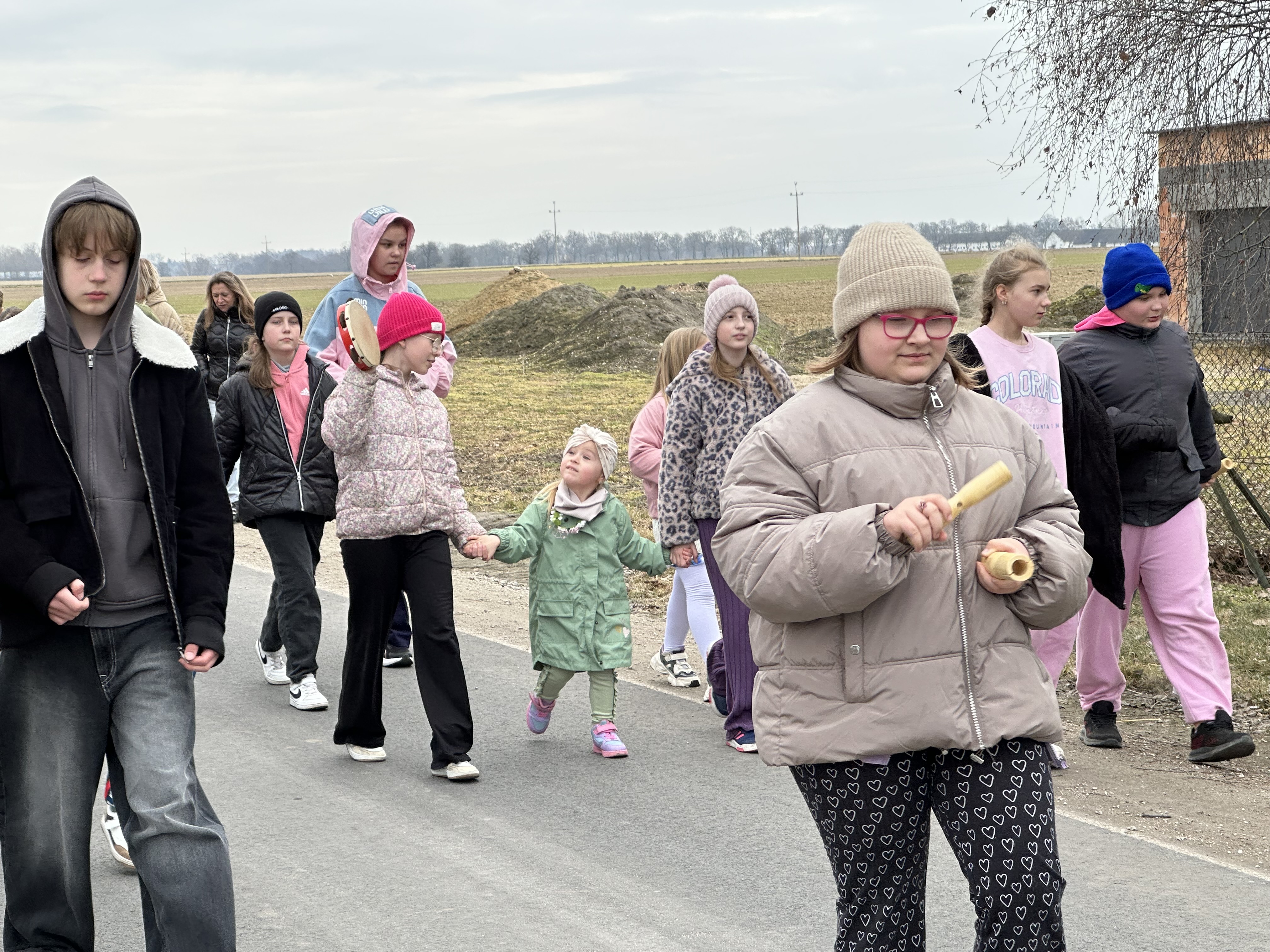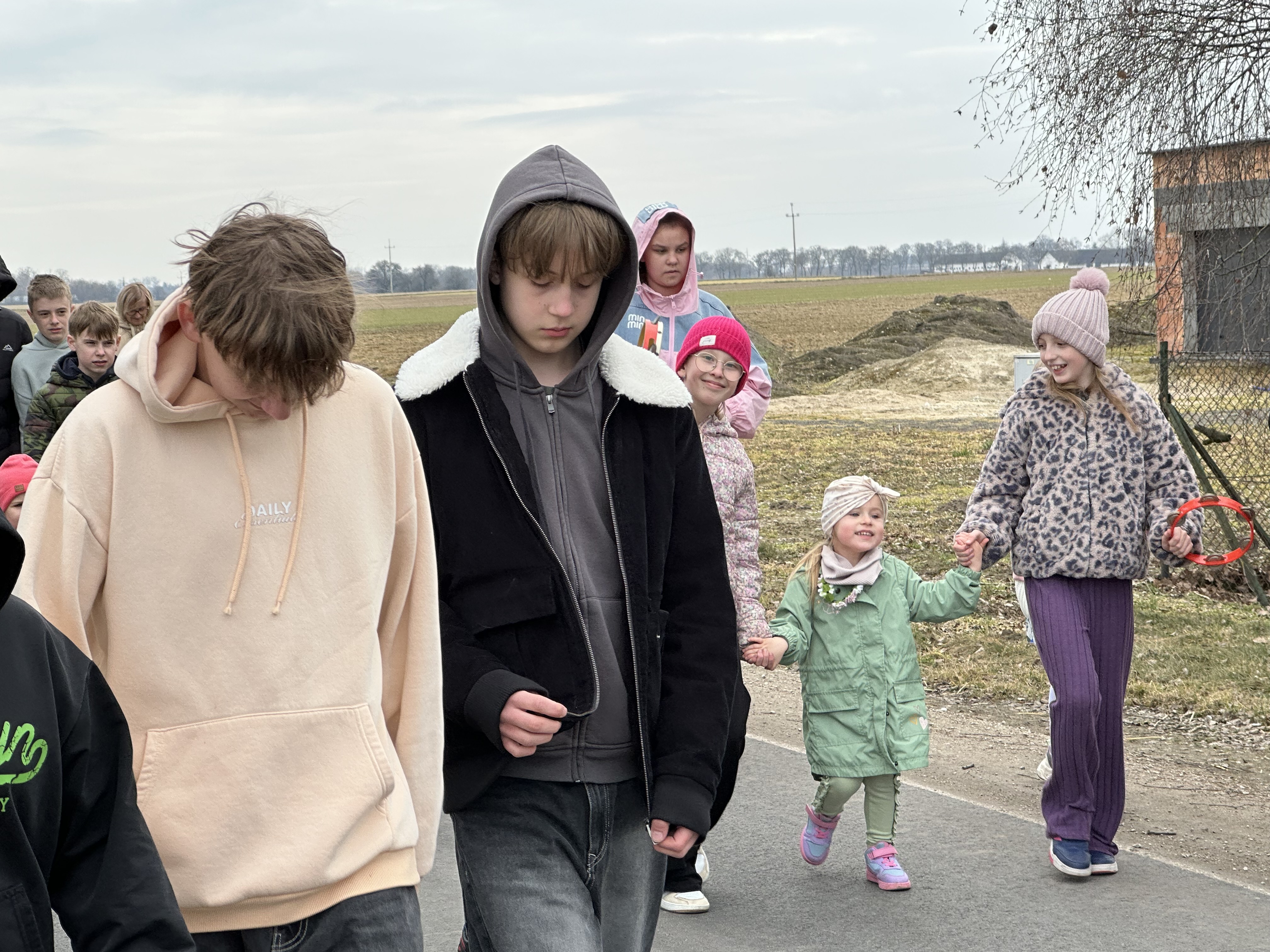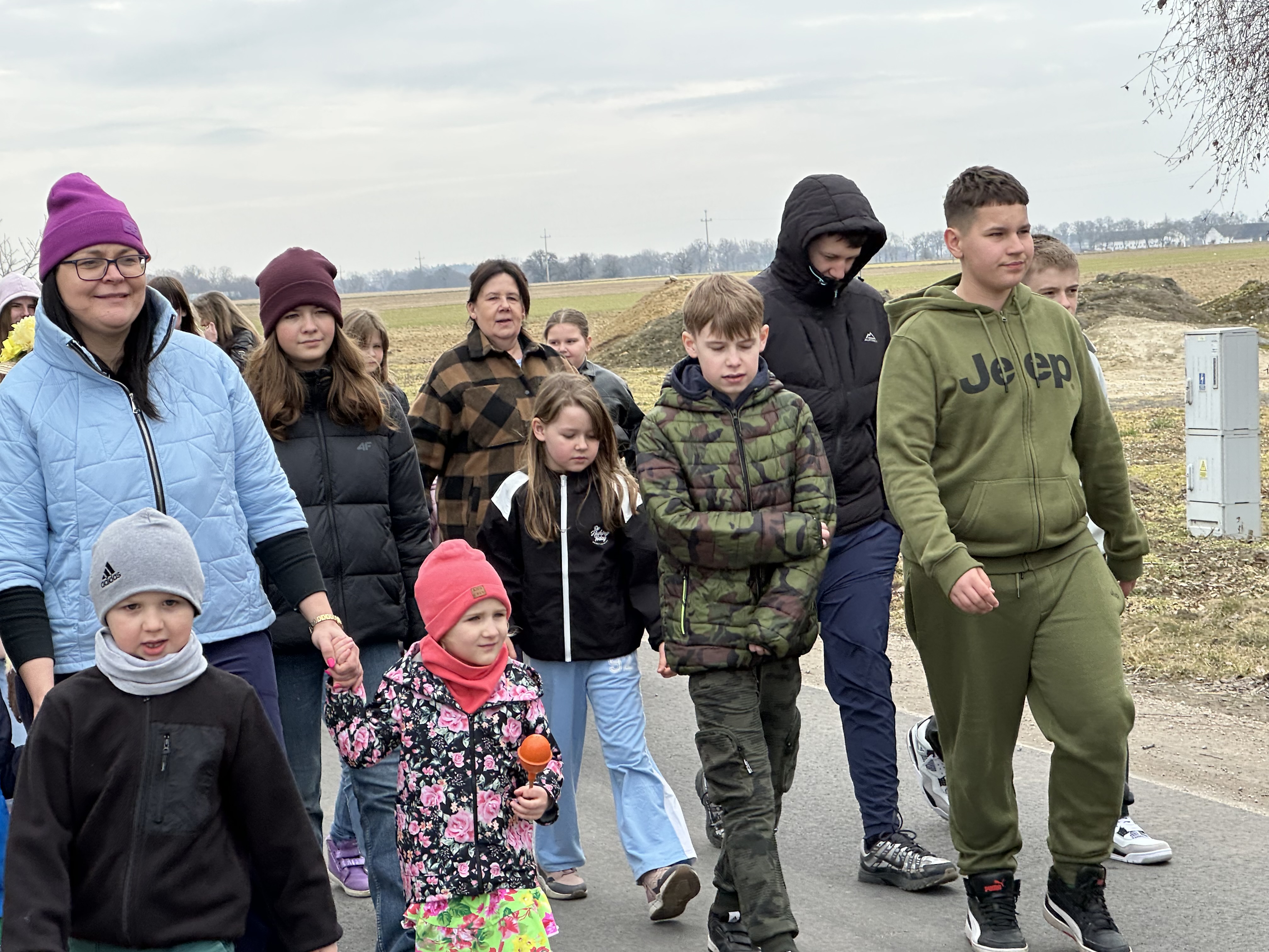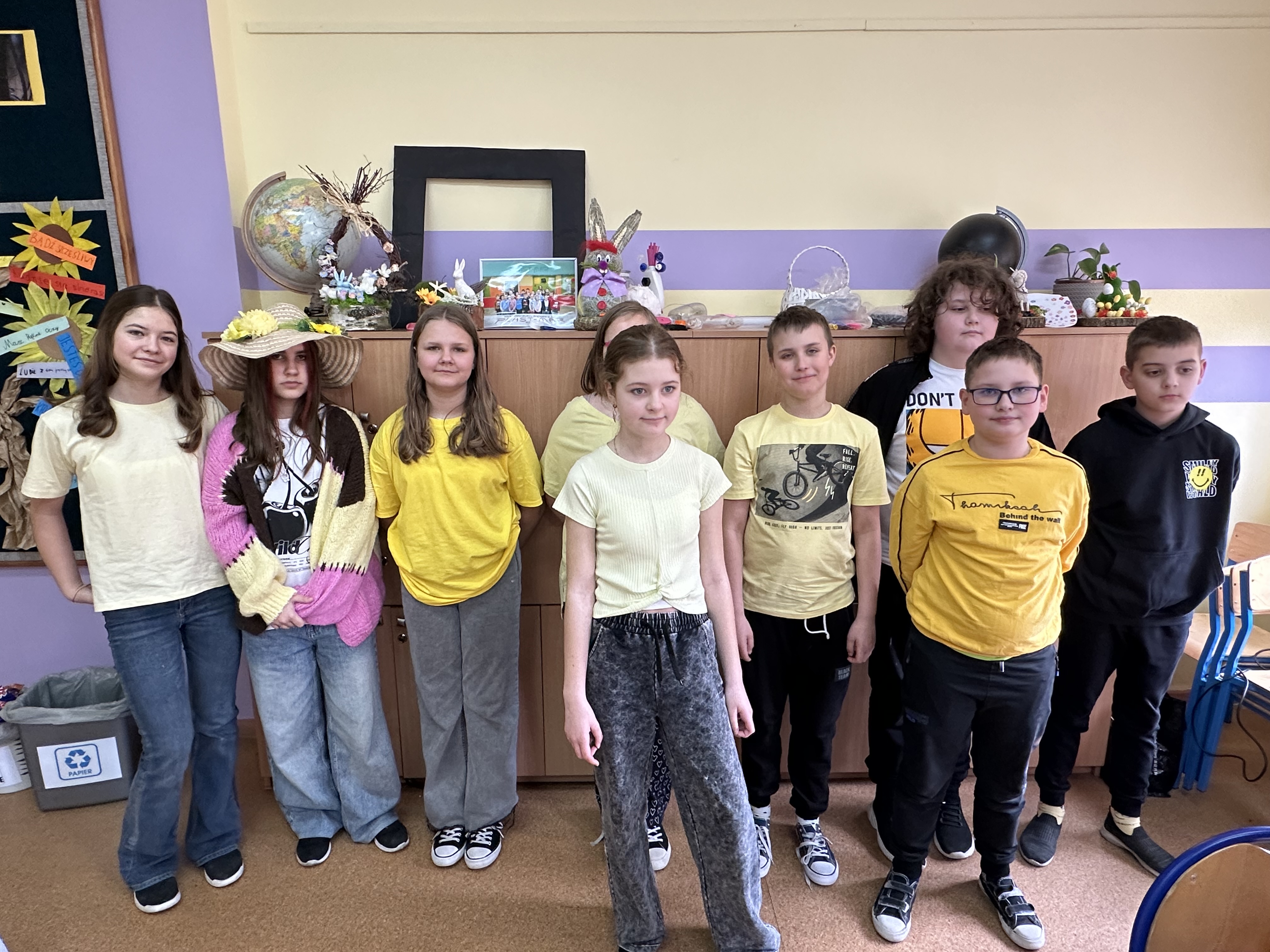 Dzisiaj w naszej szkole zapanowała wyjątkowa , radosna atmosfera – wspólnie świętowaliśmy nadejście wiosny. Przygotowania zaczęły się już wcześniej , kiedy to uczniowie, nauczyciele i pracownicy szkoły wzięli udział w specjalnym losowaniu. Każda grupa miała za zadanie przygotować stroje wylosowanego wcześniej wiosennego koloru. Efekt był zachwycający! Szkolne korytarze wypełniły się soczystą zielenią, błękitem nieba, słoneczną żółcią i delikatnym fioletem oraz różem. Wyglądaliśmy jak prawdziwa, żywa łąka. Szczególną uwagę przyciągały niektóre dzieci, które dumnie prezentowały własnoręcznie wykonane nakrycia głowy przypominające kwieciste i kolorowe kapelusze Pani Wiosny. Głównym punktem obchodów był barwny, głośnykorowód z tradycyjną Marzanną na czele, który przemaszerował drogami Rusinowa, wzbudzajączainteresowanie i uśmiechy na twarzach mieszkańców. O dobrą energię zadbał również Samorząd Uczniowski, który przygotował serię wiosennych wyzwań. Dodały one wszystkim energii i jeszcze bardziej zintegrowały całą społeczność. Zima odeszła w zapomnienie – teraz wyczekujemy tej prawdziwej wiosny – pełnej słońca, ciepła i rozkwitającej przyrody.